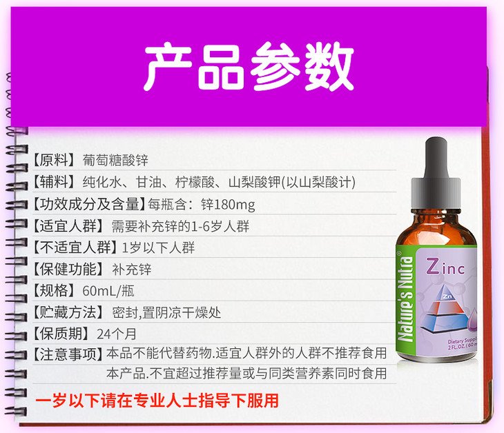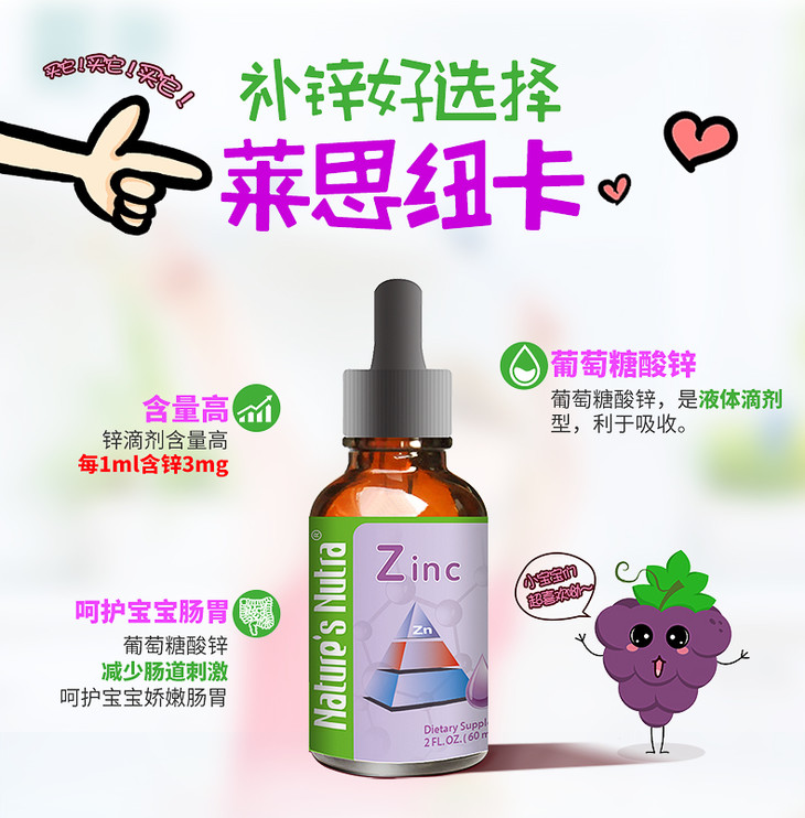 美国莱思纽卡儿童补锌滴剂60ml(莱思纽卡任选2个包邮)