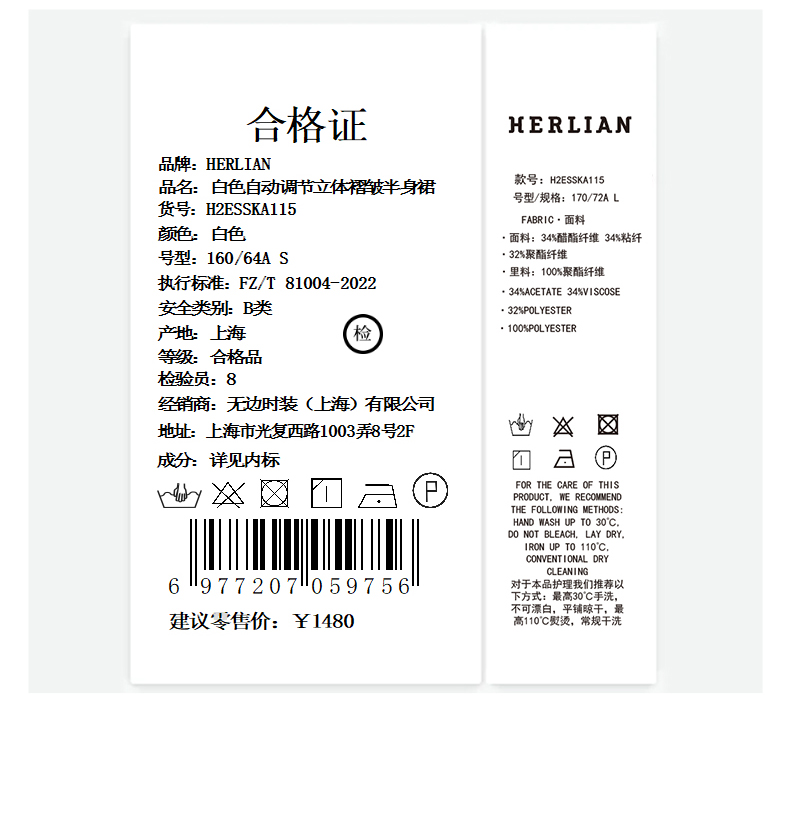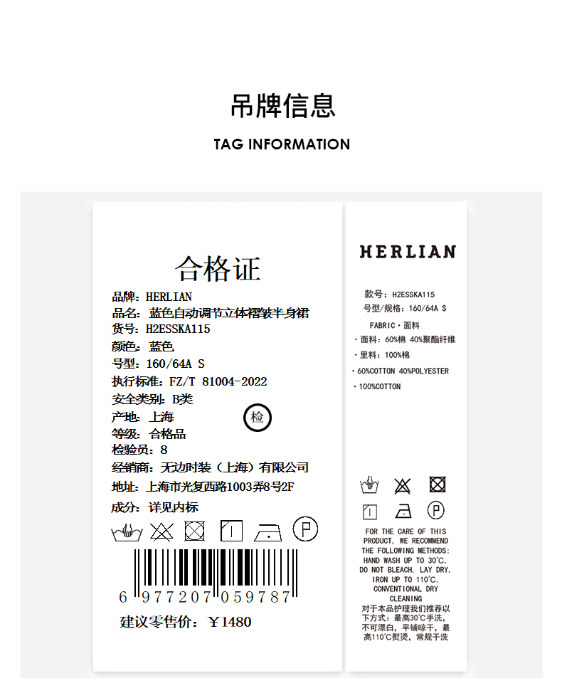 HERLIAN 2025夏季新品女士自动调节立体褶皱半身裙