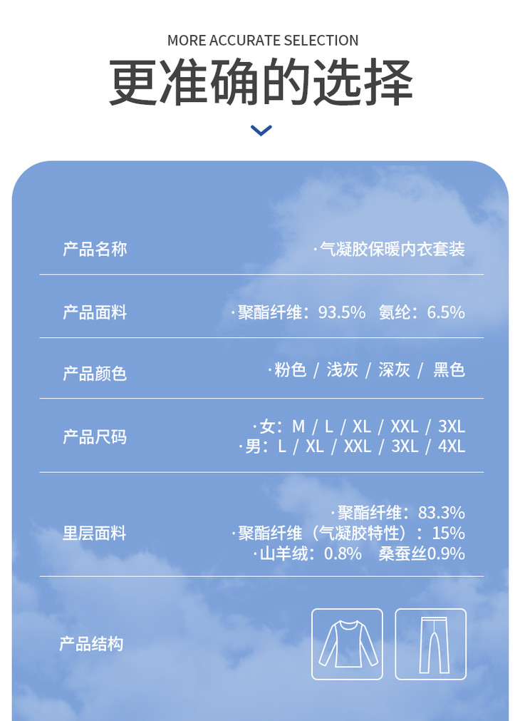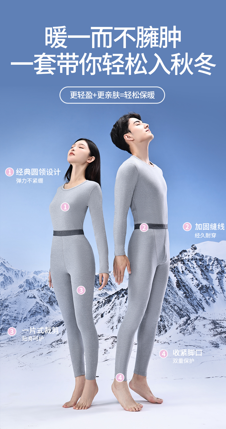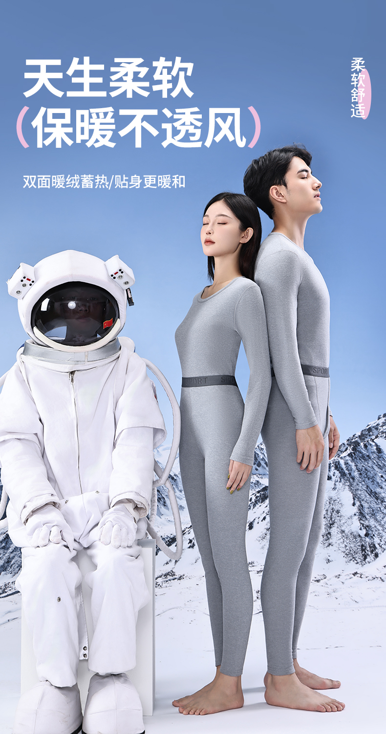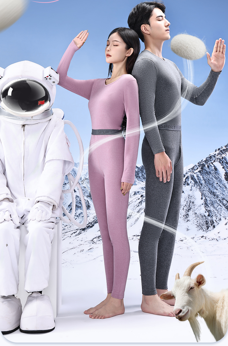 【实付满399送保温杯】【气凝胶宇航绒保暖内衣套装】男女款加绒保暖内衣套装 高弹修身打底内衣内裤 ST401