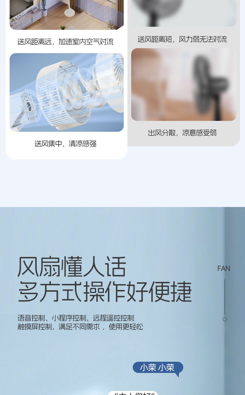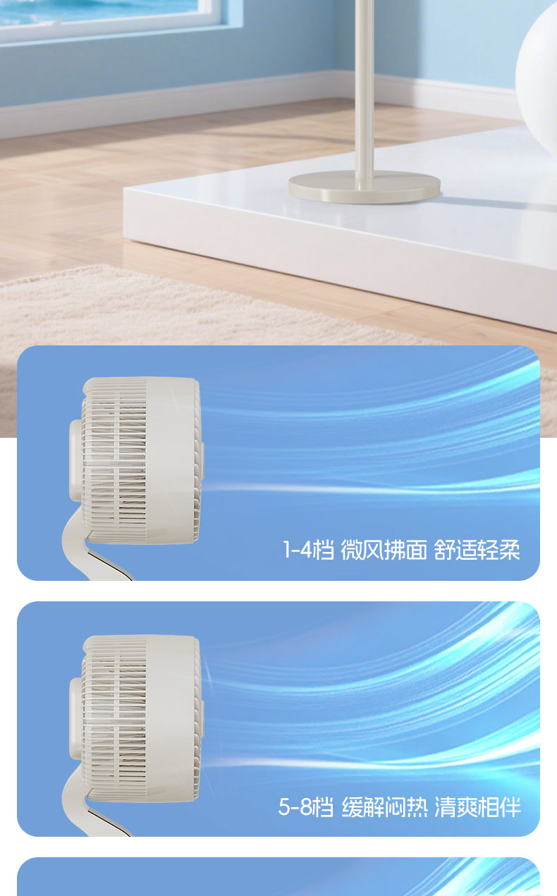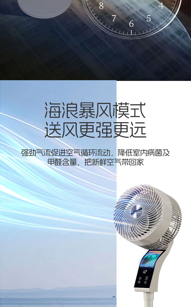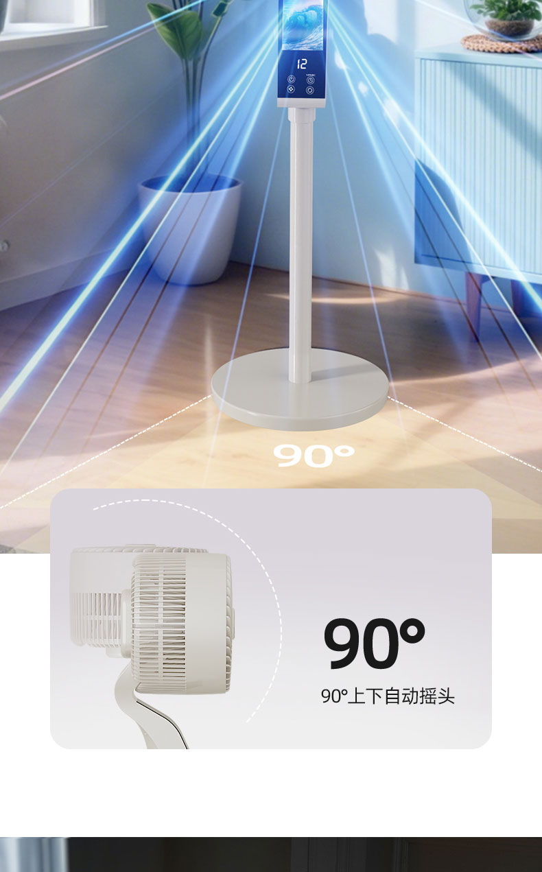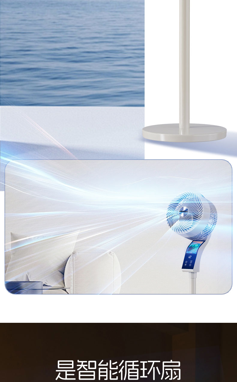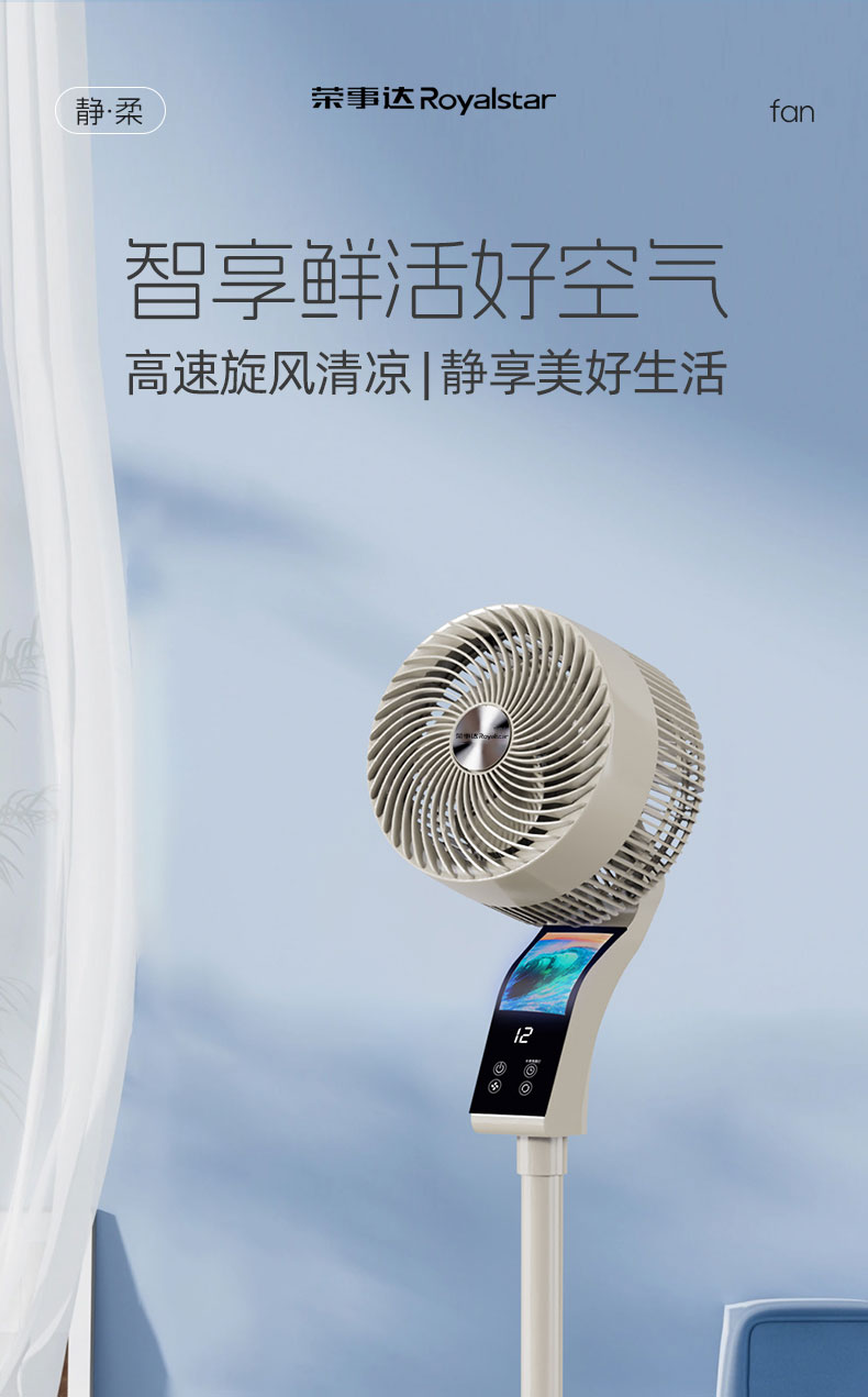 【2025升级款】荣事达AI语音空气循环扇 海浪呼吸屏 12档循环风 台地两用 高速送风 静音低噪