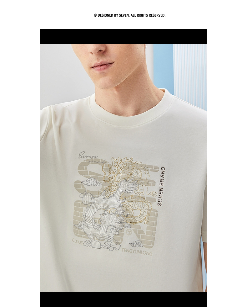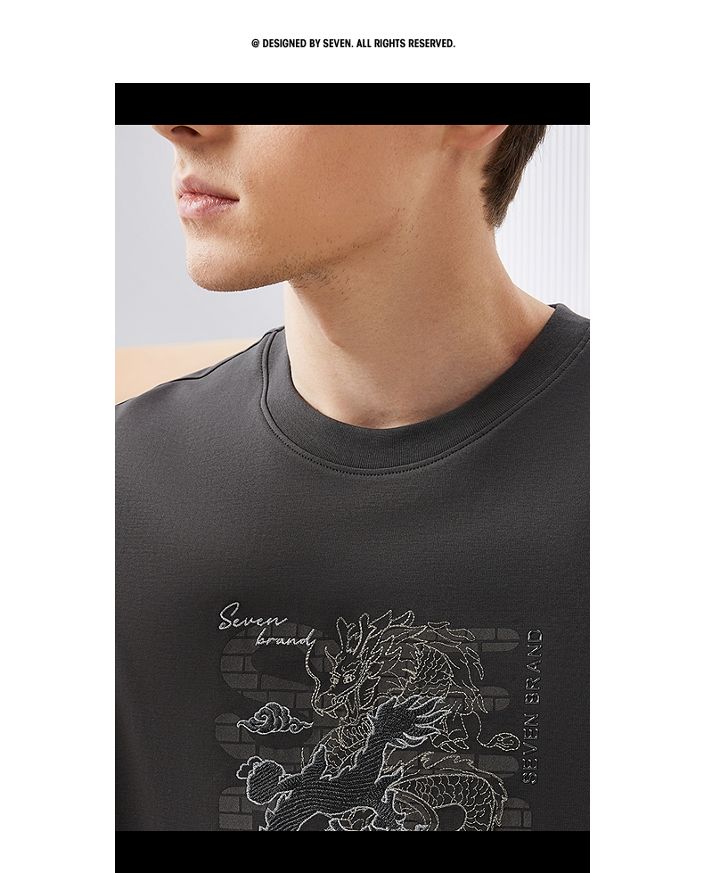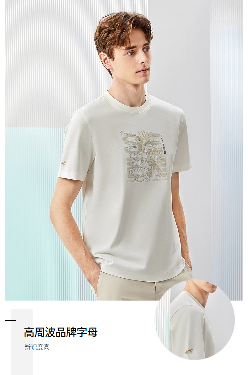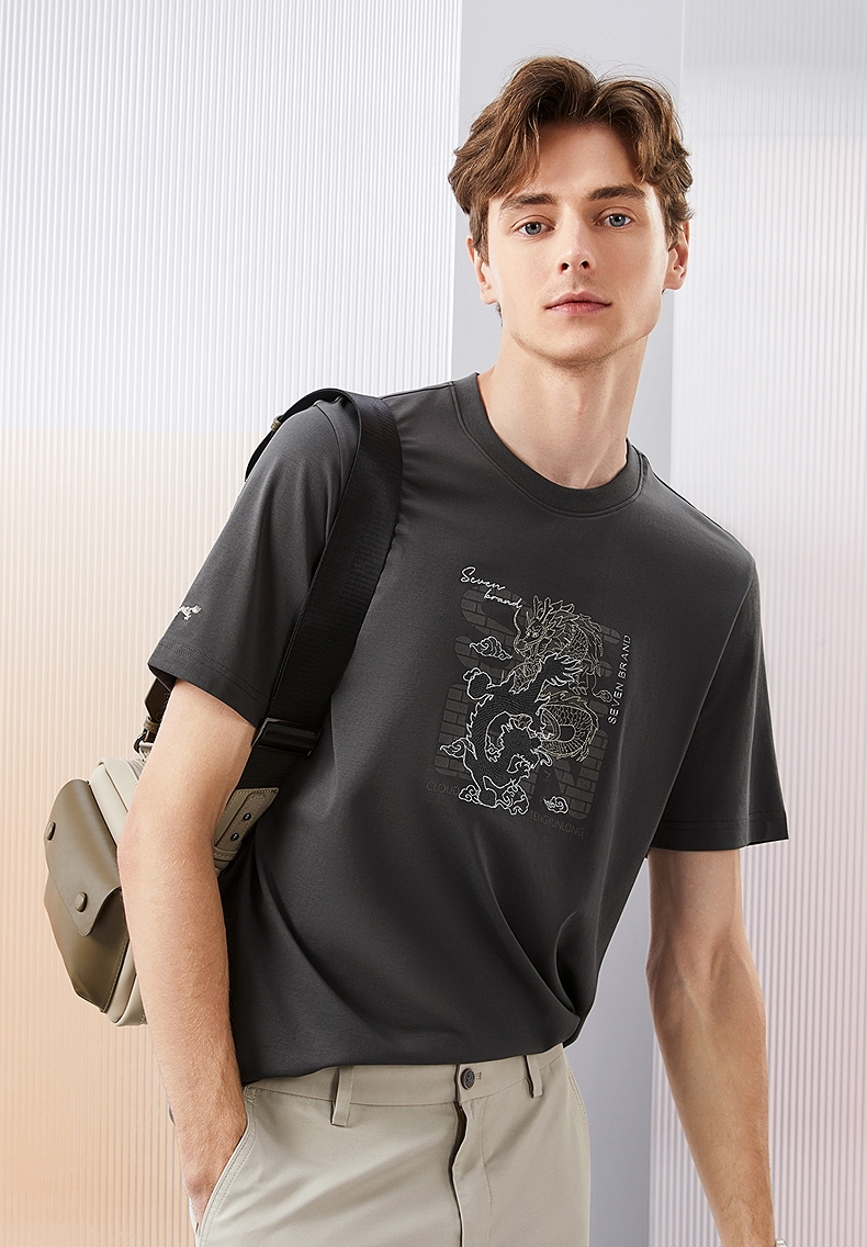柒牌男装短袖T恤男夏季新款时尚龙纹绣花男士休闲百搭圆领上衣潮126T71370