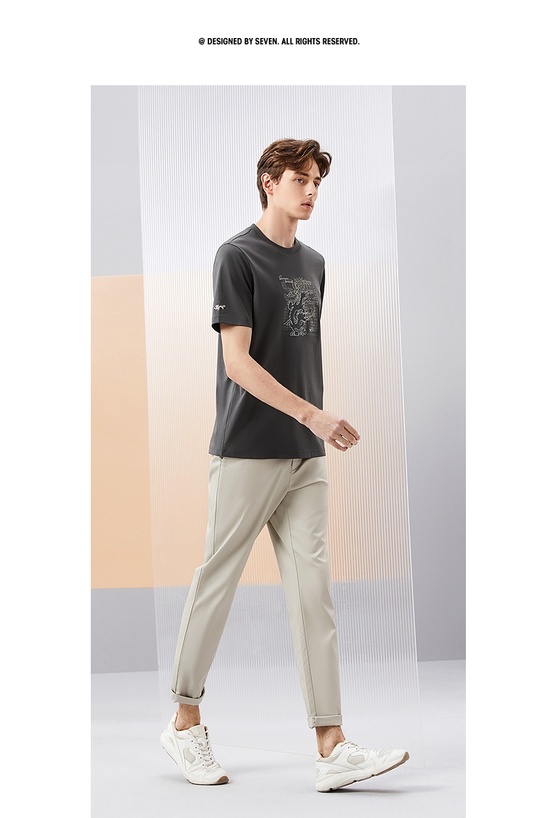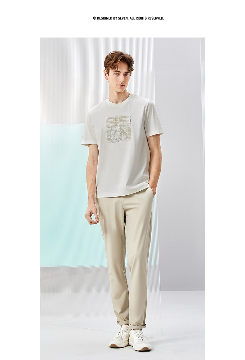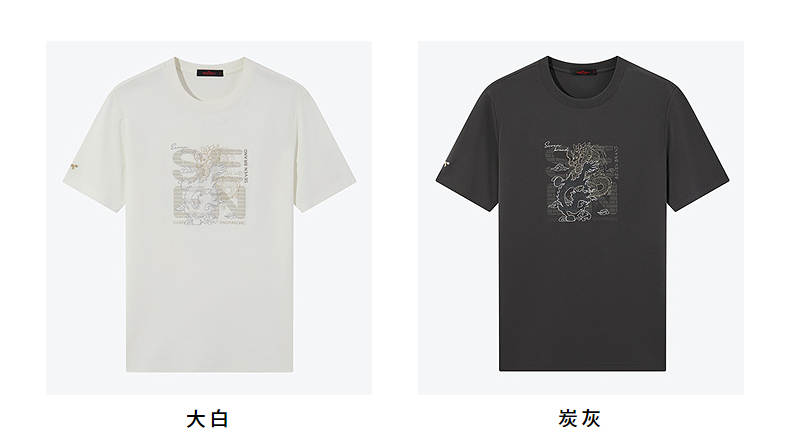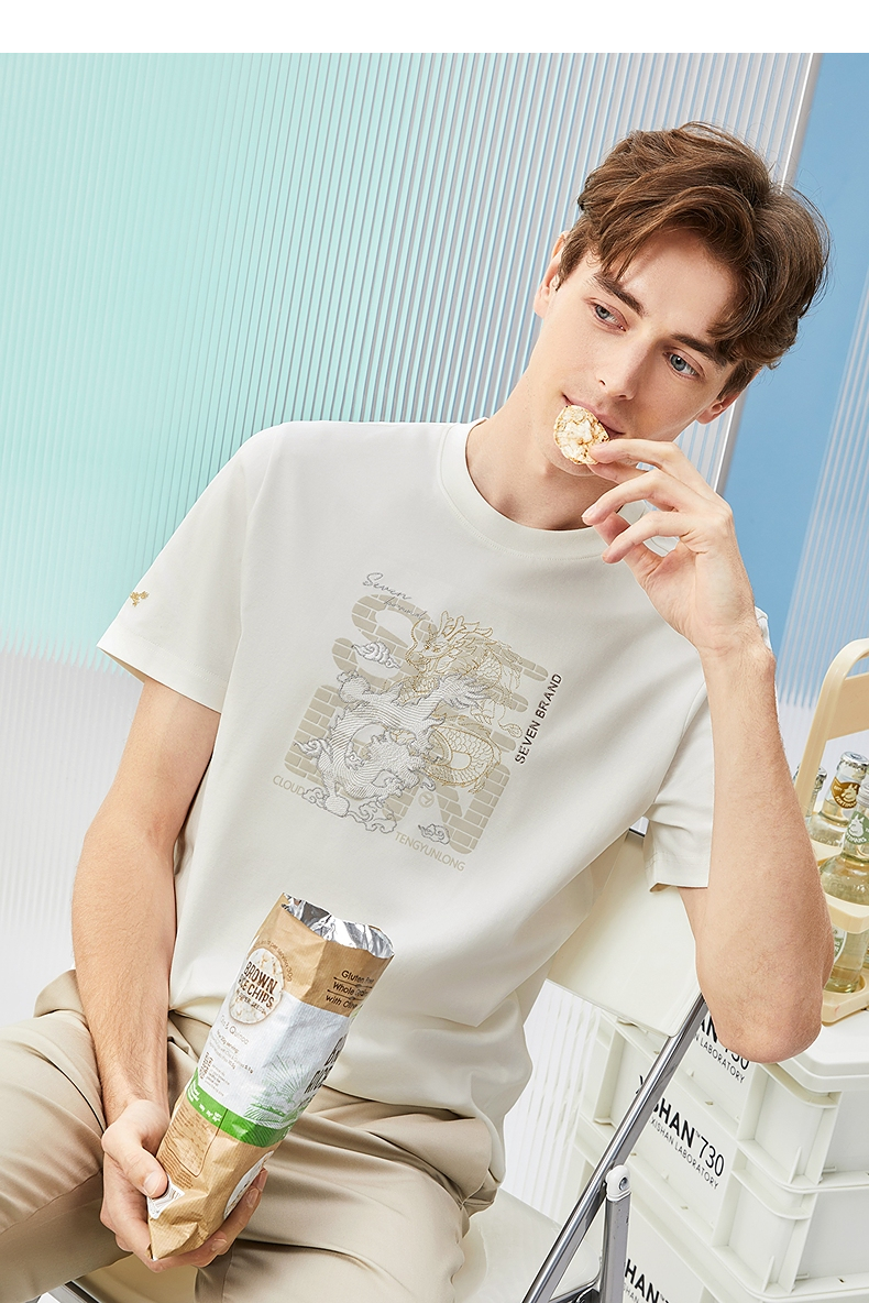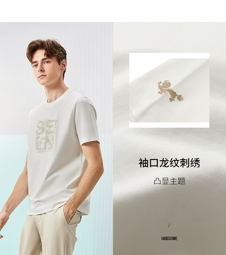 柒牌男装短袖T恤男夏季新款时尚龙纹绣花男士休闲百搭圆领上衣潮126T71370