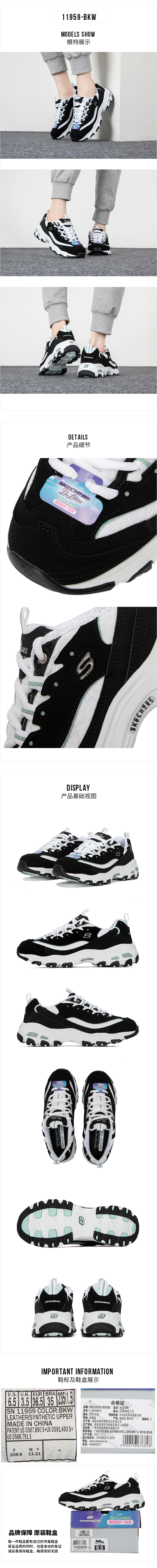 斯凯奇skechers小白鞋女老爹鞋子休闲熊猫鞋黑色内增高厚底百搭11959 -BKW