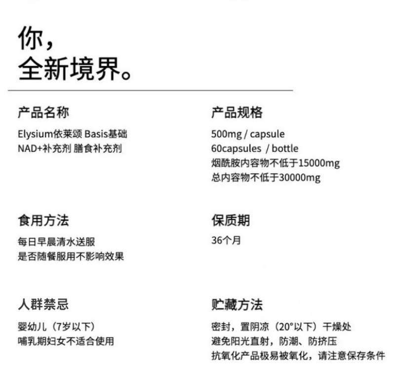 Elysium 依莱颂® 「Basis 综合抗衰补充剂 」 综合抗衰 提高运动表现及免疫 加速新陈代谢