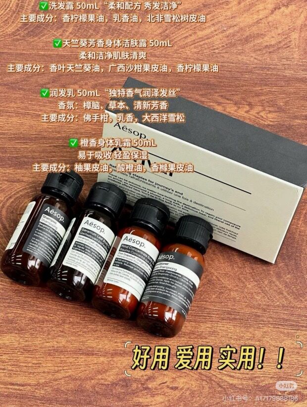 Aesop/伊索 四件套 旅行装的小小瓶 50mL 洗发水/护发素/沐浴露/身体乳