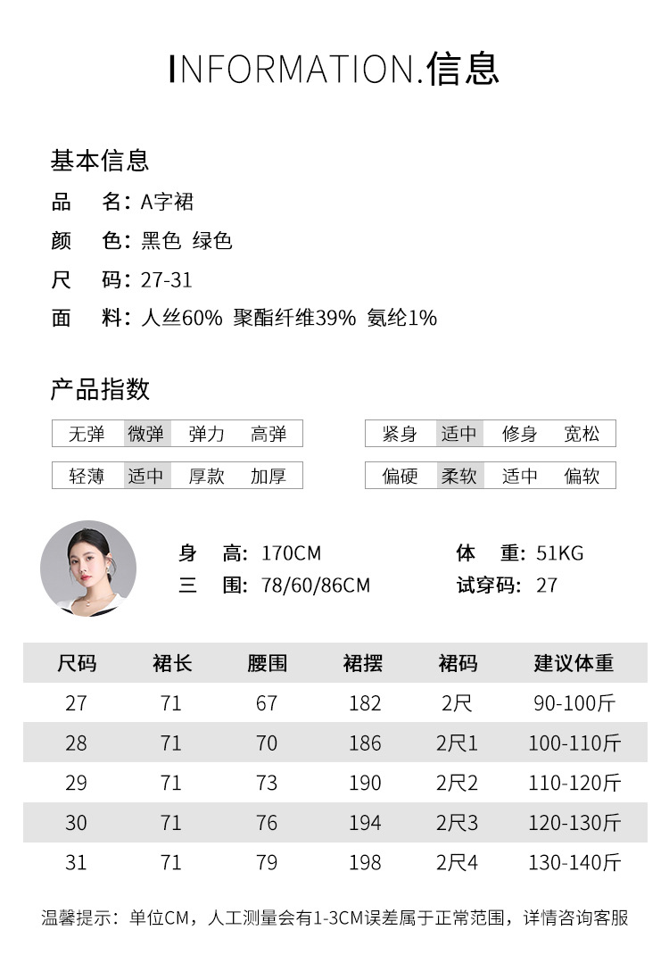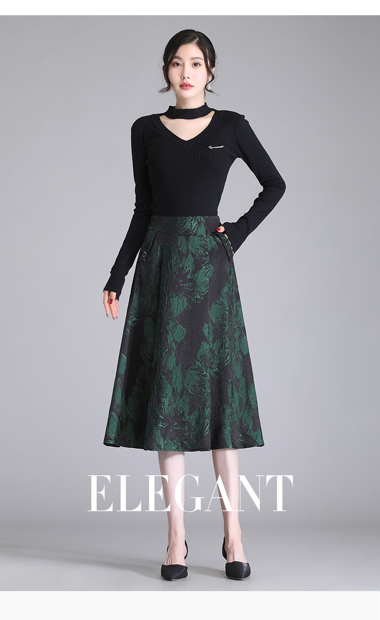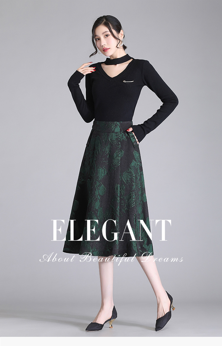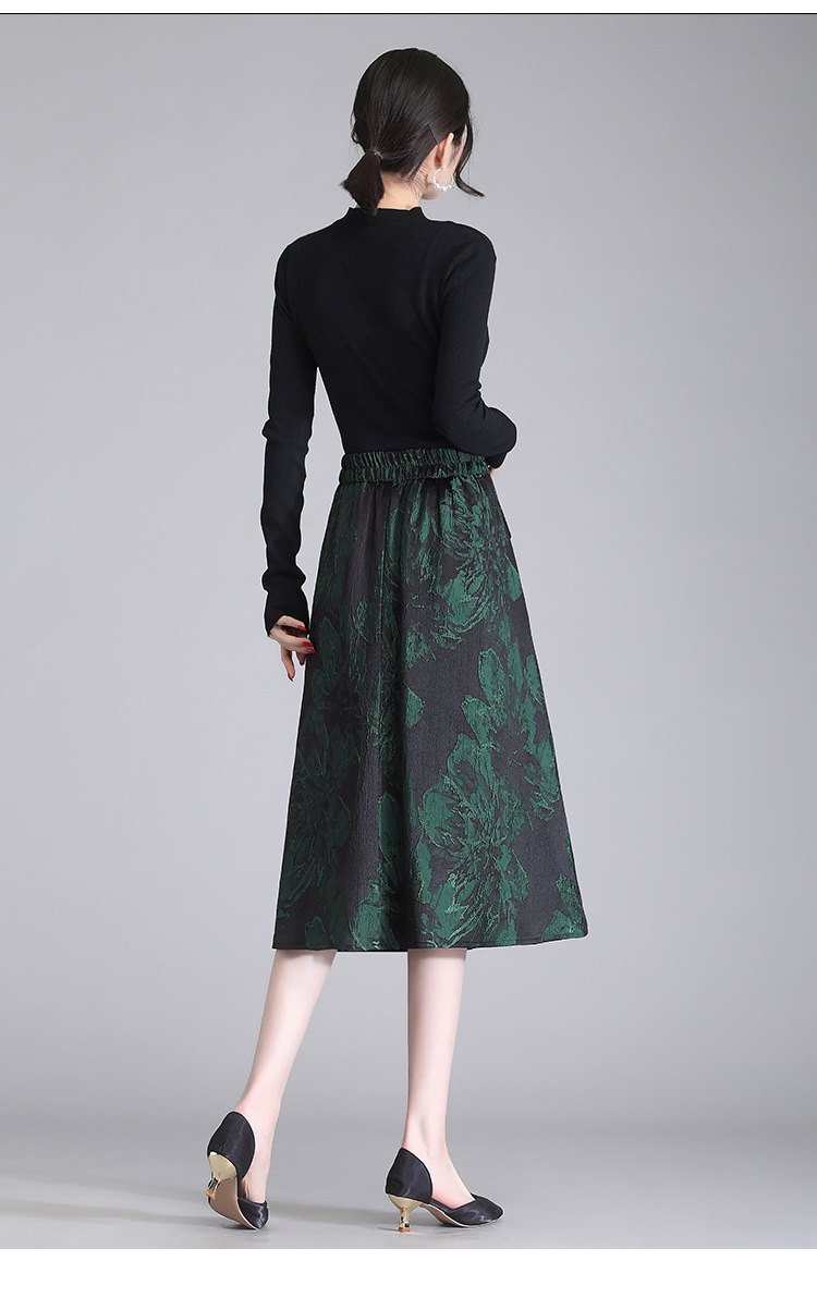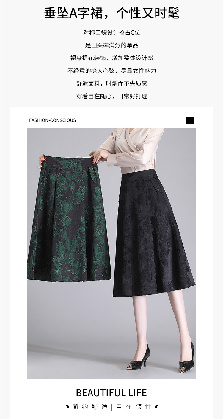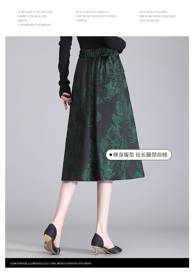 印花修身时尚大摆裙A字裙,后腰松紧气质通勤半身裙MYX-69927