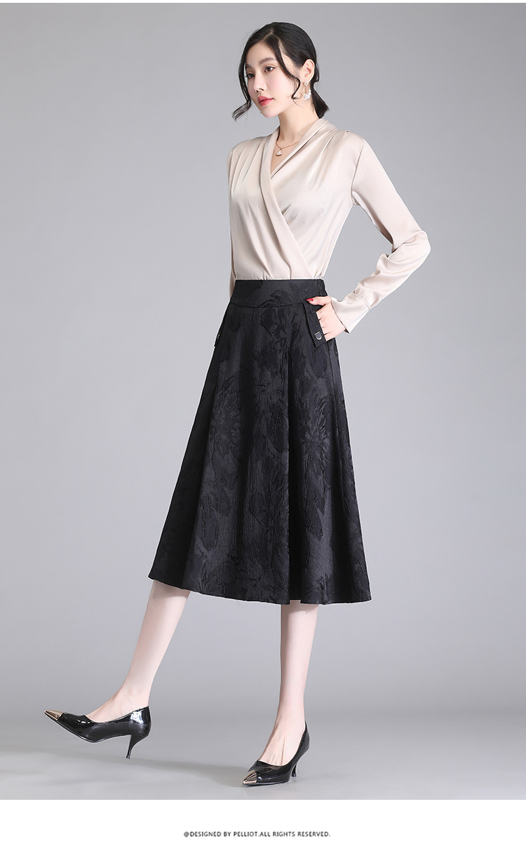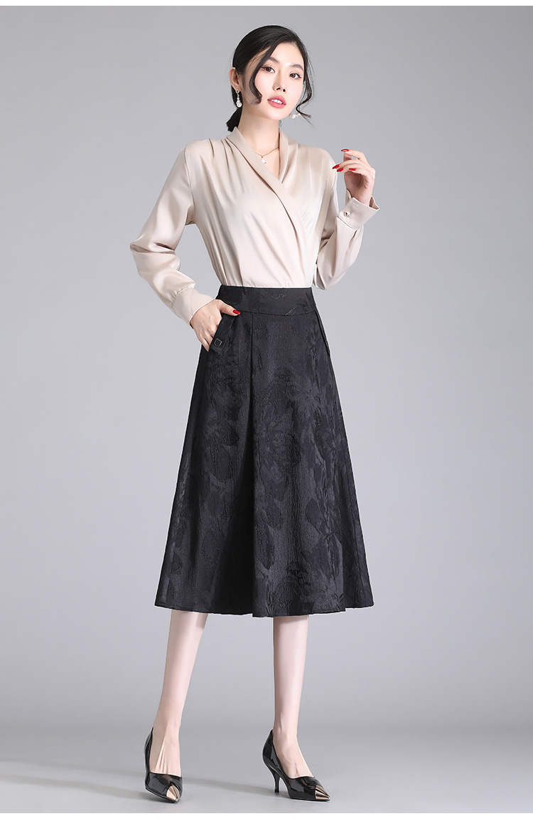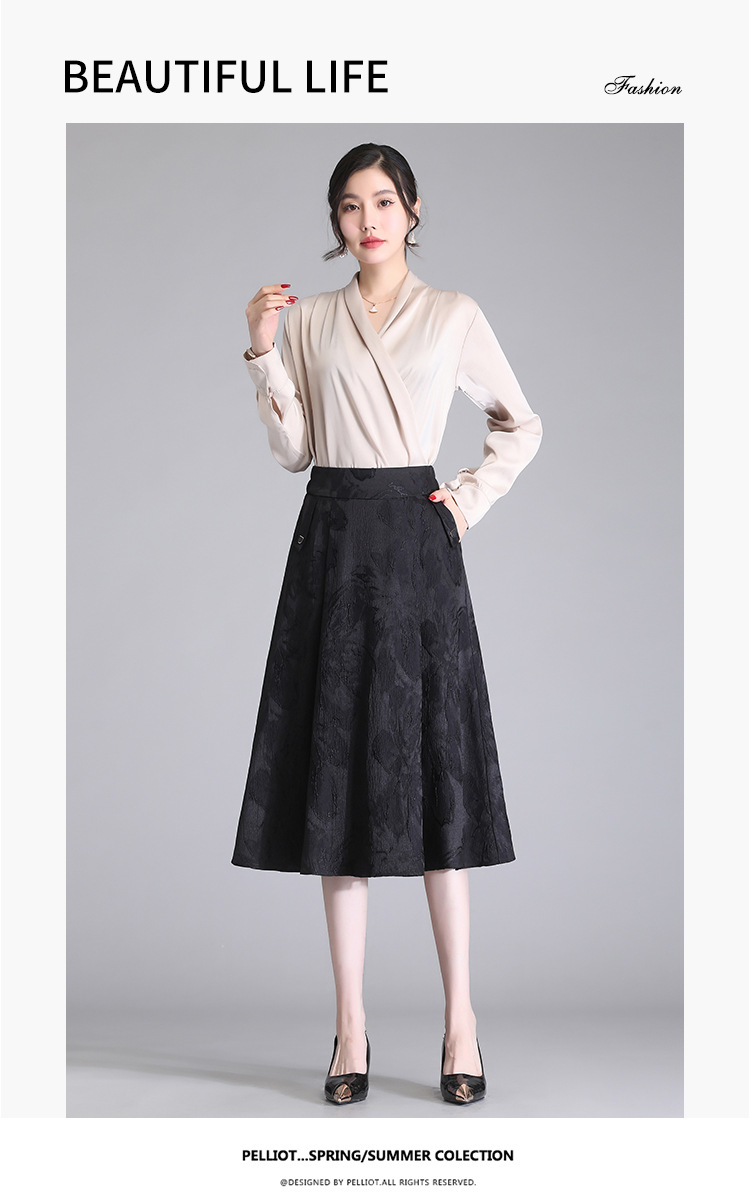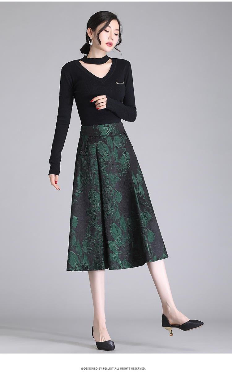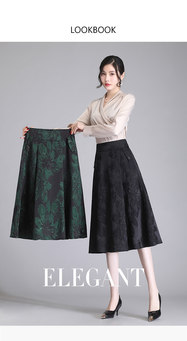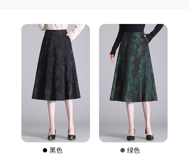 印花修身时尚大摆裙A字裙,后腰松紧气质通勤半身裙MYX-69927