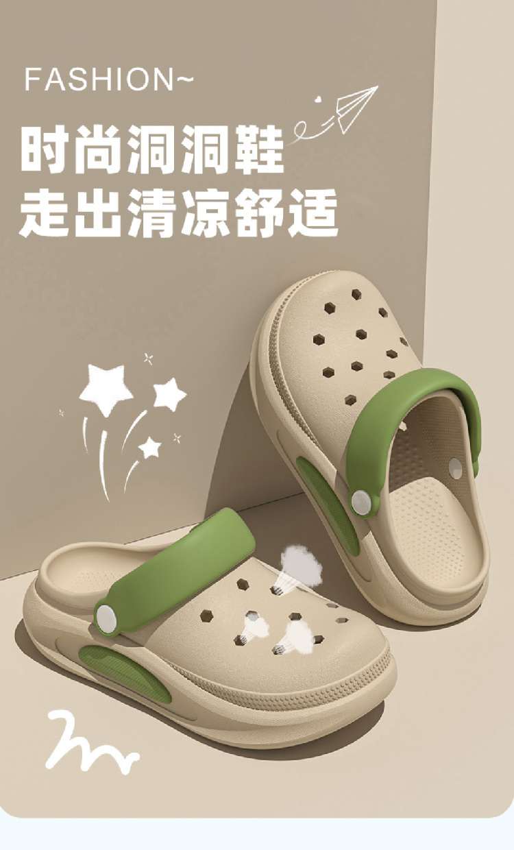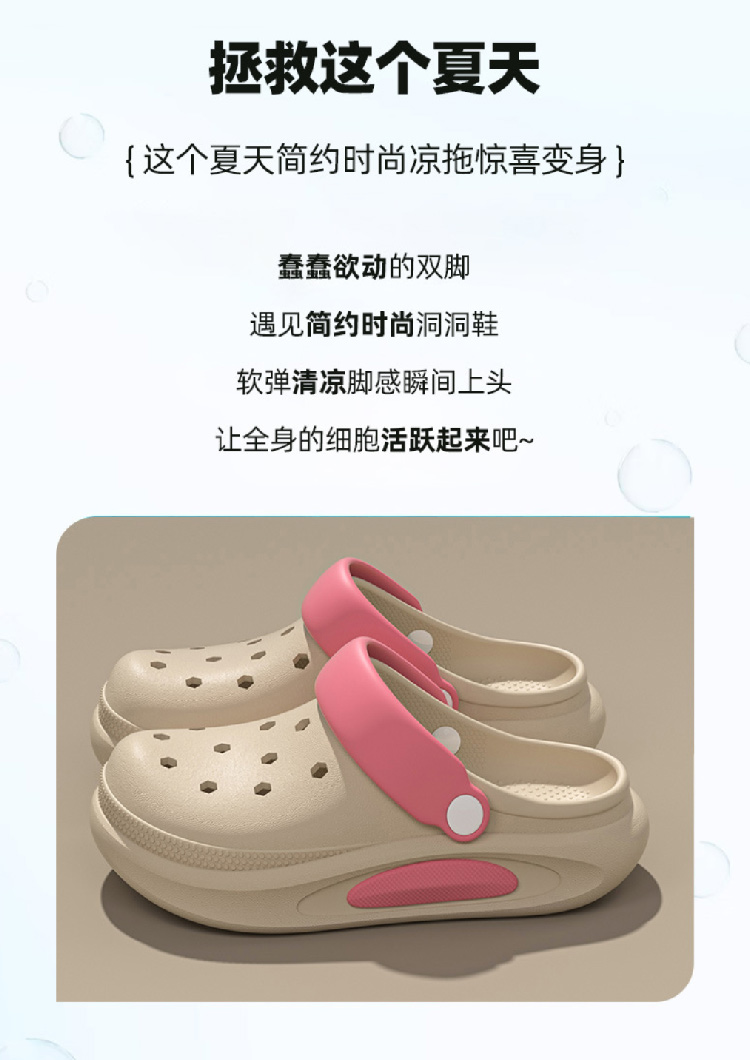【厚底洞洞鞋】夏季抖音网红凉拖鞋厚底防滑凉拖 旅行出游个性静音踩屎感拖鞋