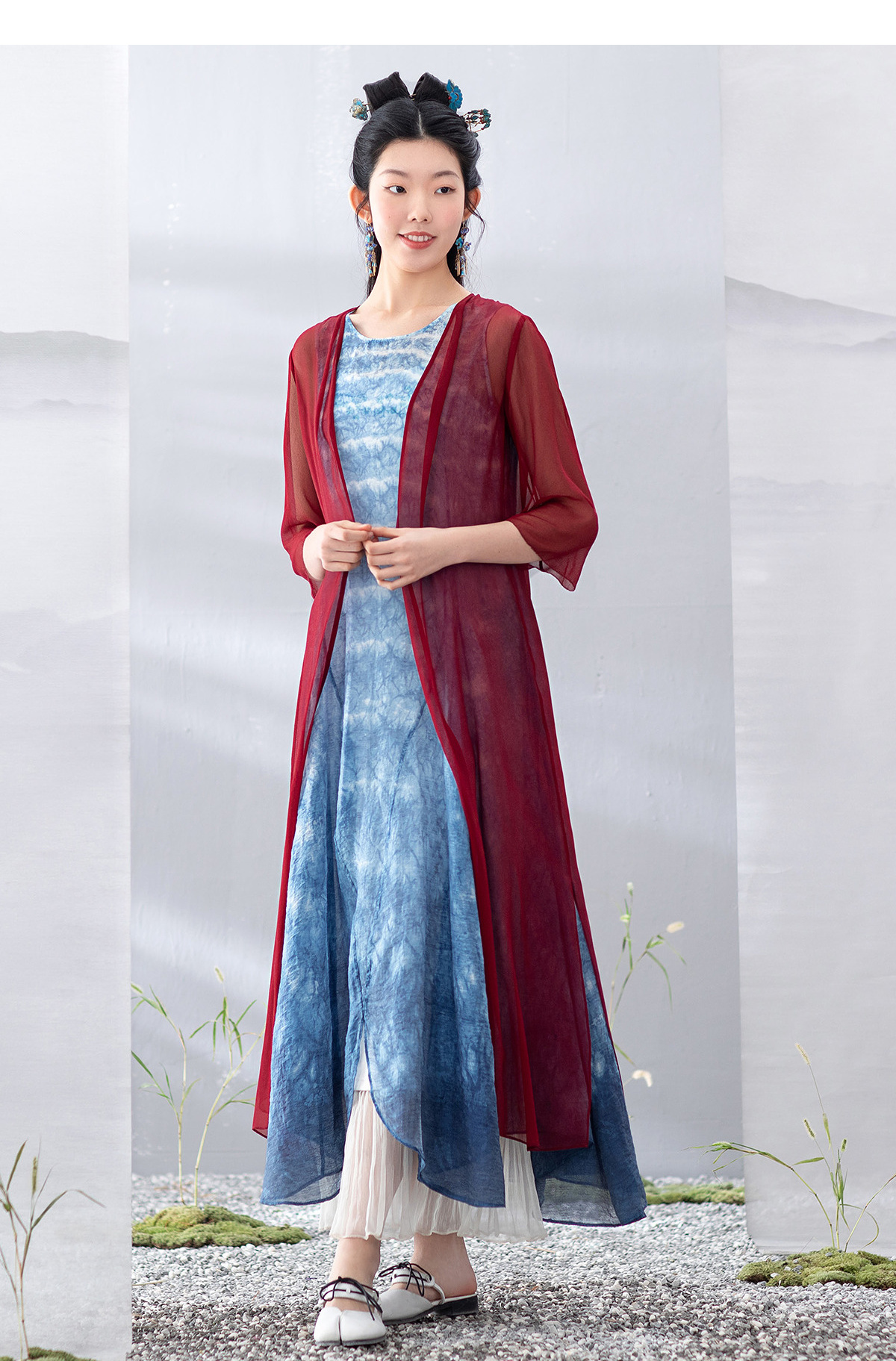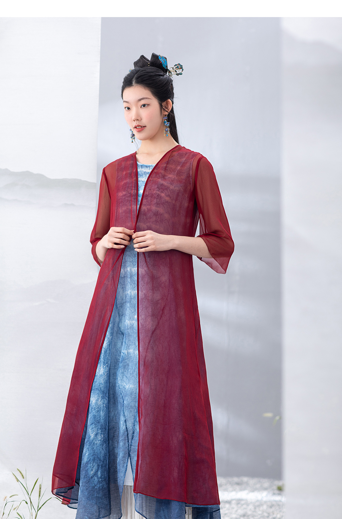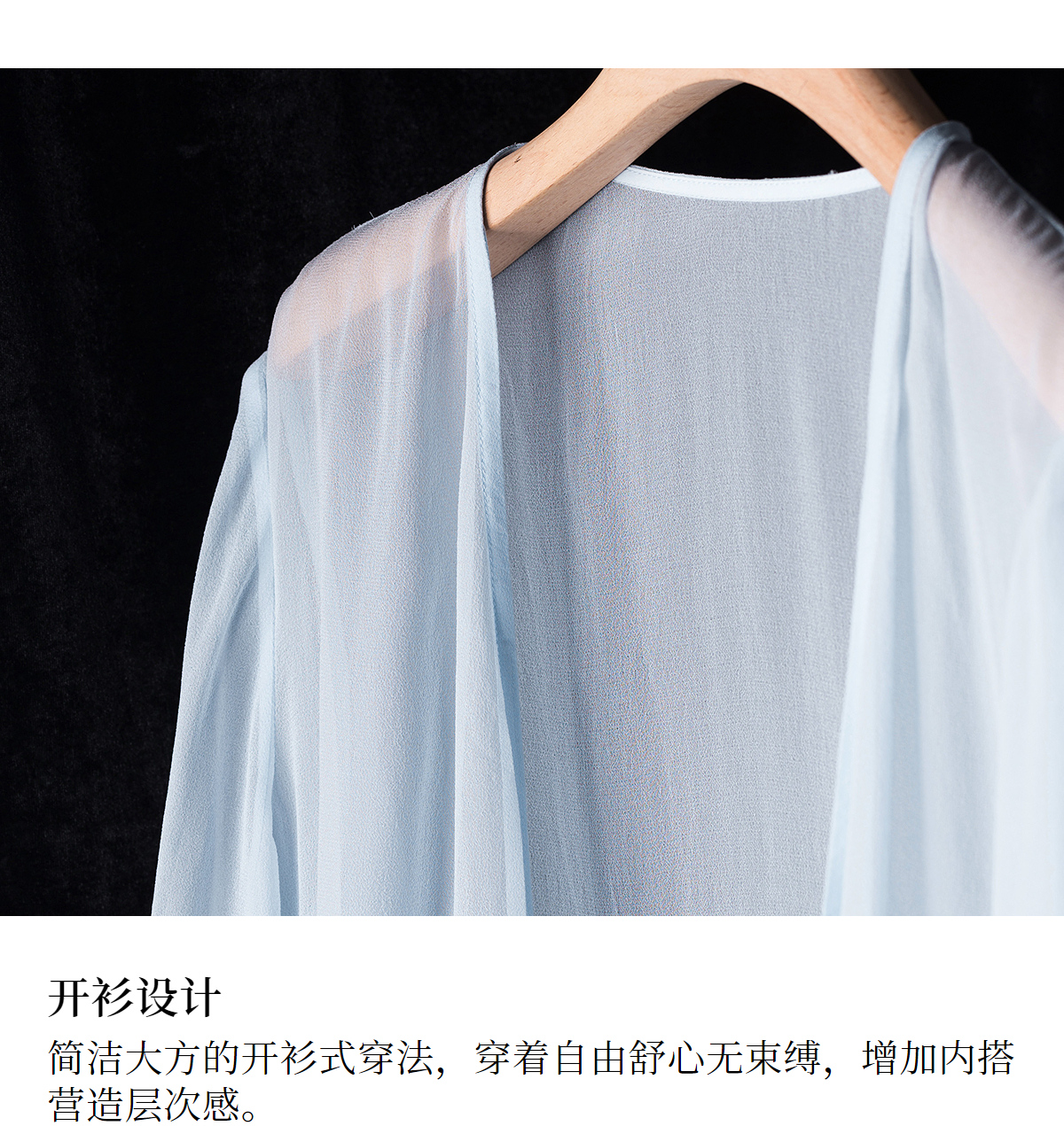 【林栖设计小店】【现货】夏季新品复古桑蚕丝中长款七分袖真丝开衫薄外套女1912068