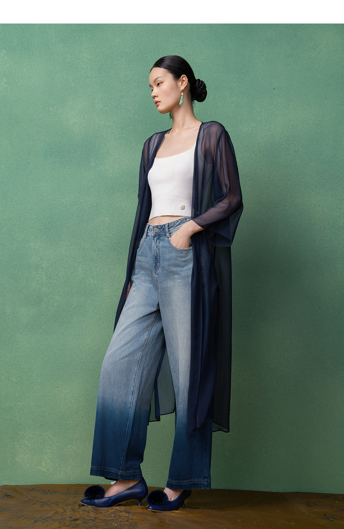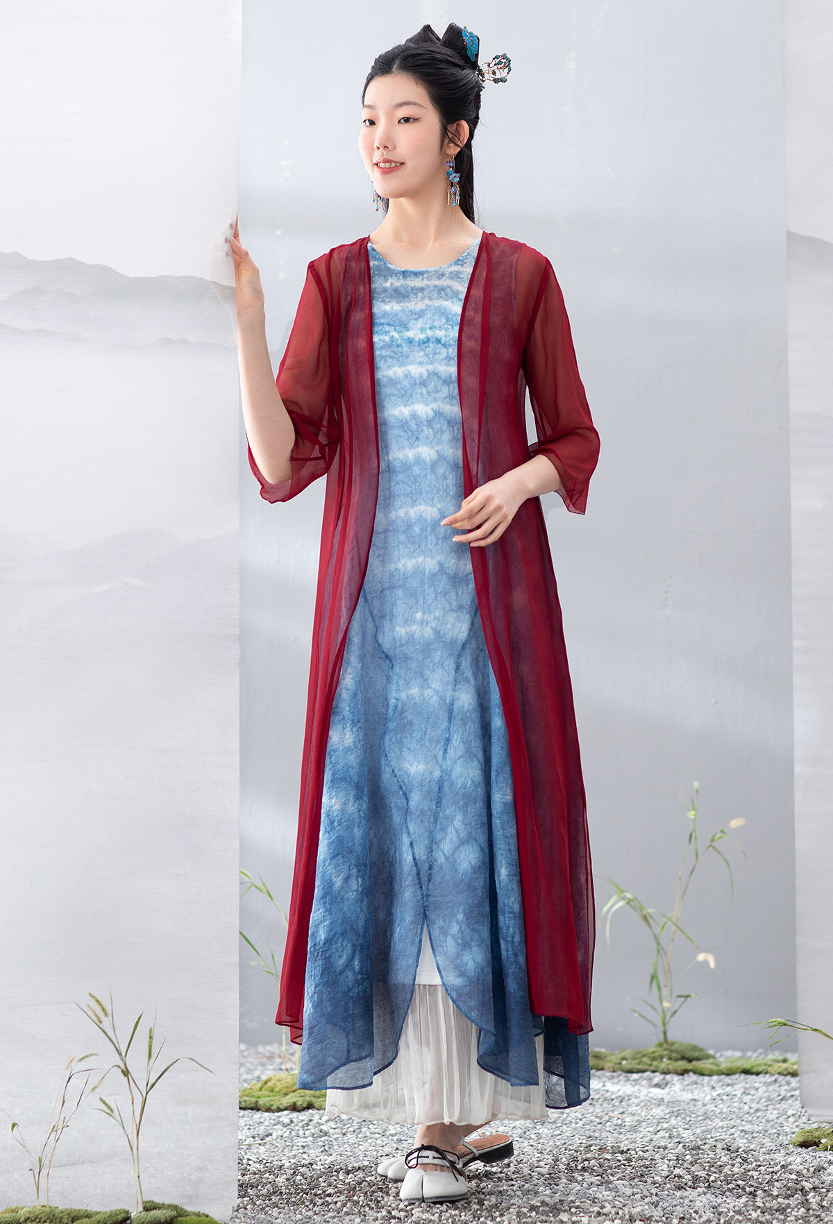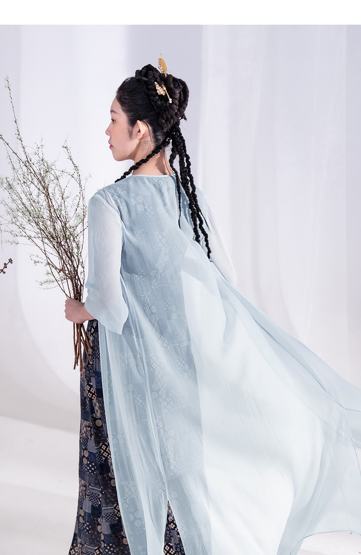 【林栖设计小店】【现货】夏季新品复古桑蚕丝中长款七分袖真丝开衫薄外套女1912068