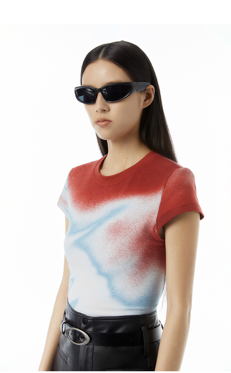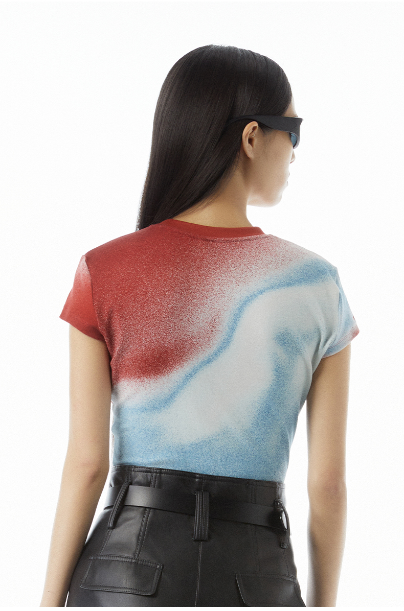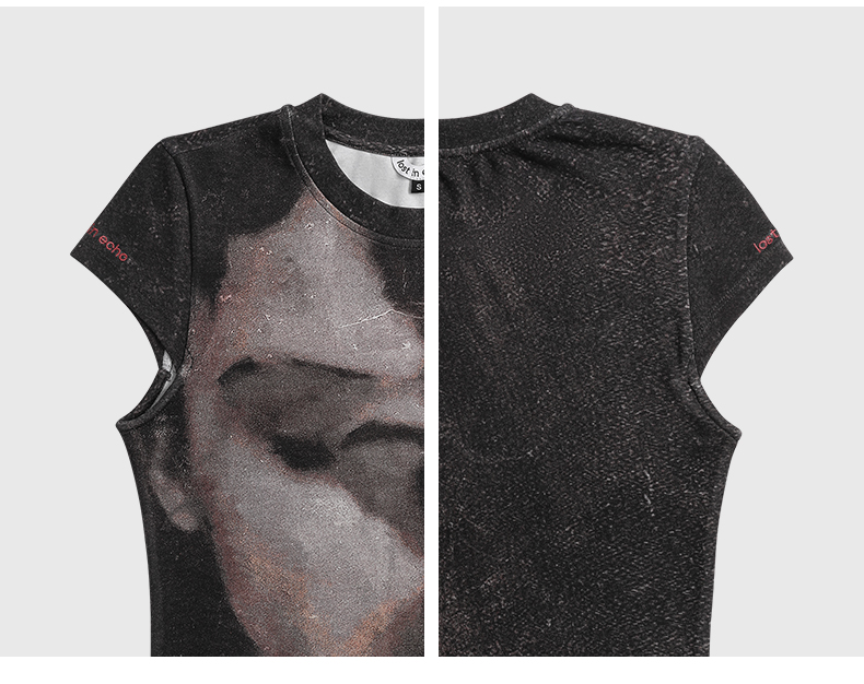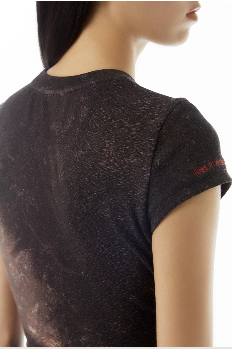 lost in echo设计师品牌Aliz系列弹力舒适抽象印花修身短款T恤女