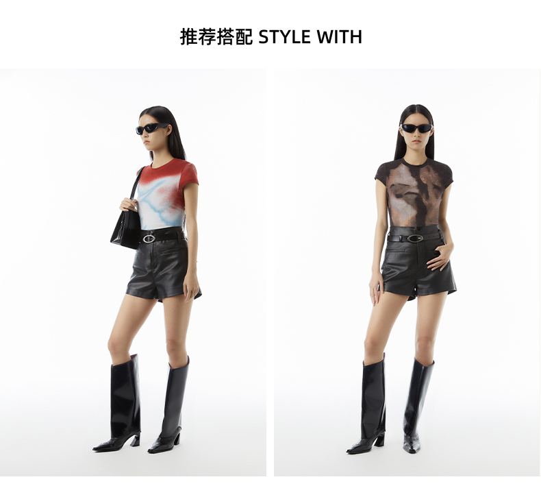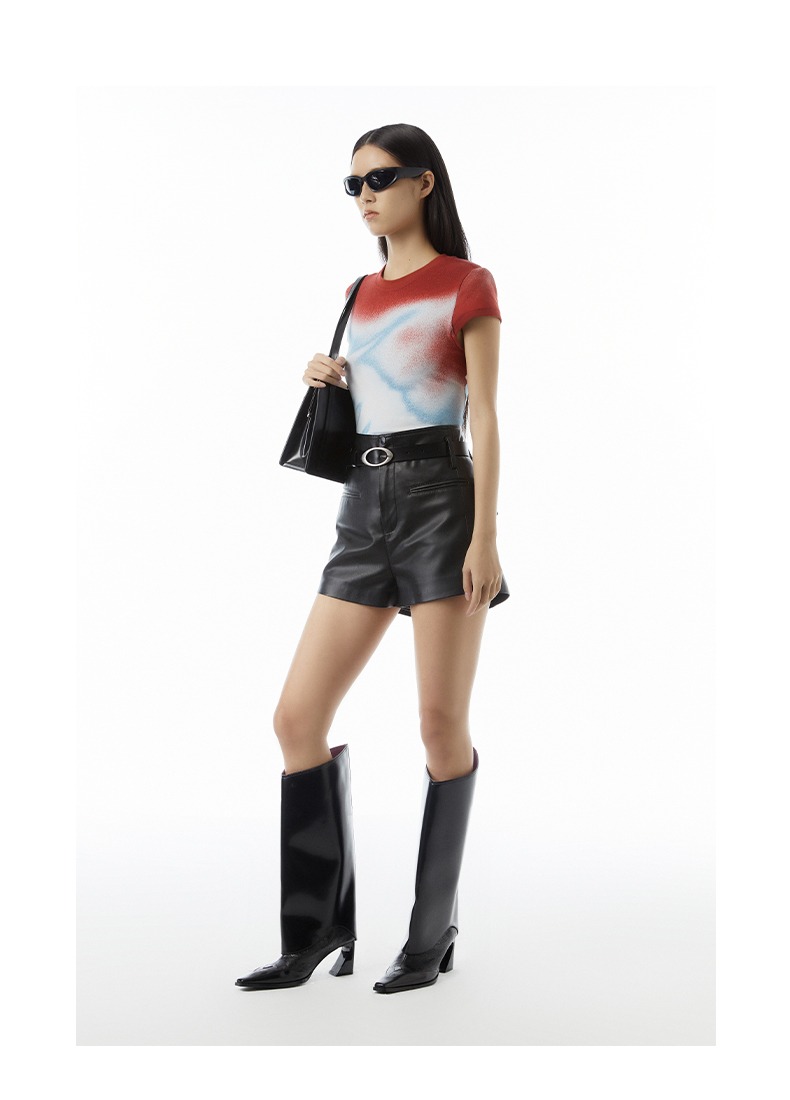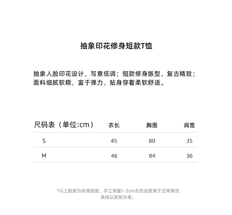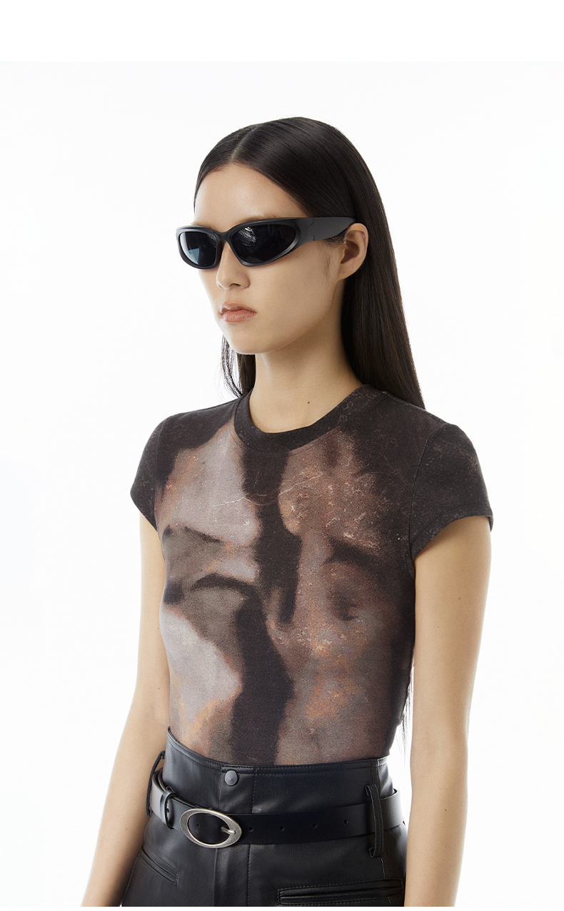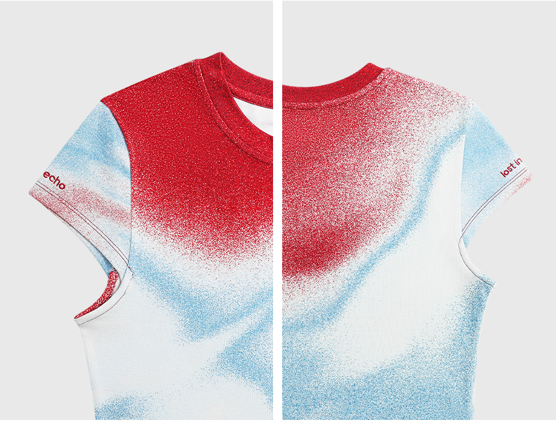lost in echo设计师品牌Aliz系列弹力舒适抽象印花修身短款T恤女