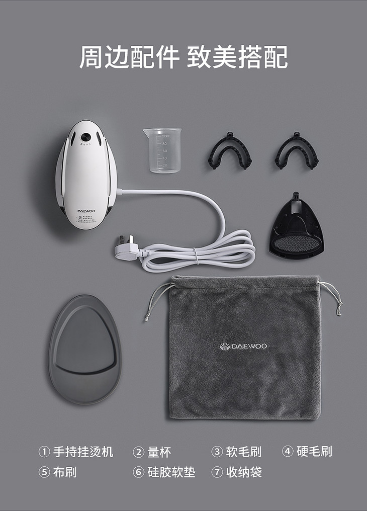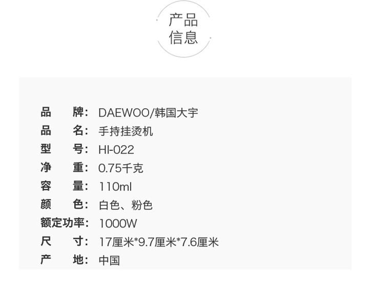 DAEWOO韩国大宇手持挂烫机 家用干湿双熨便携式小型旅行熨烫机HI-022(梅雨季好帮手)