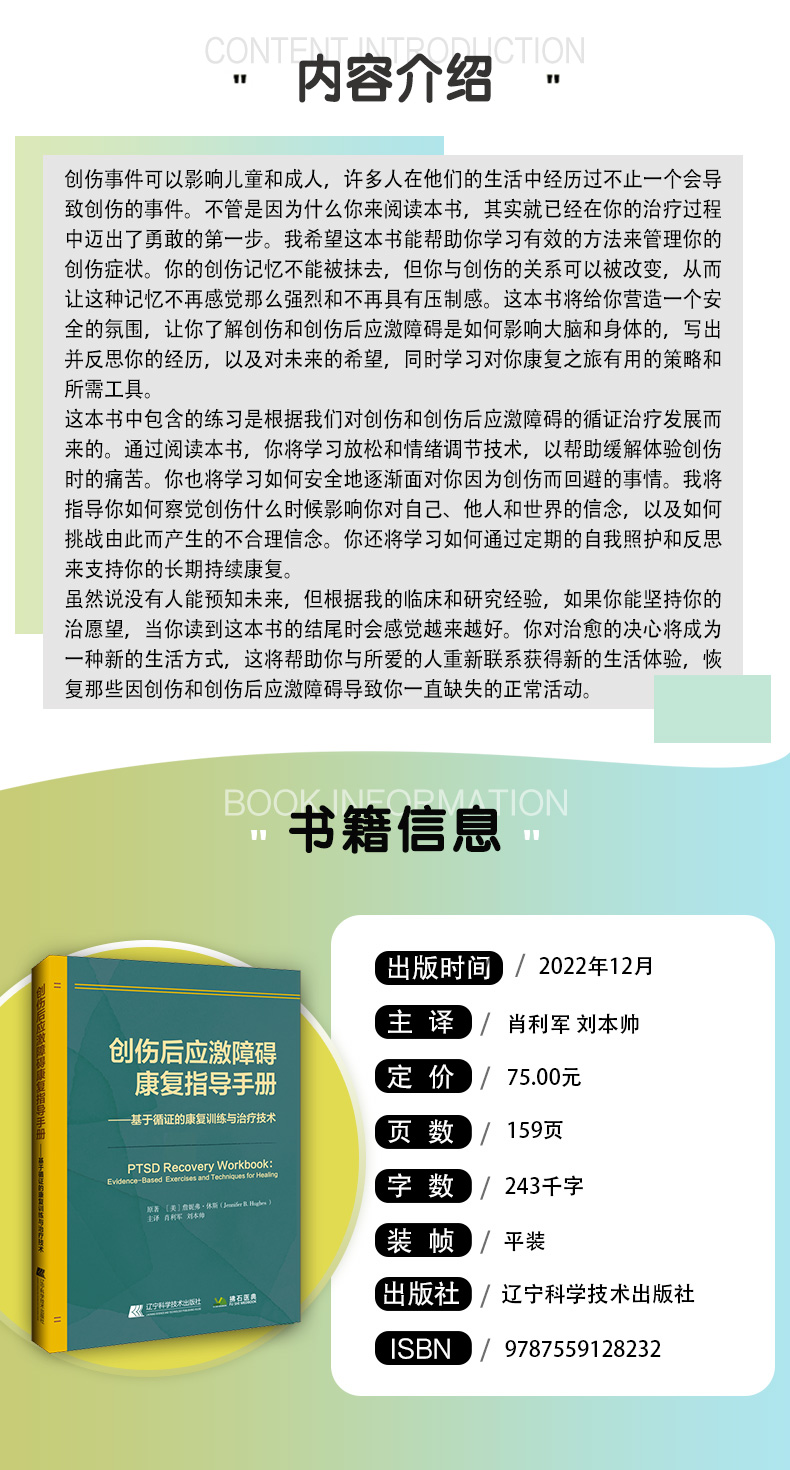 创伤后应激障碍康复指导手册 基于循证的康复训练与治疗技术 肖利军 刘本帅主译 PTSD疗愈练习 辽宁科学技术出版社9787559128232
