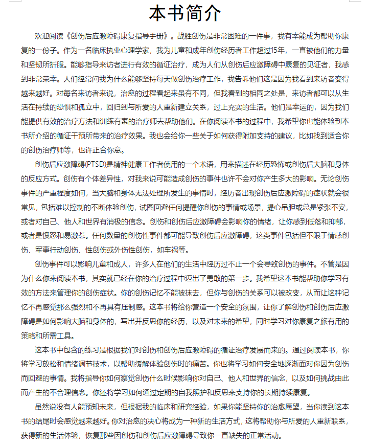 书名:创伤后应激障碍康复指导手册——基于循证的康复训练与治疗技术