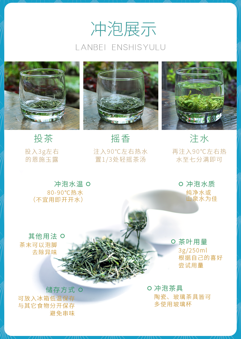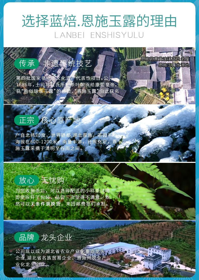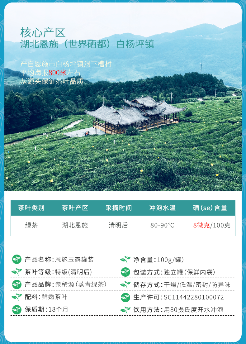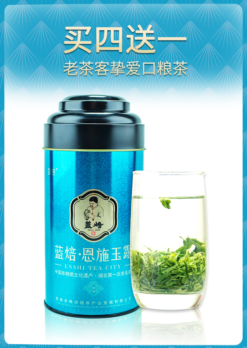 蓝焙绿茶恩施玉露富硒茶湖北高山蒸青雨前一级茶叶100克罐装口粮茶