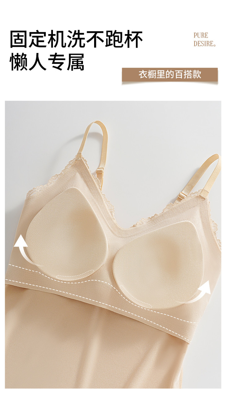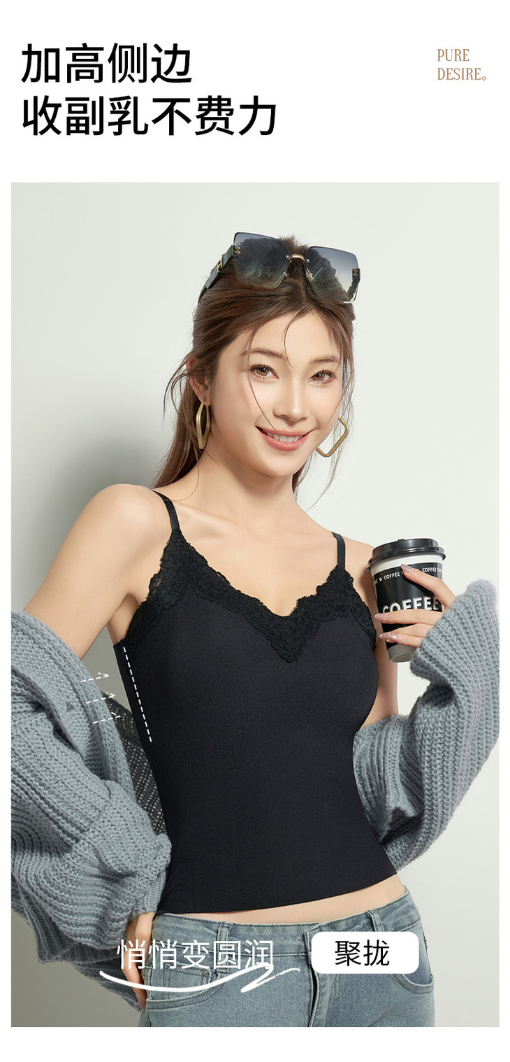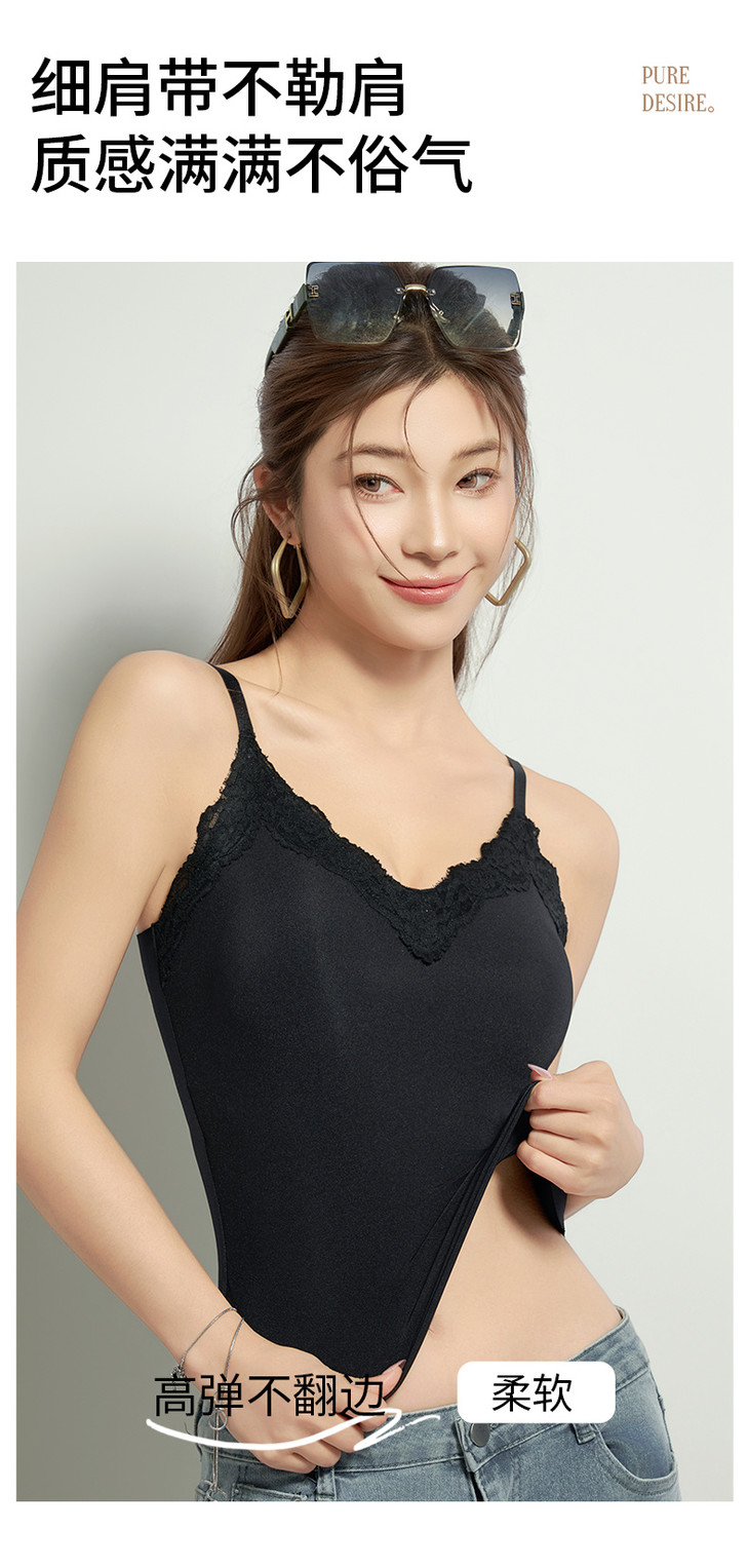 ✨举手投足间皆是氛围感!❣️【草本初色无痕细闪蕾丝吊带8837#】搭配开衫外套 若隐若现~🍑散发着满满温柔气息 是仙女本人啦~ 内衣吊带二合一的设计 💪告别臃肿穿搭!