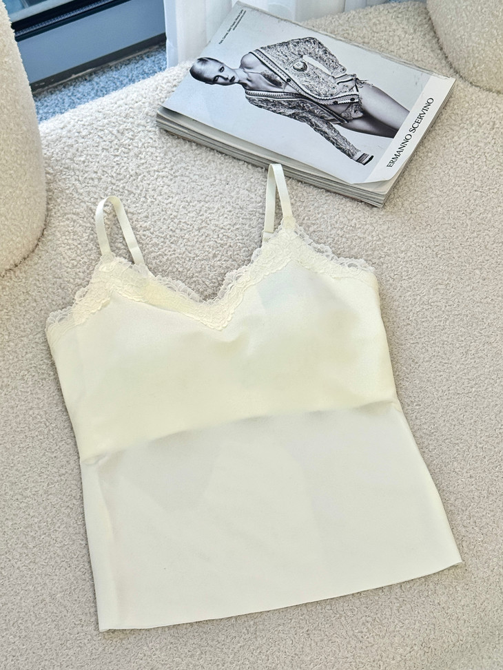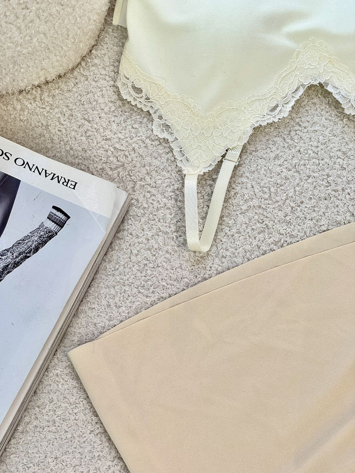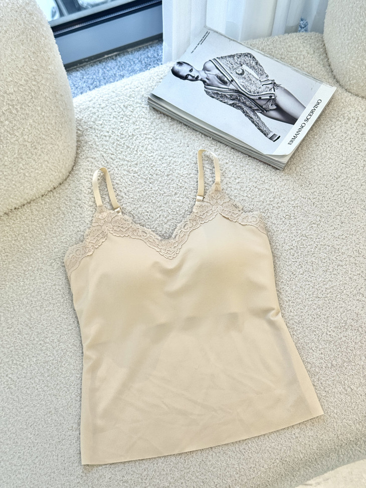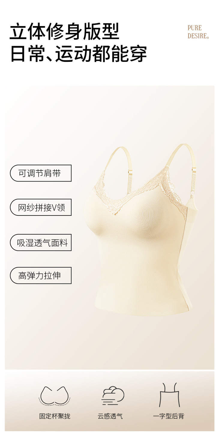 ✨举手投足间皆是氛围感!❣️【草本初色无痕细闪蕾丝吊带8837#】搭配开衫外套 若隐若现~🍑散发着满满温柔气息 是仙女本人啦~ 内衣吊带二合一的设计 💪告别臃肿穿搭!