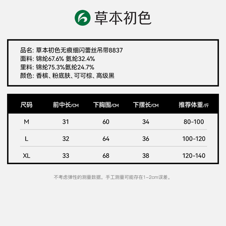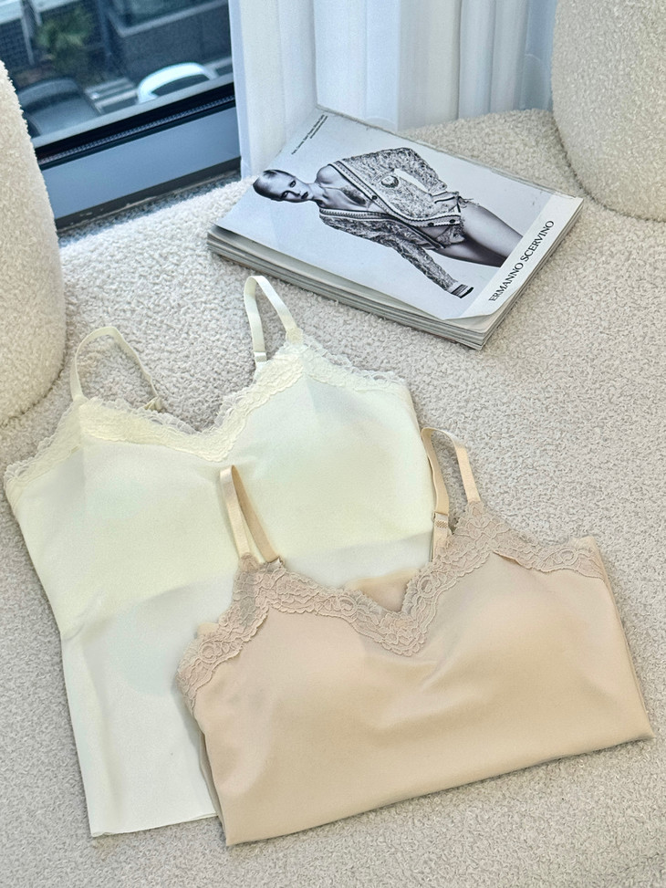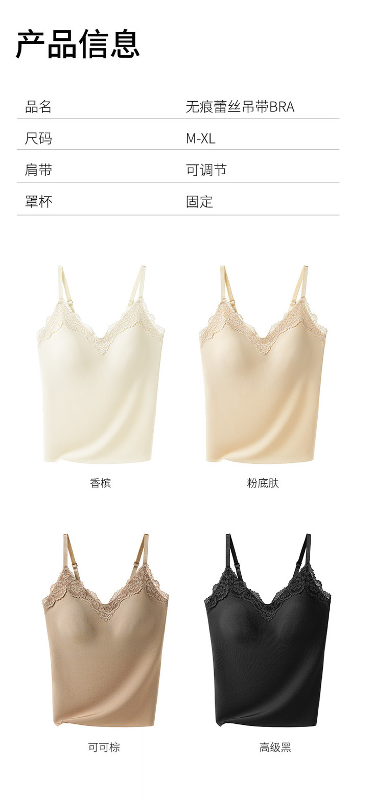 草本初色无痕细闪蕾丝吊带8837#
