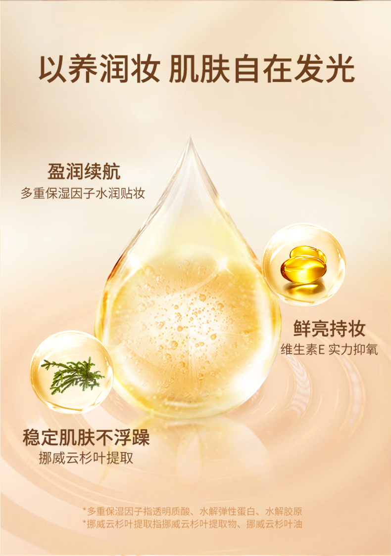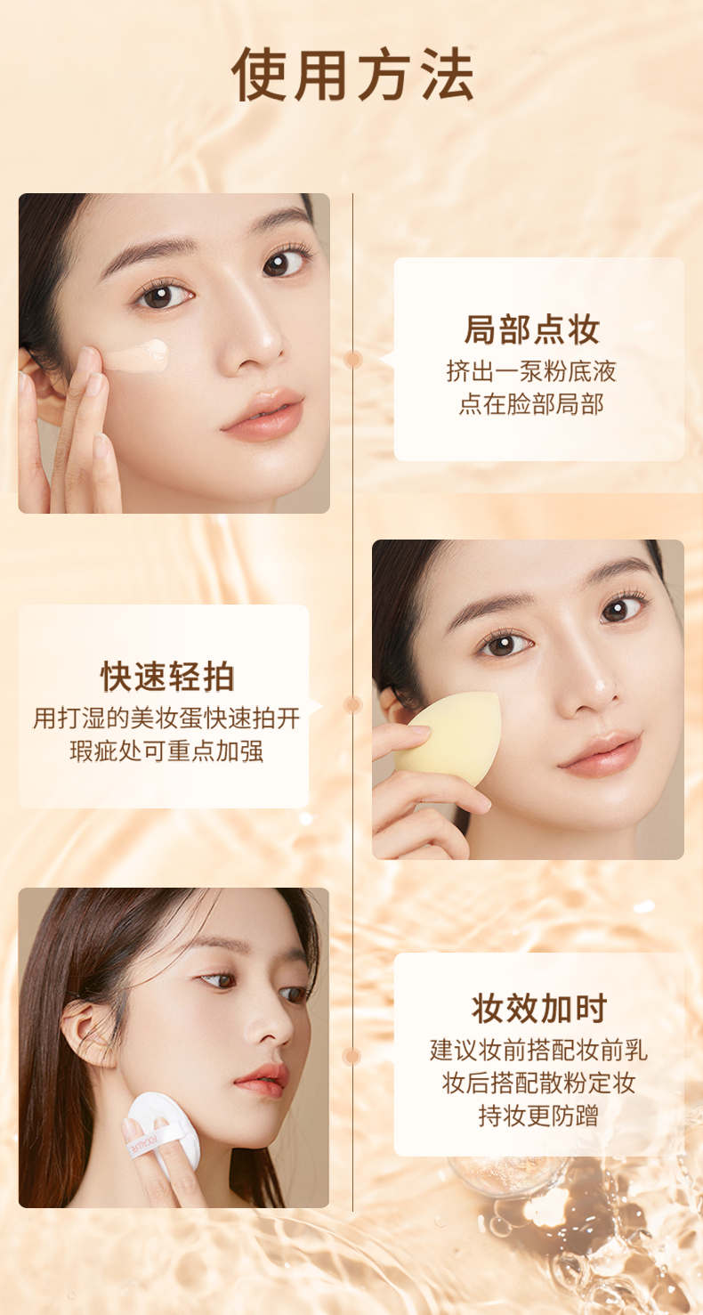 菲鹿儿光凝水感粉底液持久轻薄遮瑕水润干皮奶油肌BB霜