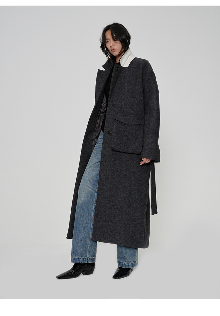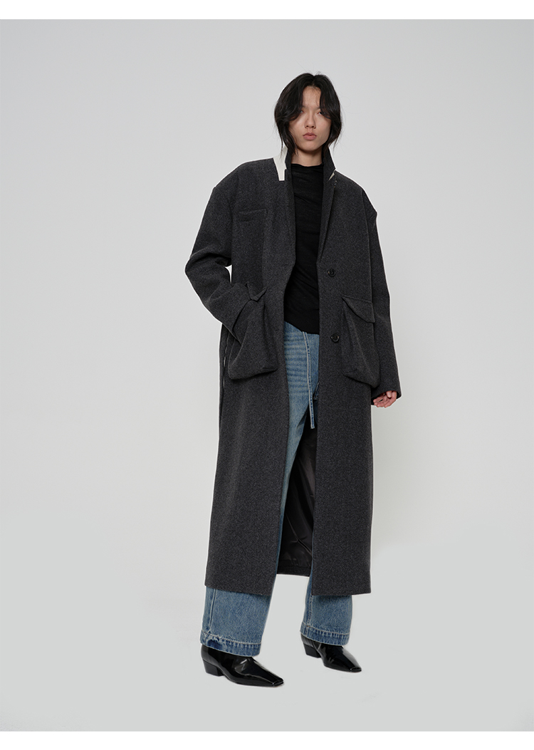 HIDEMI日本加厚粗花呢口袋设计感衬衫式羊毛大衣