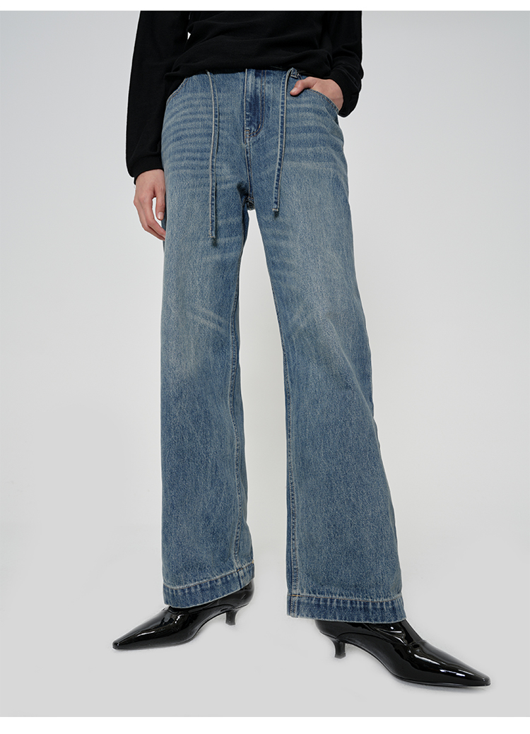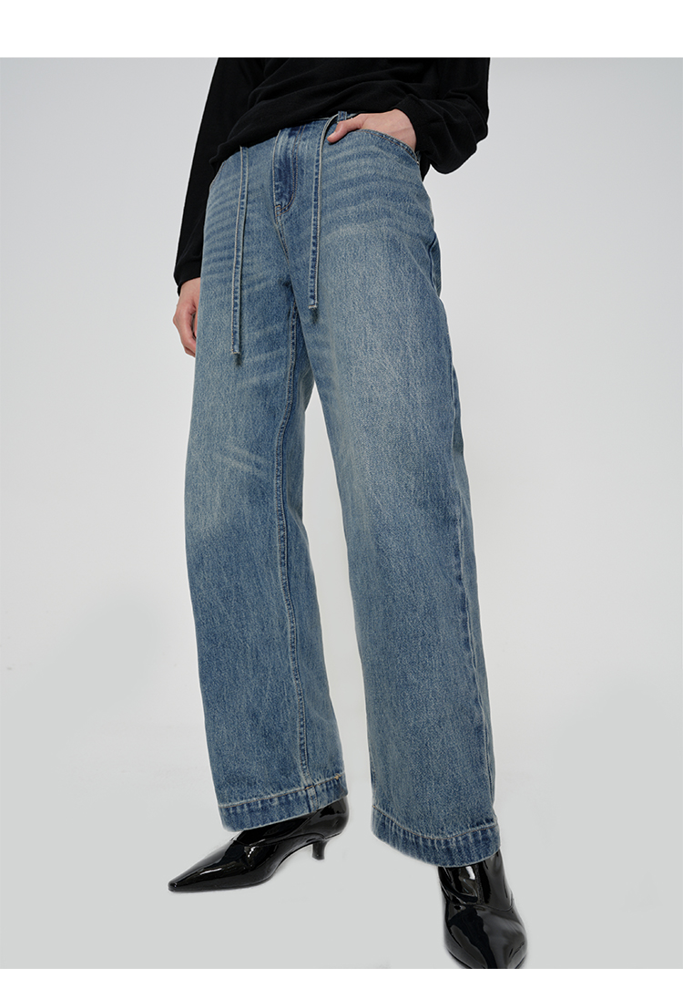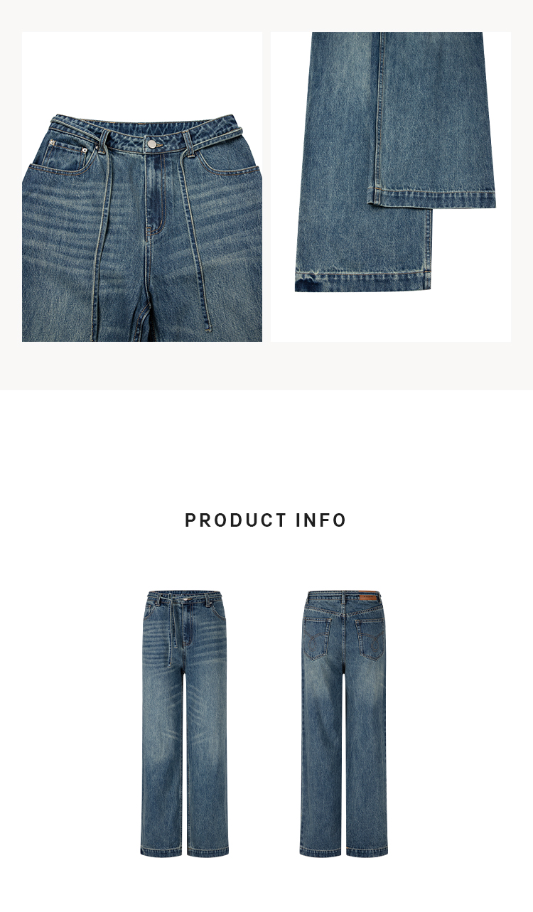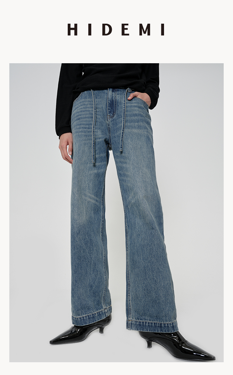 HIDEMI 多重水洗可拆卸腰带式阔腿九分裤牛仔裤