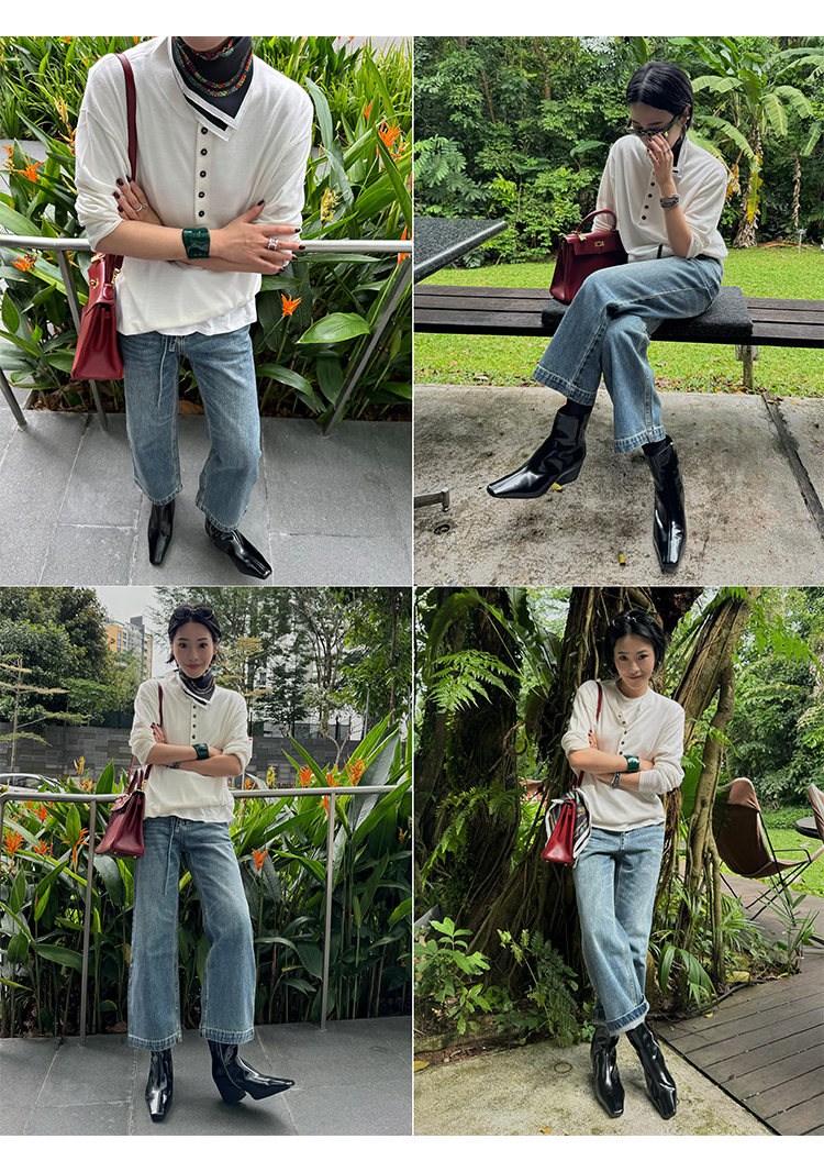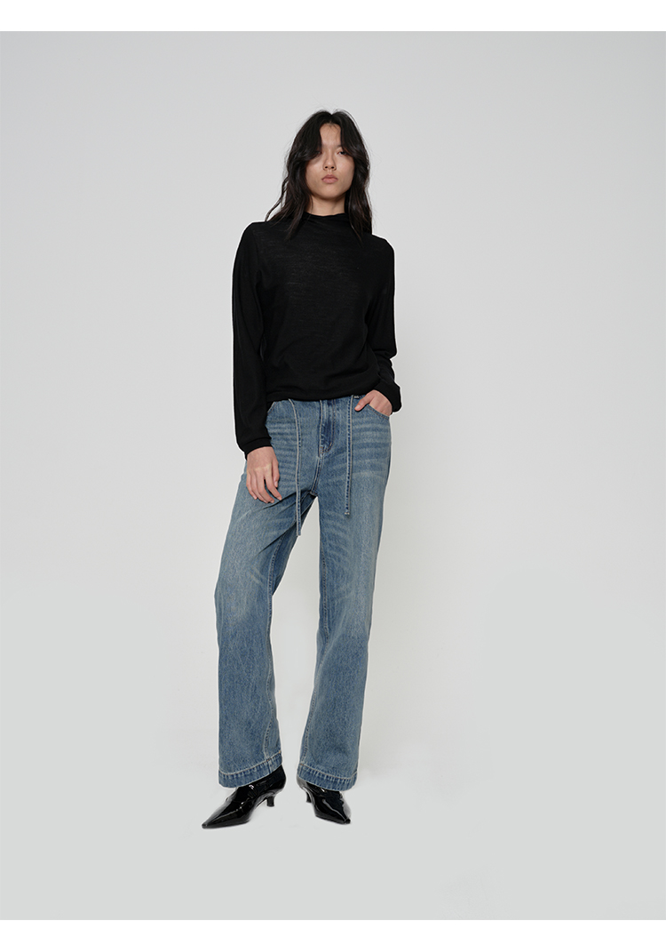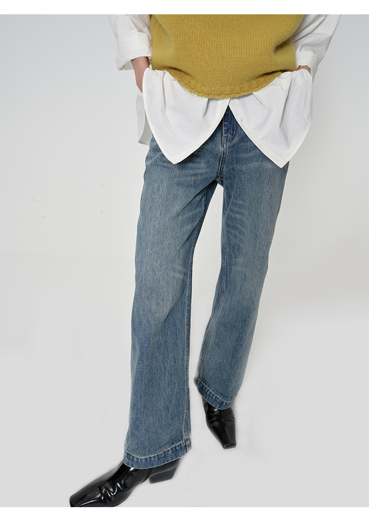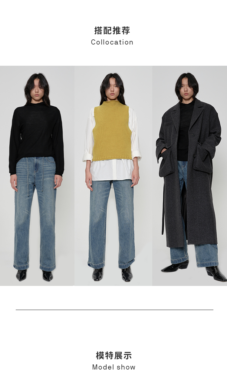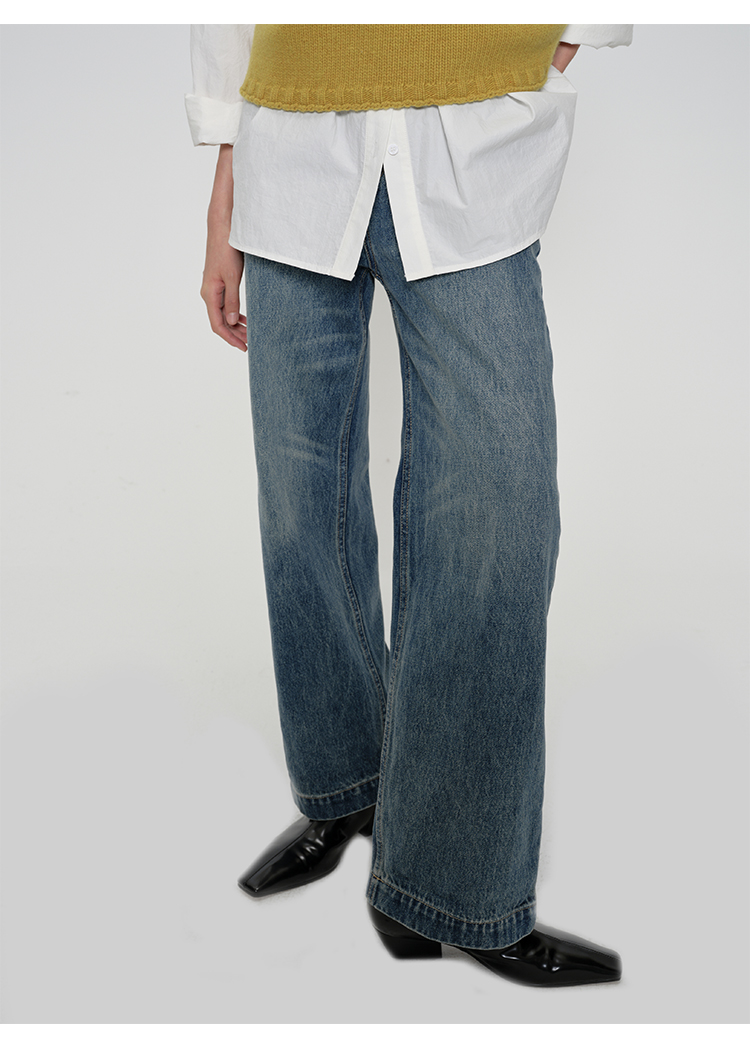 HIDEMI 多重水洗可拆卸腰带式阔腿九分裤牛仔裤