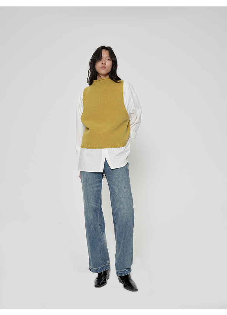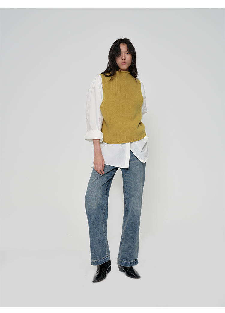 HIDEMI 美利奴羊毛绞花V领背心 原白色/藏蓝色