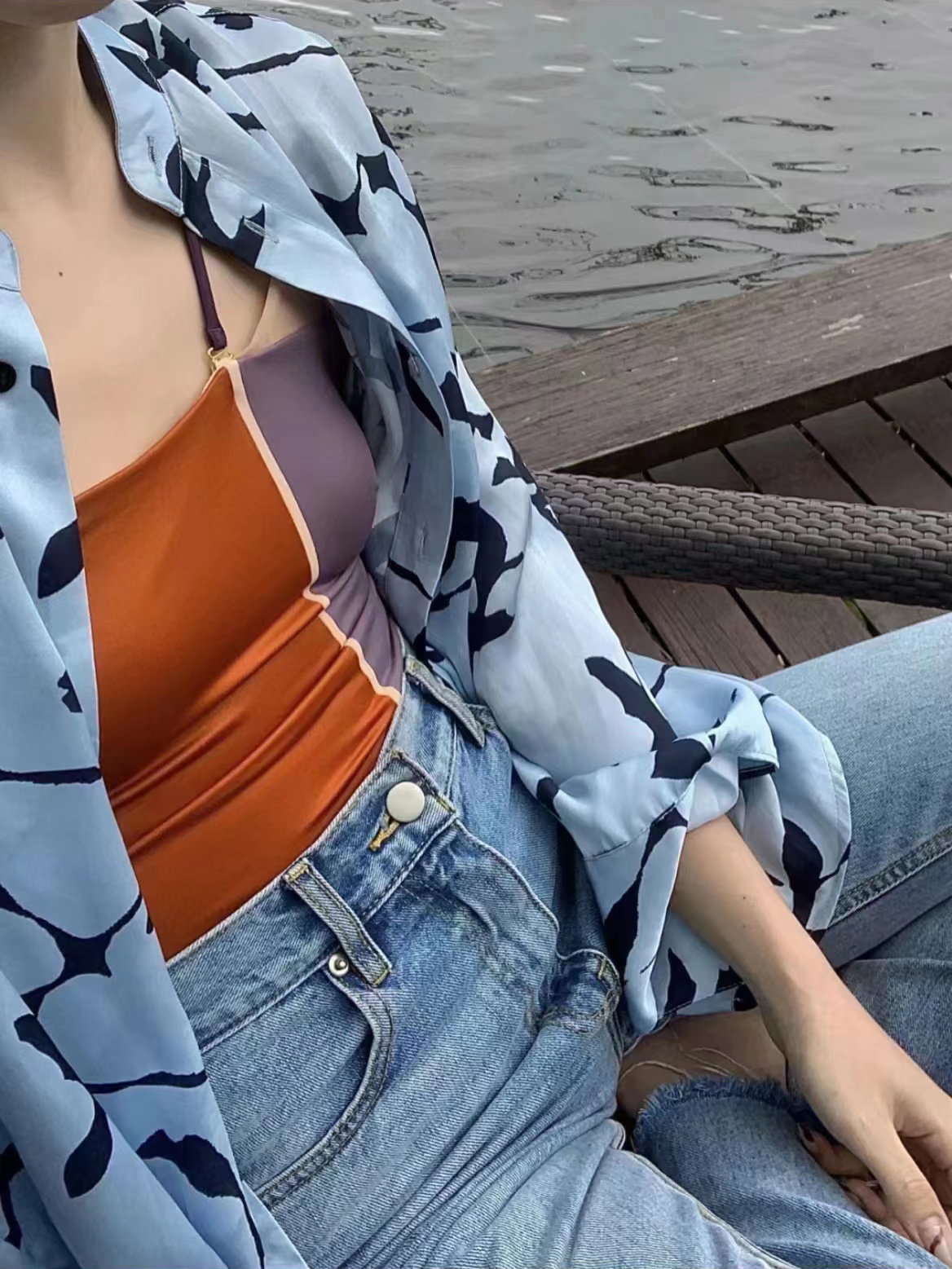 HIDEMI斜纹口袋设计感套装 杏仁卡其/藏蓝色