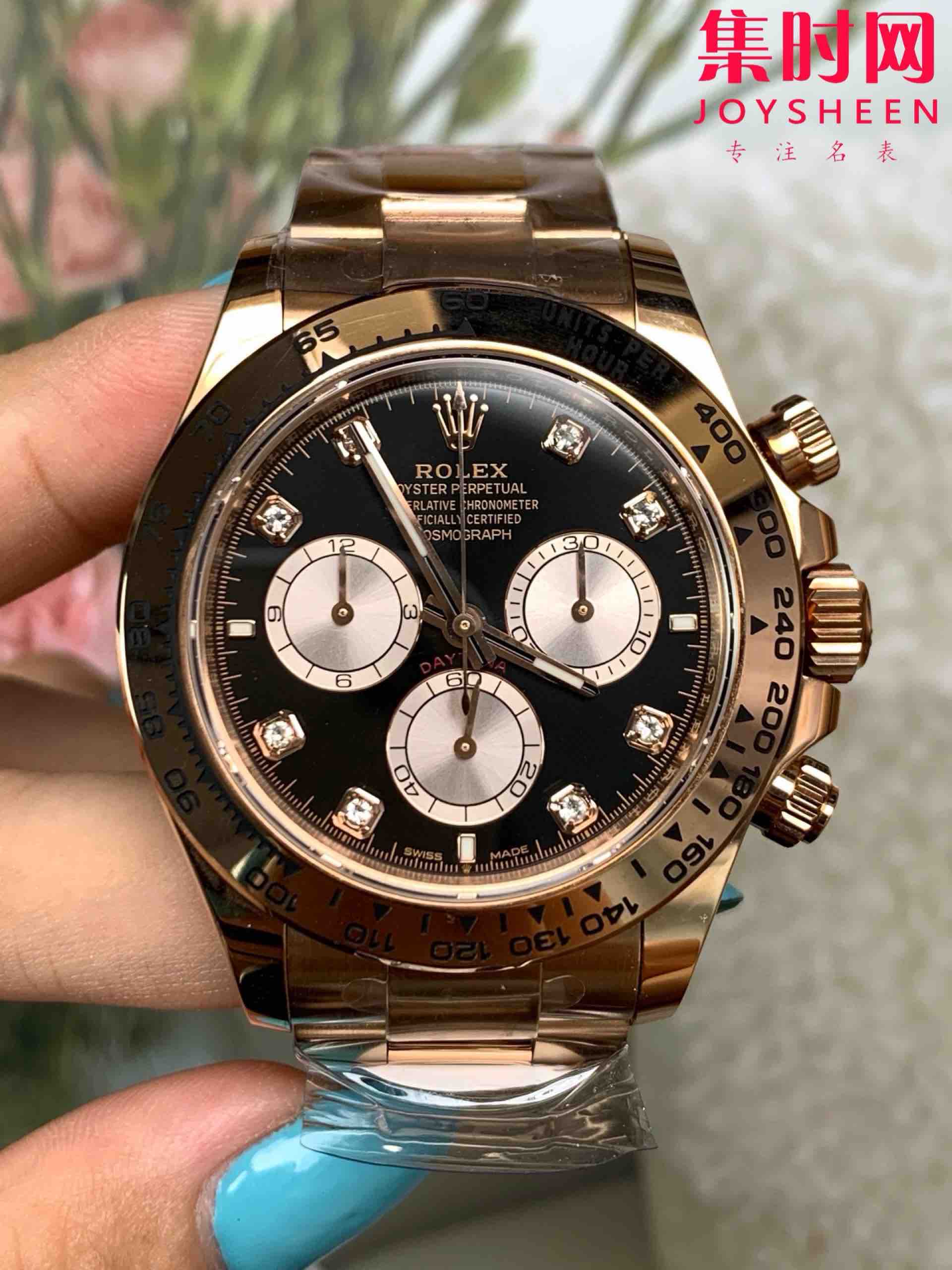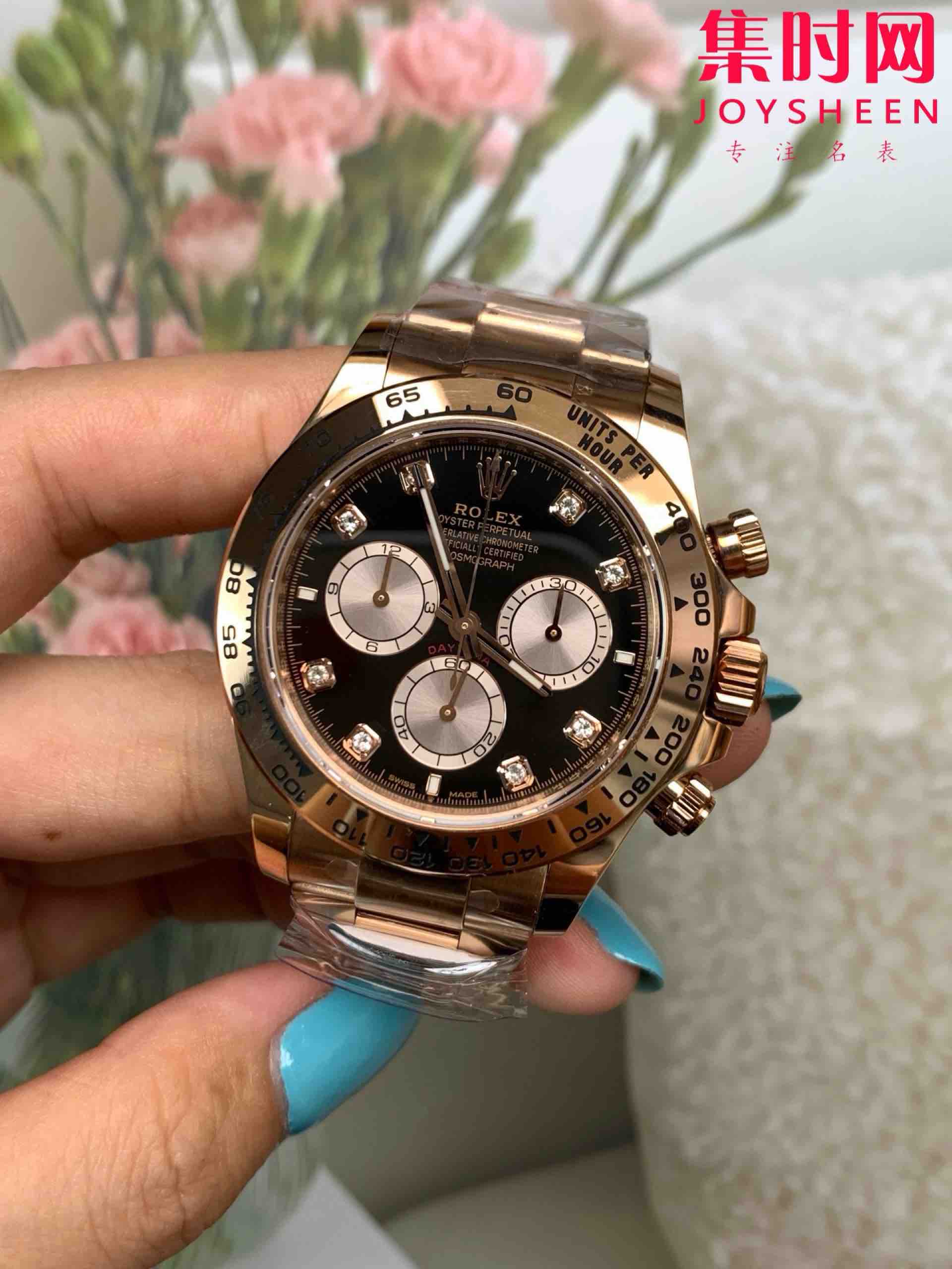 劳力士宇宙计型 BT迪通拿 全玫金钢带 黑盘钻面 男士腕表 丹东4131机