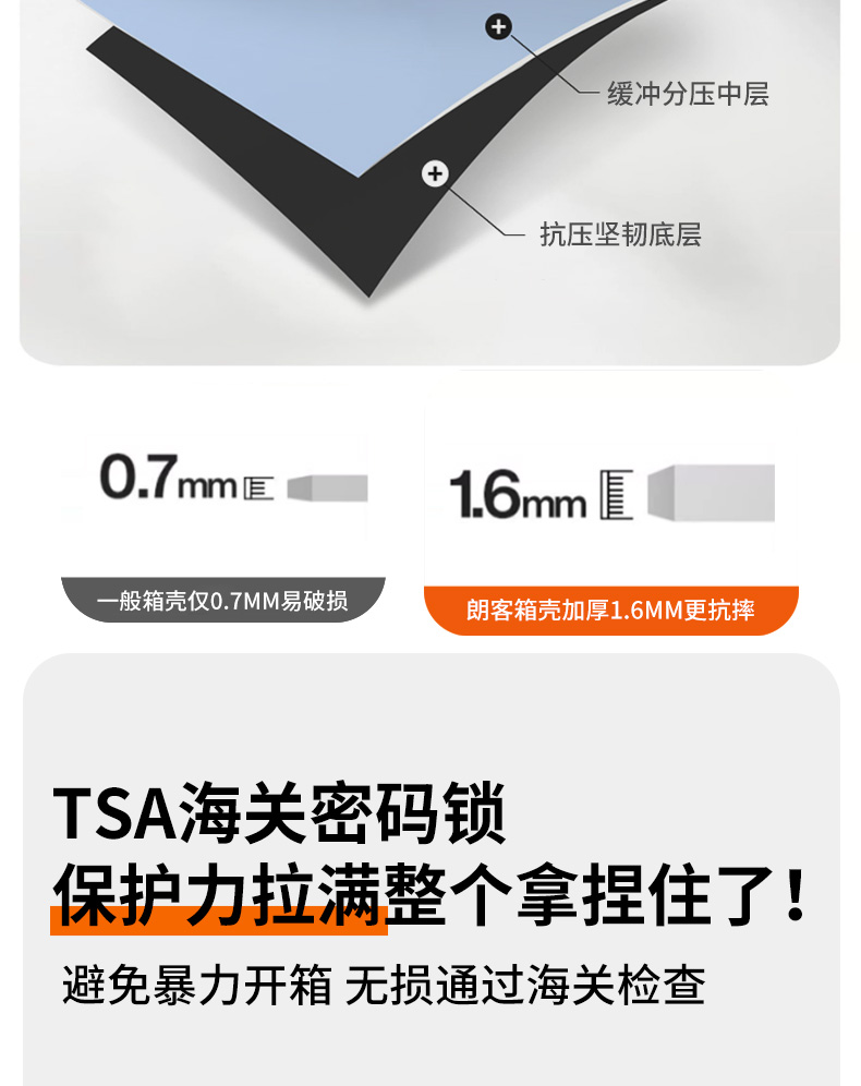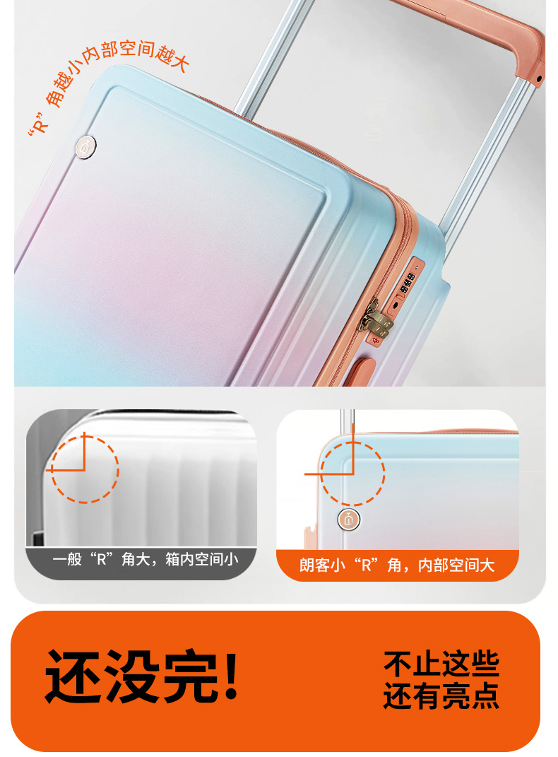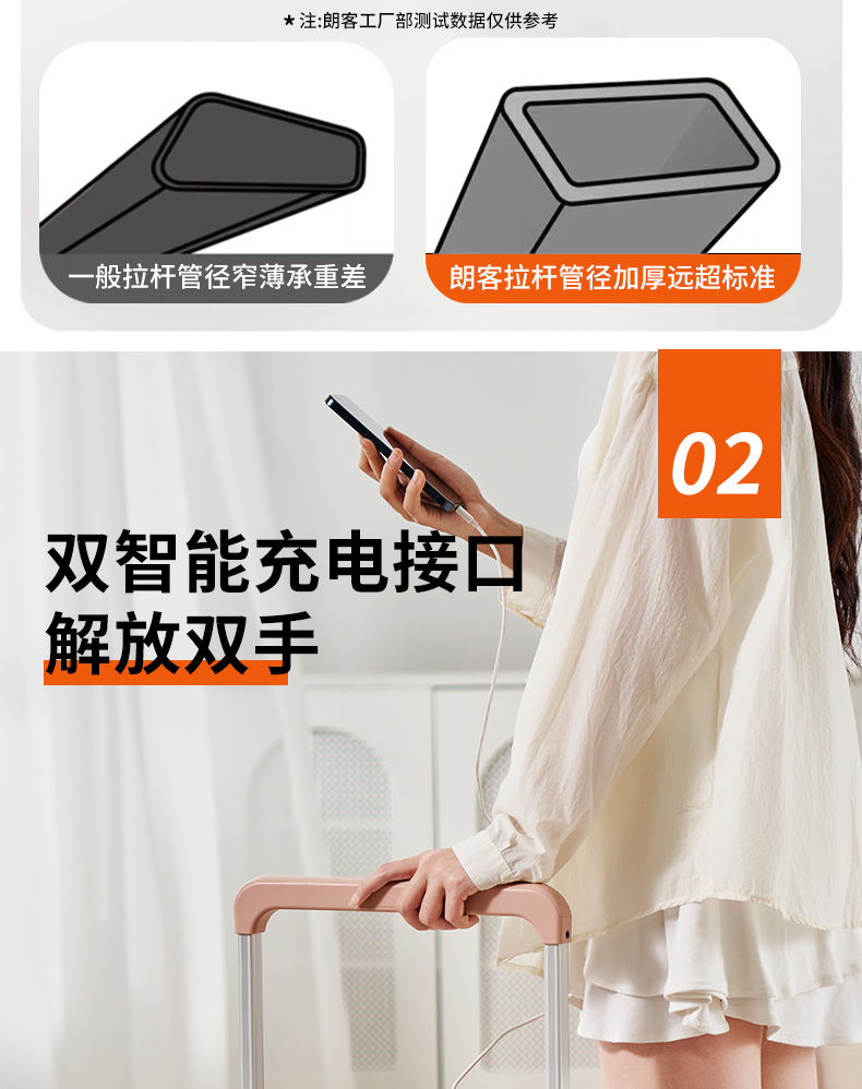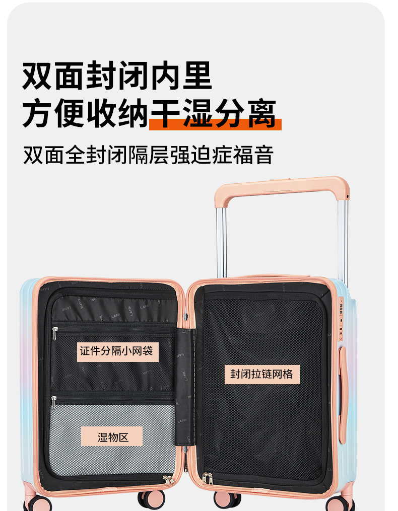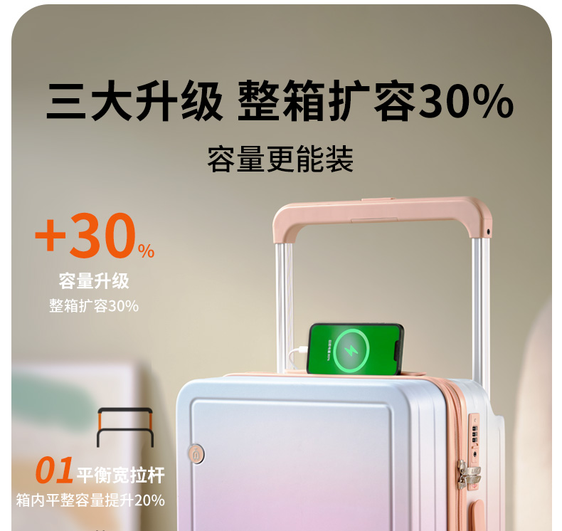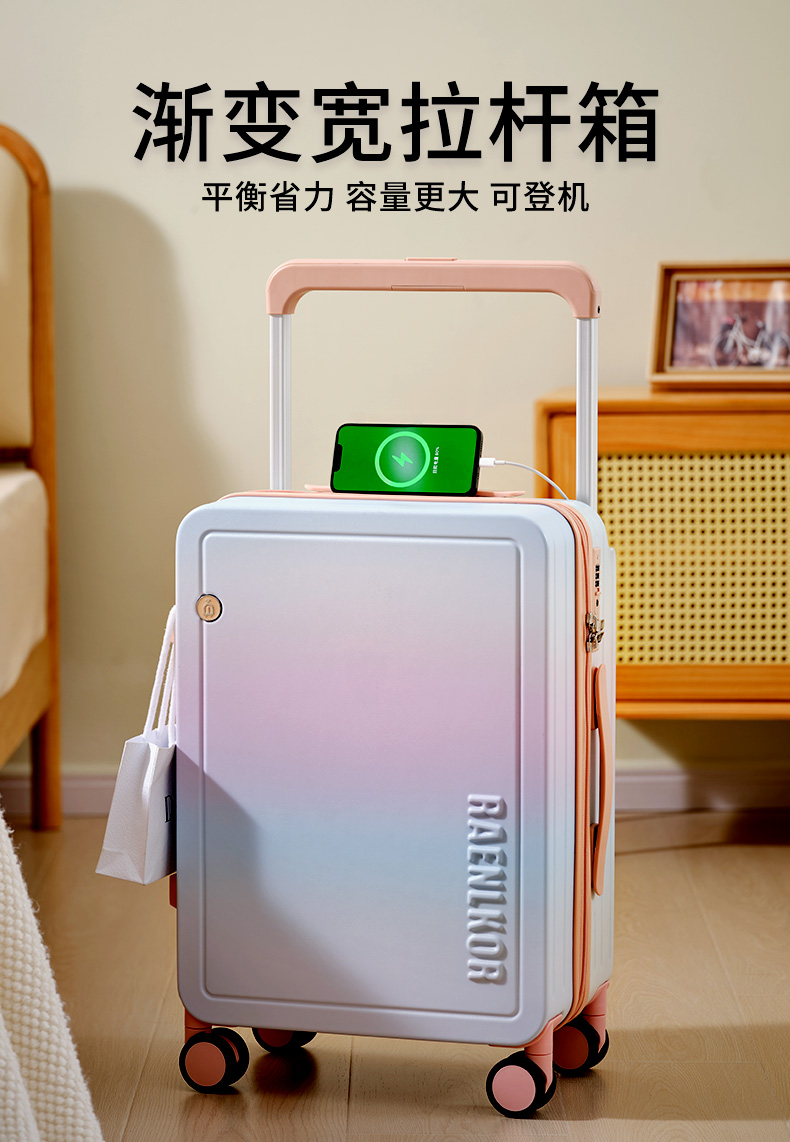 源自德国品牌【USB充电口,送箱套】德国朗客宽拉杆20寸学生行李箱登机密码箱子男新款22寸大容量旅 行皮箱24