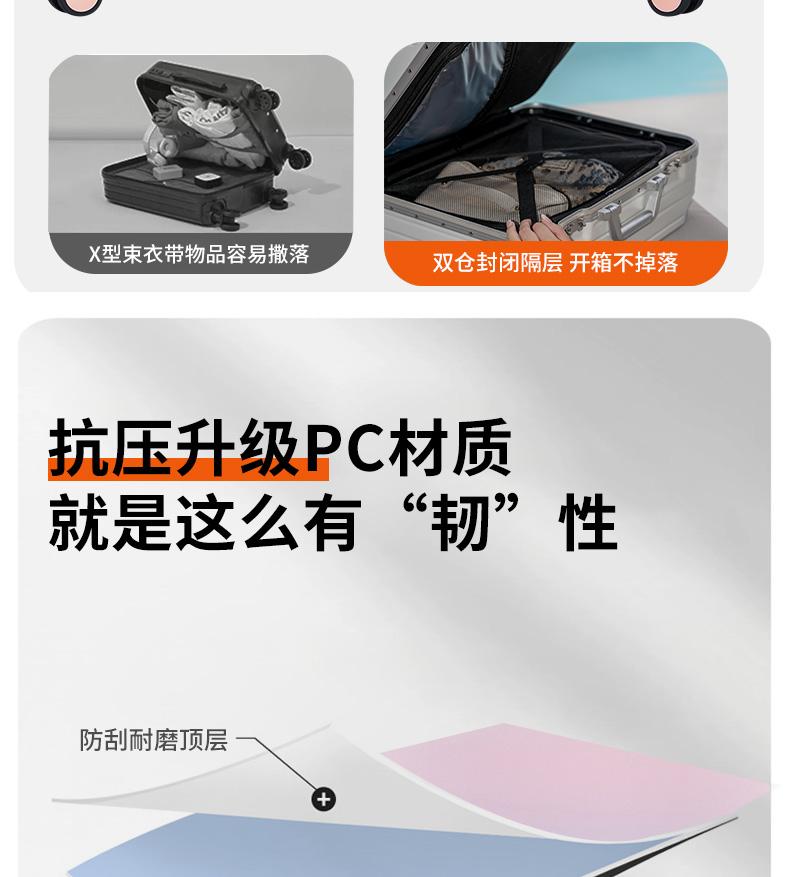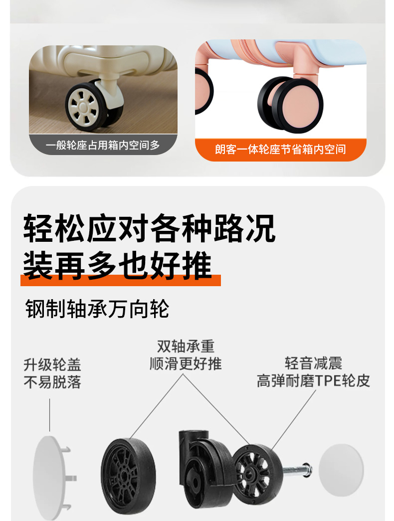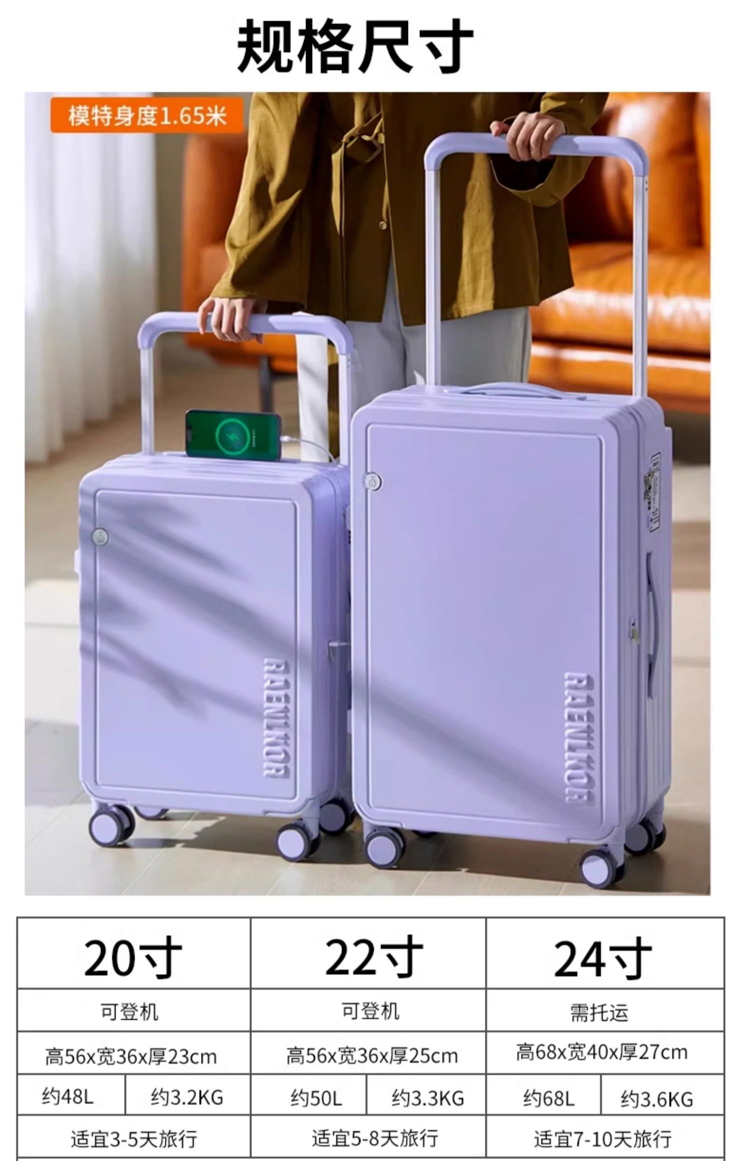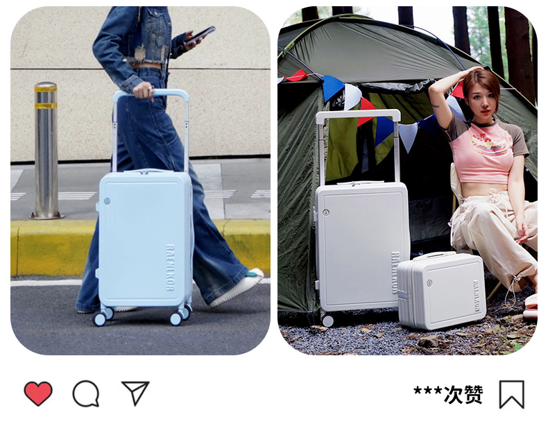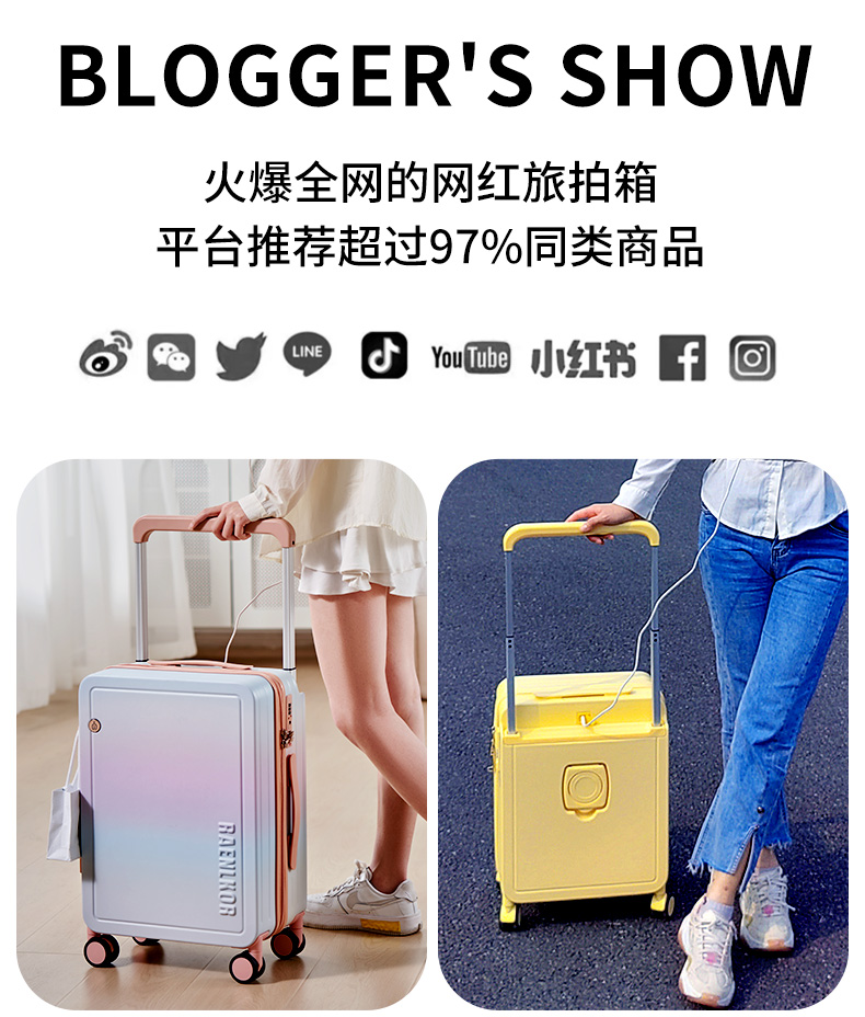 源自德国品牌【USB充电口,送箱套】德国朗客宽拉杆20寸学生行李箱登机密码箱子男新款22寸大容量旅 行皮箱24