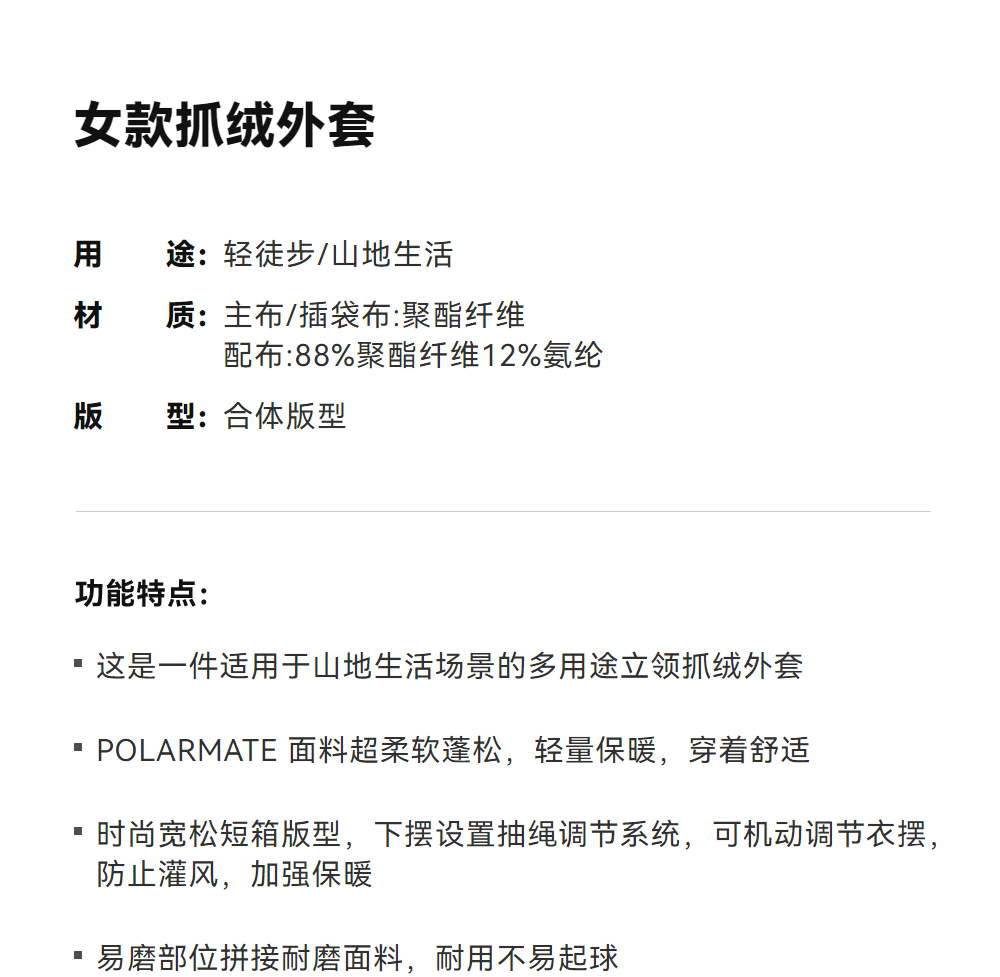 KAILAS凯乐石 户外运动 女款抓绒外套 KG2442212【Z】