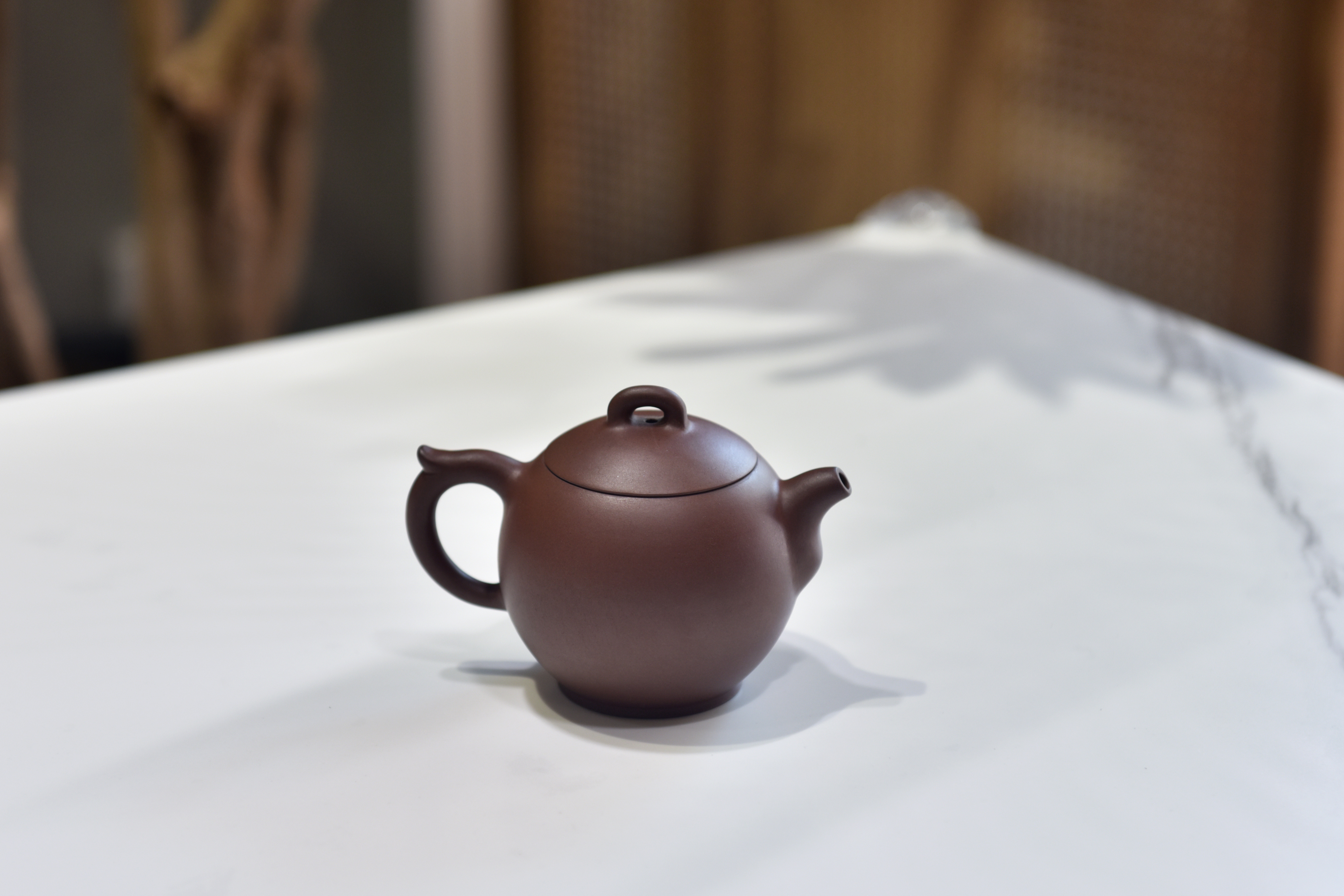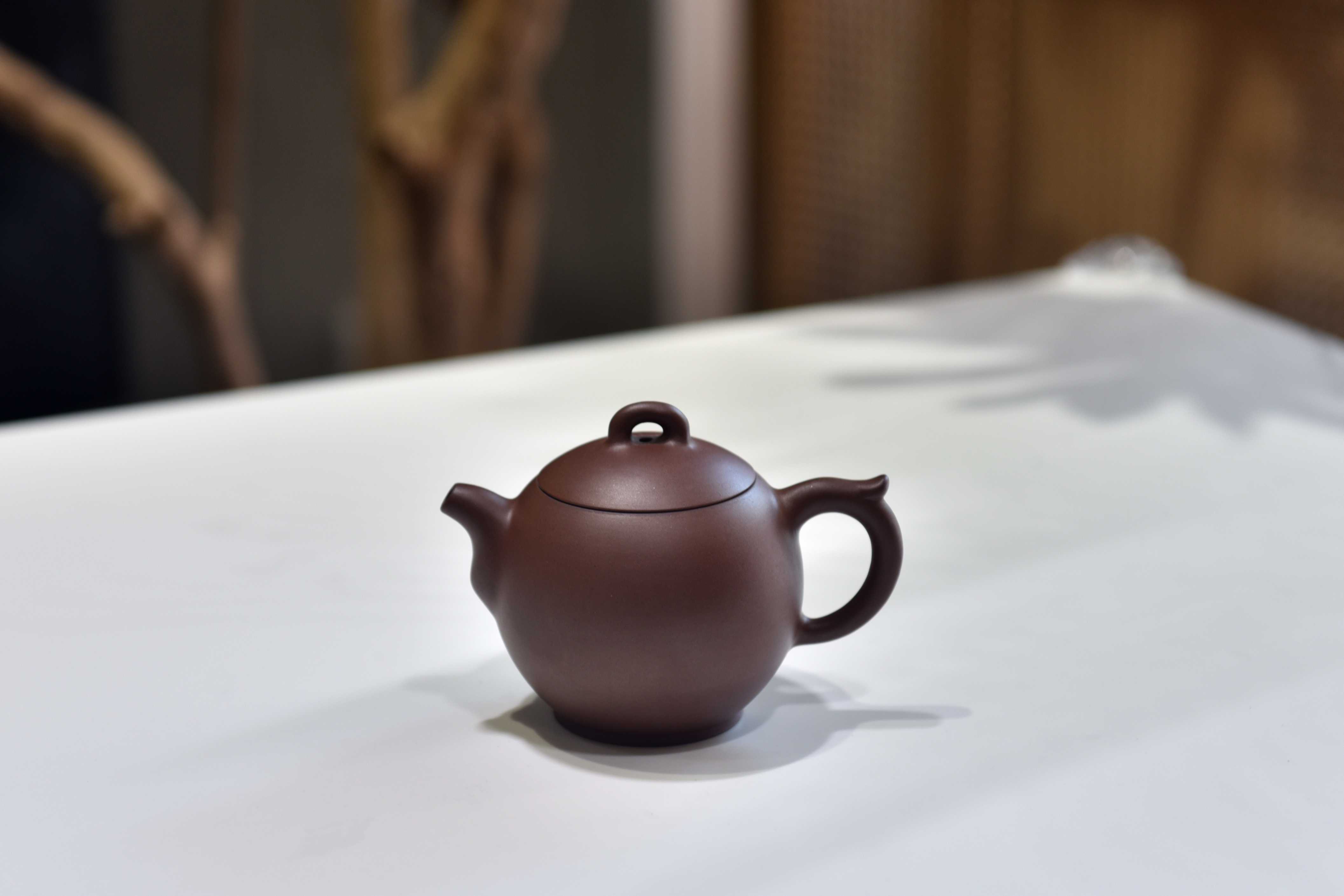 紫陶在傳統柴窯的氛圍裡會形成一層炻皮,在不同的光线下会呈现不同色泽,经过细心泡养后火气渐退,包浆如丝绸般温润可人。