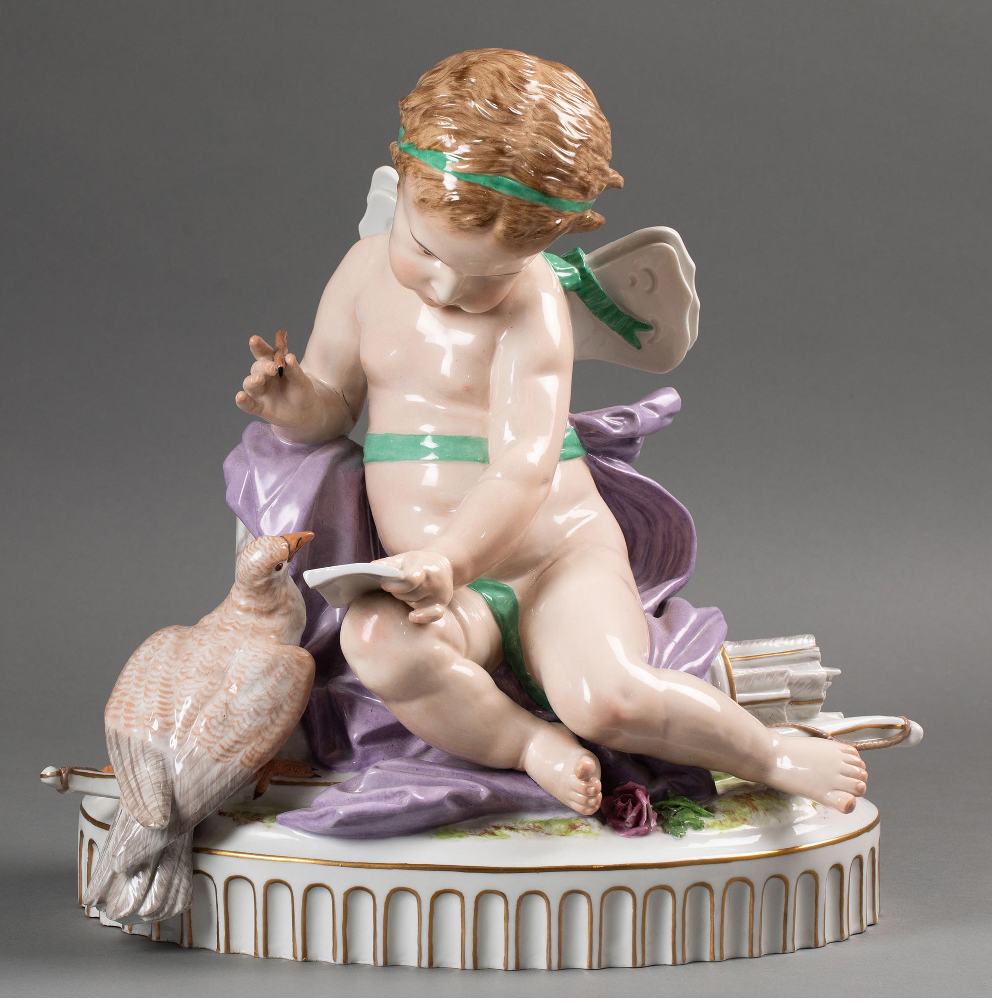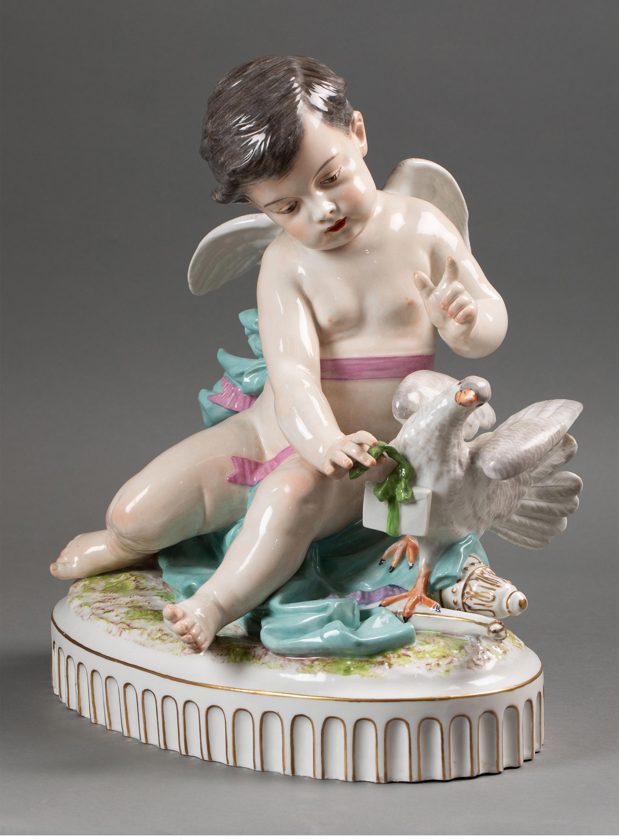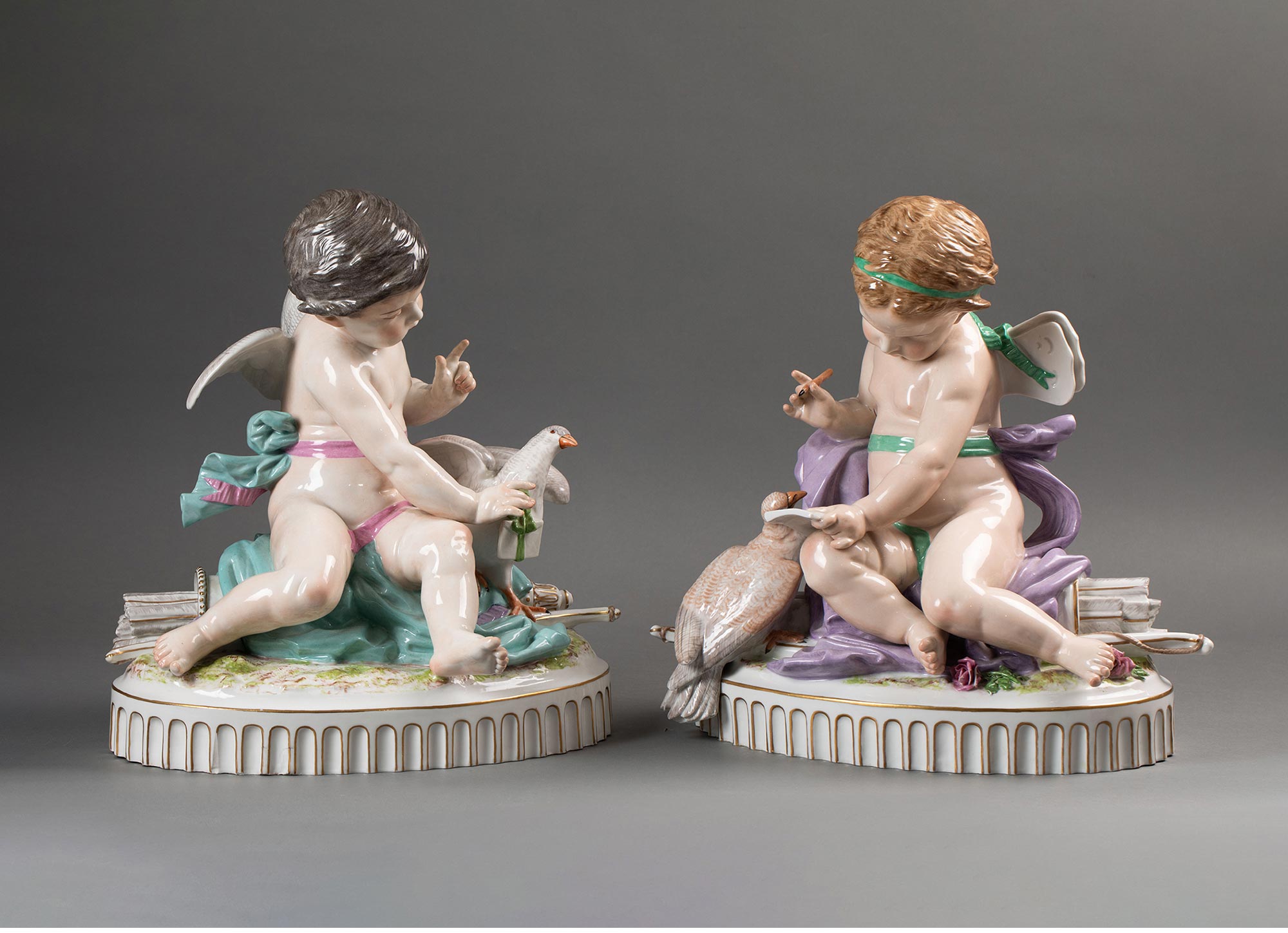 19世纪法国著名瓷器工坊Locré出品爱神小天使主题描金彩绘瓷偶一对