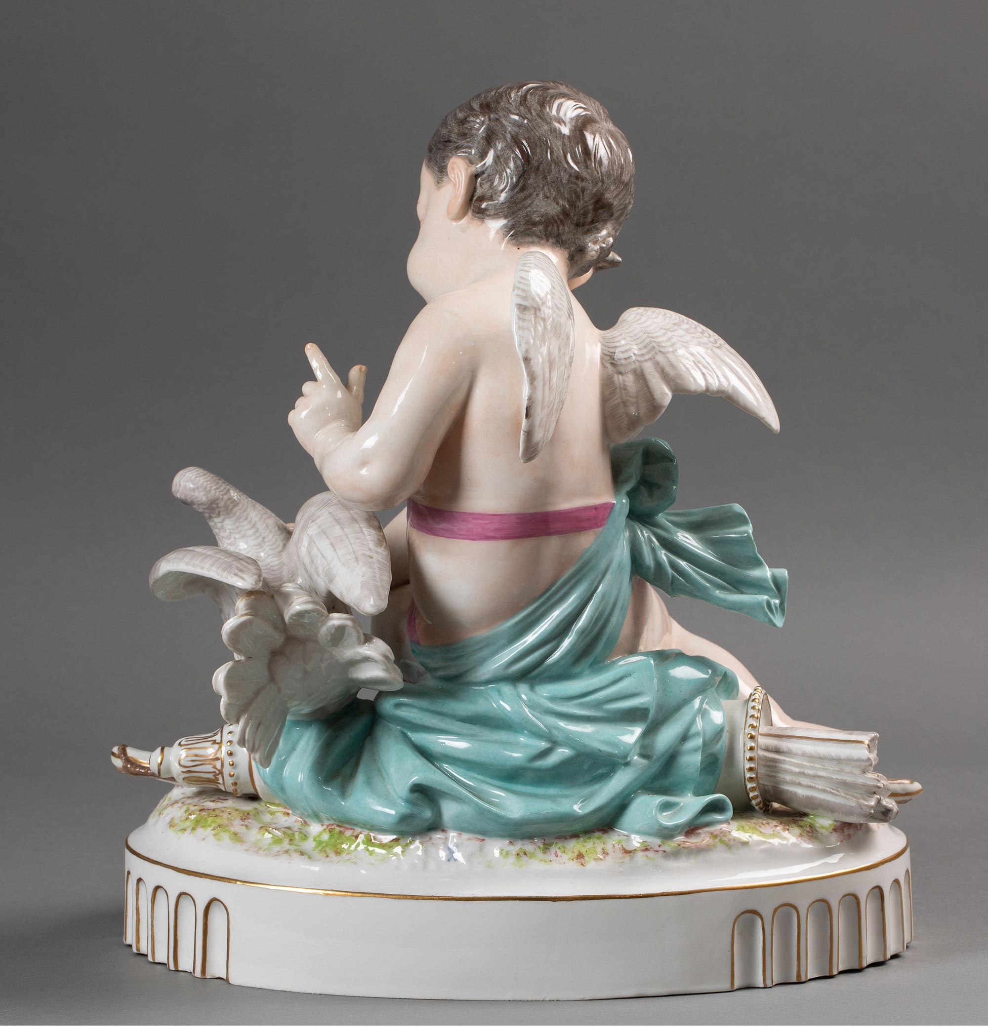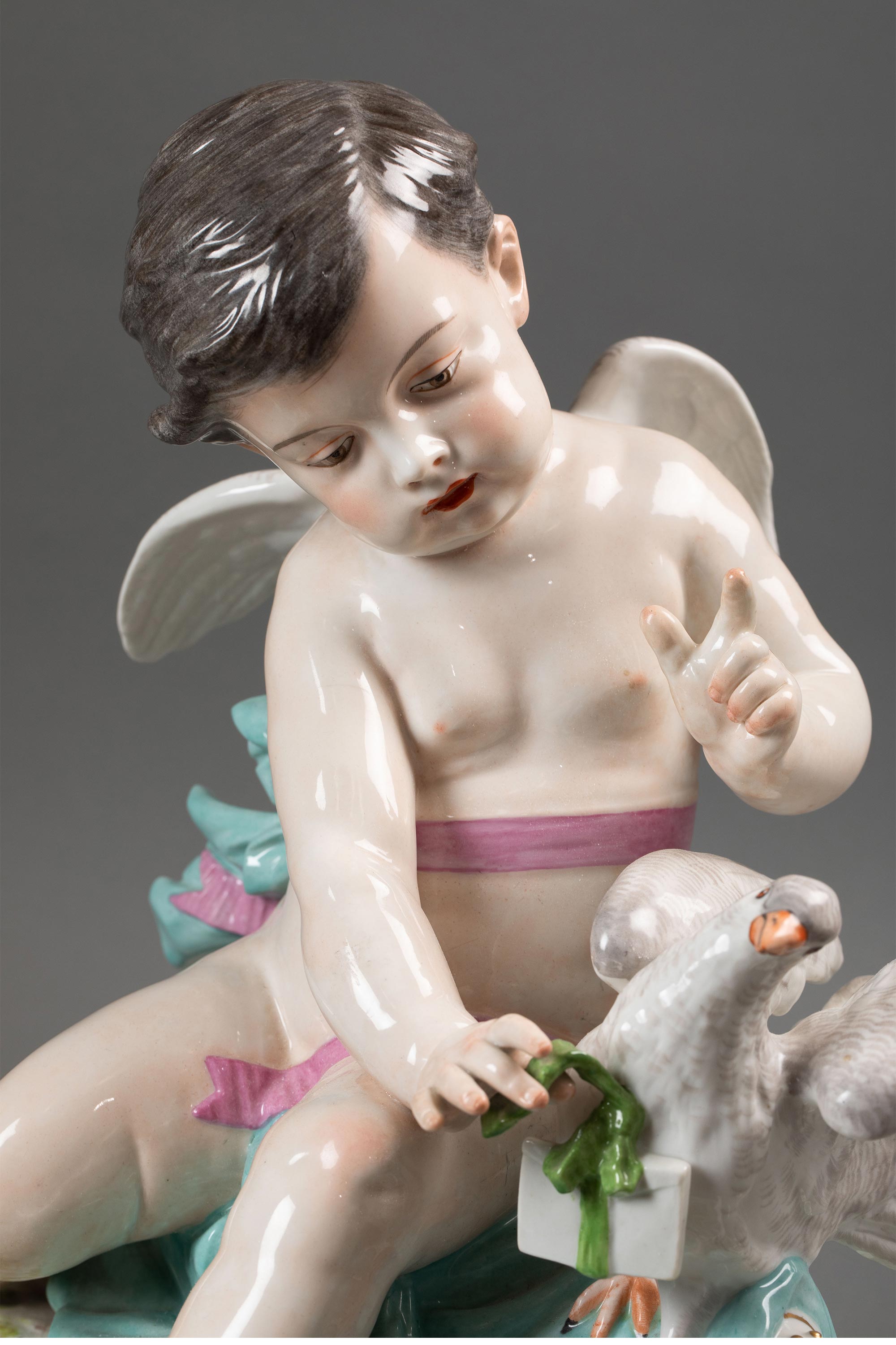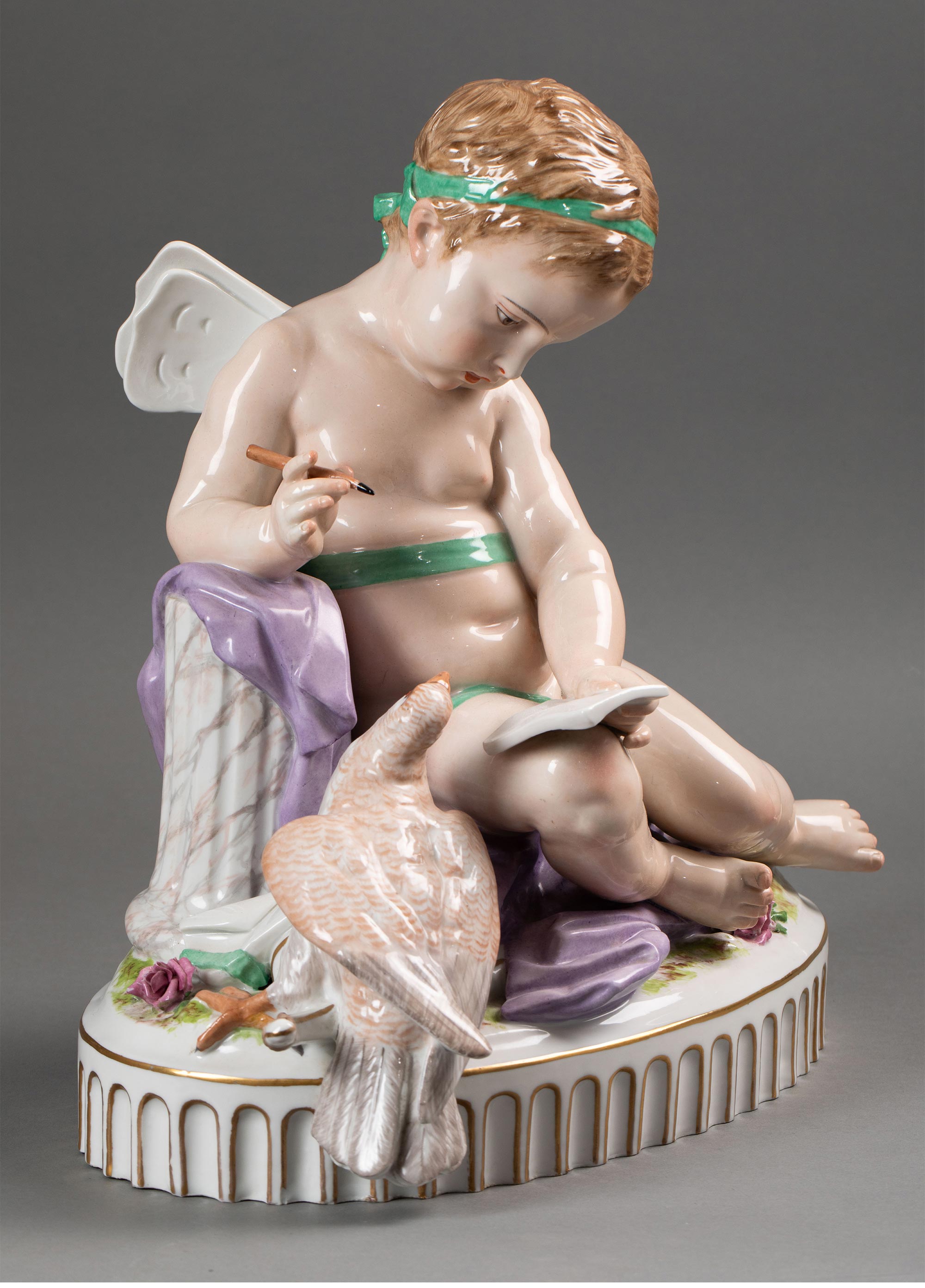 19世纪法国著名瓷器工坊Locré出品爱神小天使主题描金彩绘瓷偶一对