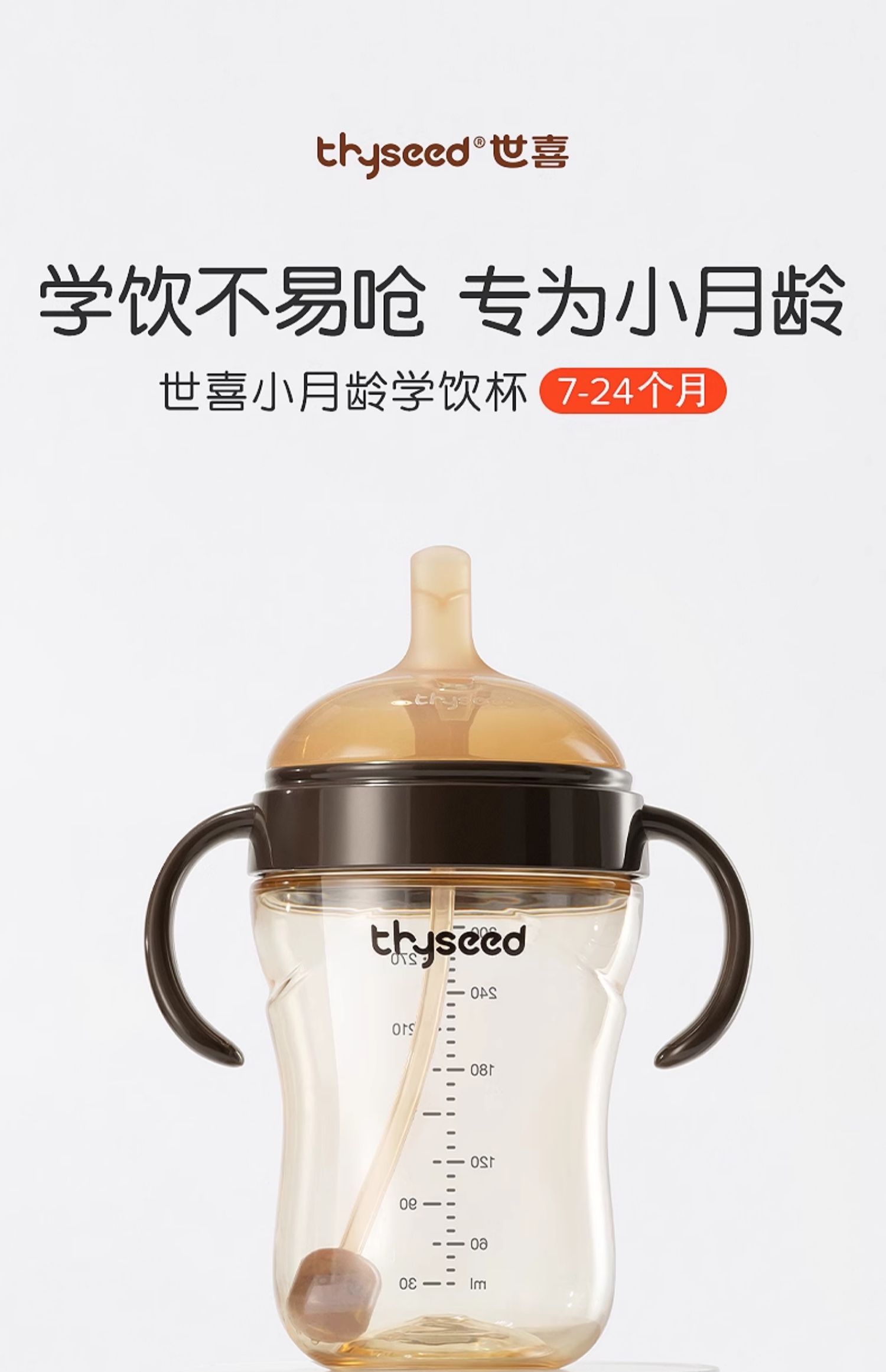世喜小月龄学饮杯6个月以上世喜PPSU吸管奶瓶12+ppsu宝宝喝水杯子重力球吸管杯