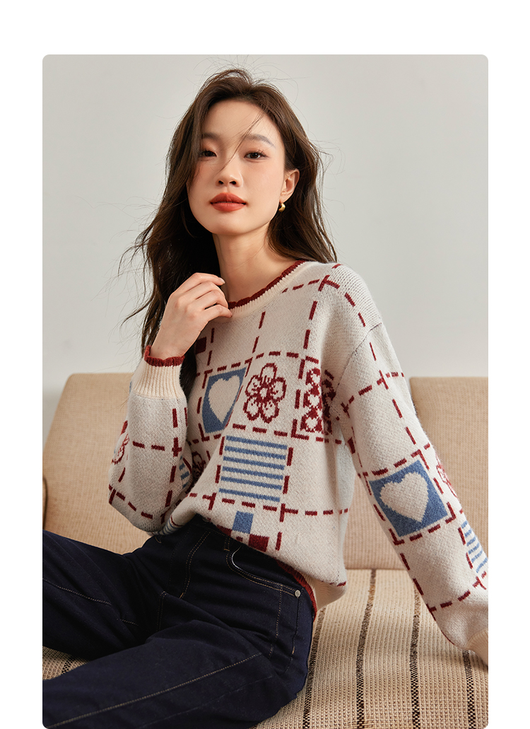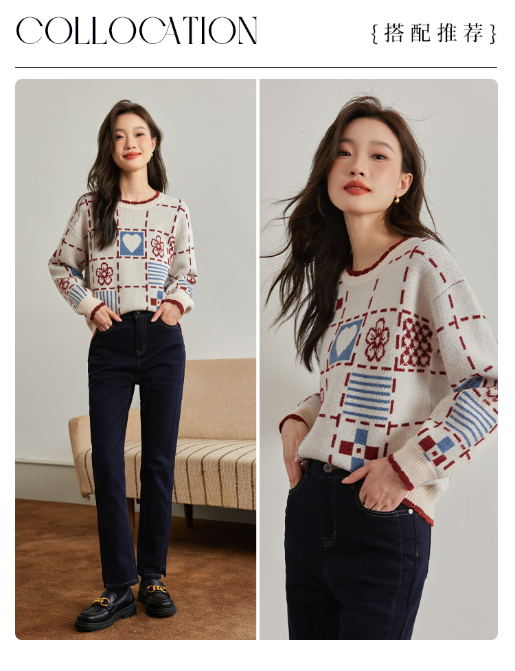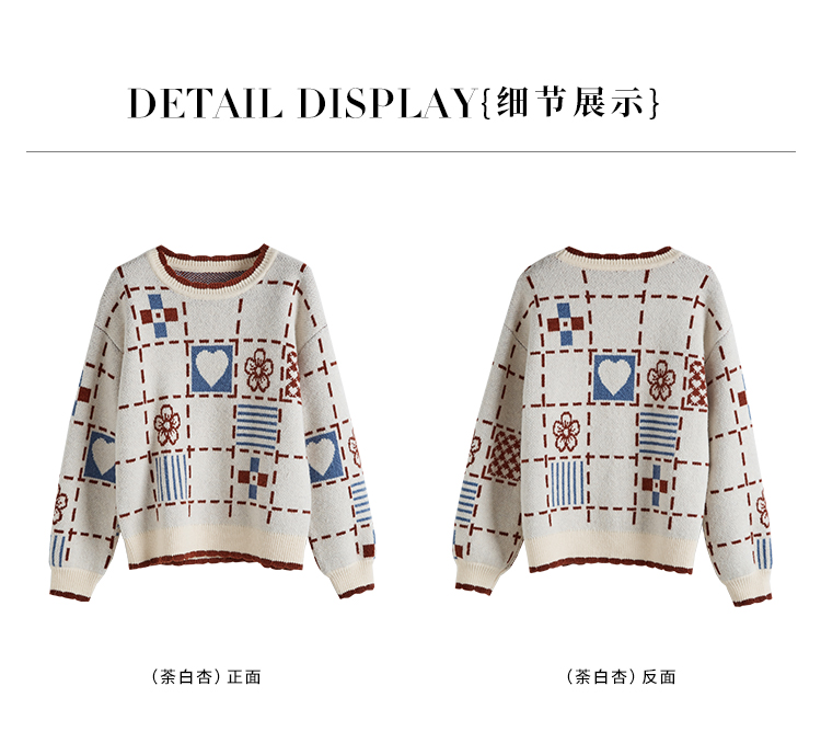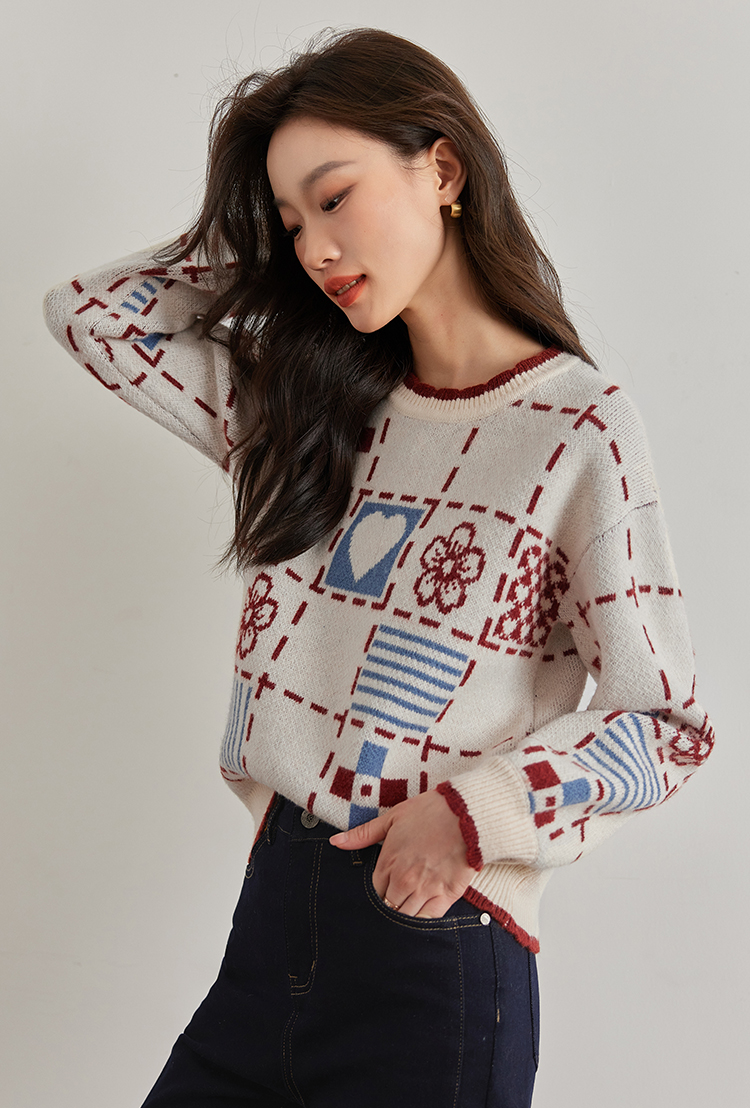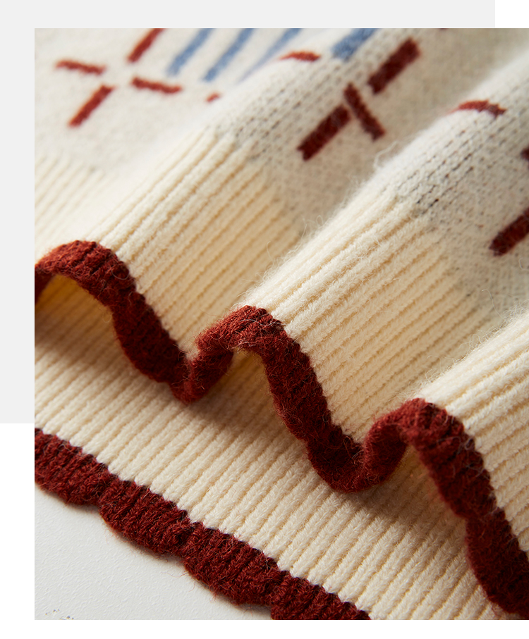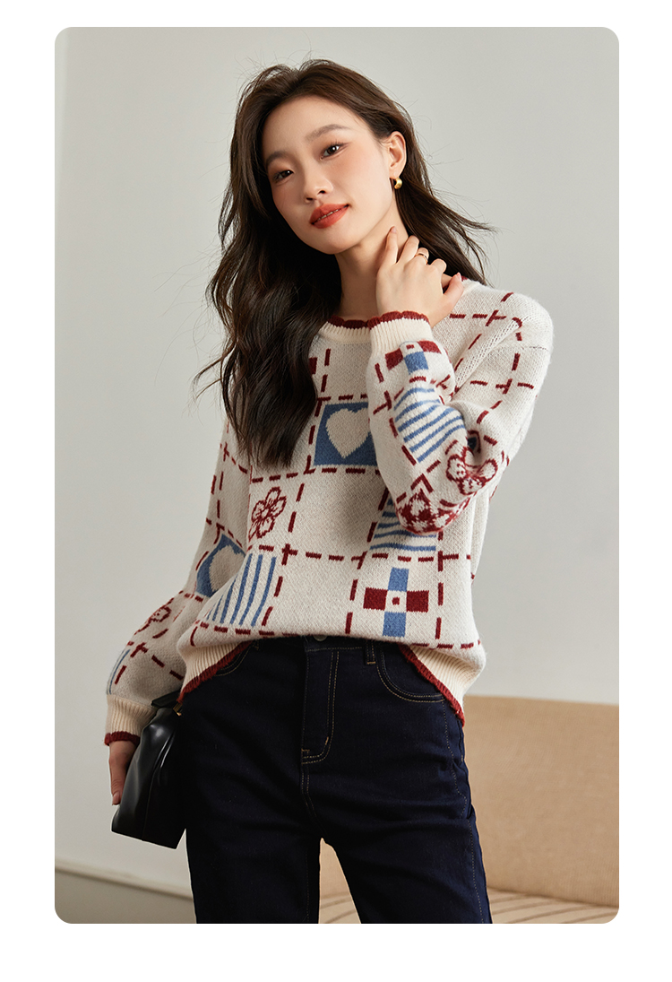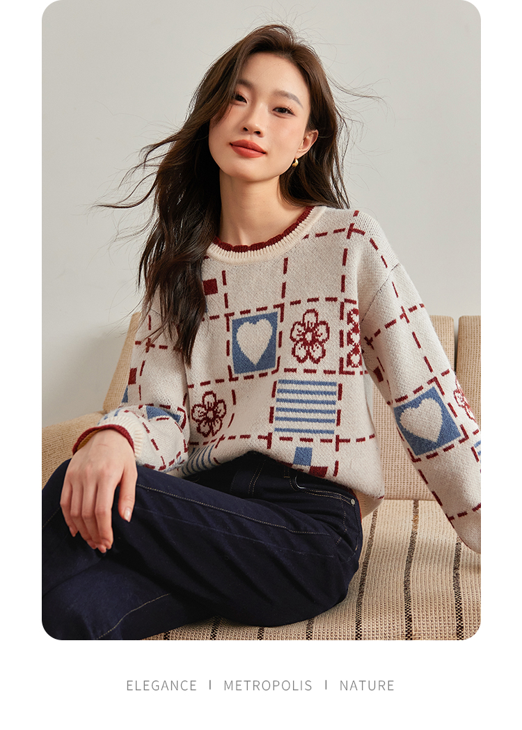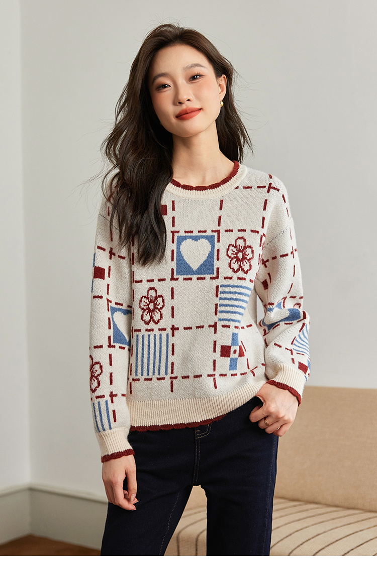 【年货节】熙世界艺术感提花奶系穿搭软糯毛衣秋冬宽松慵懒圆领打底针织衫