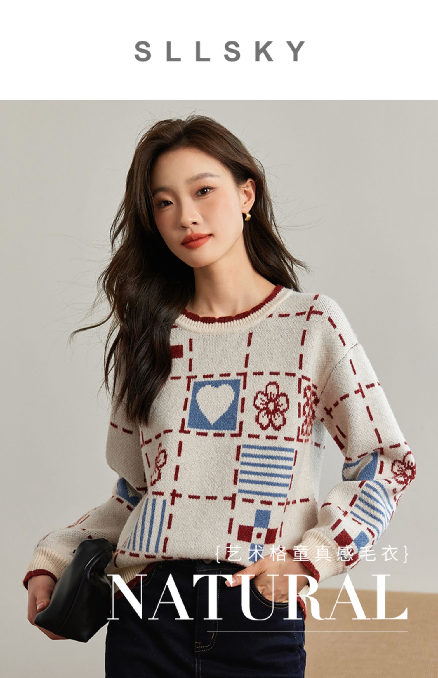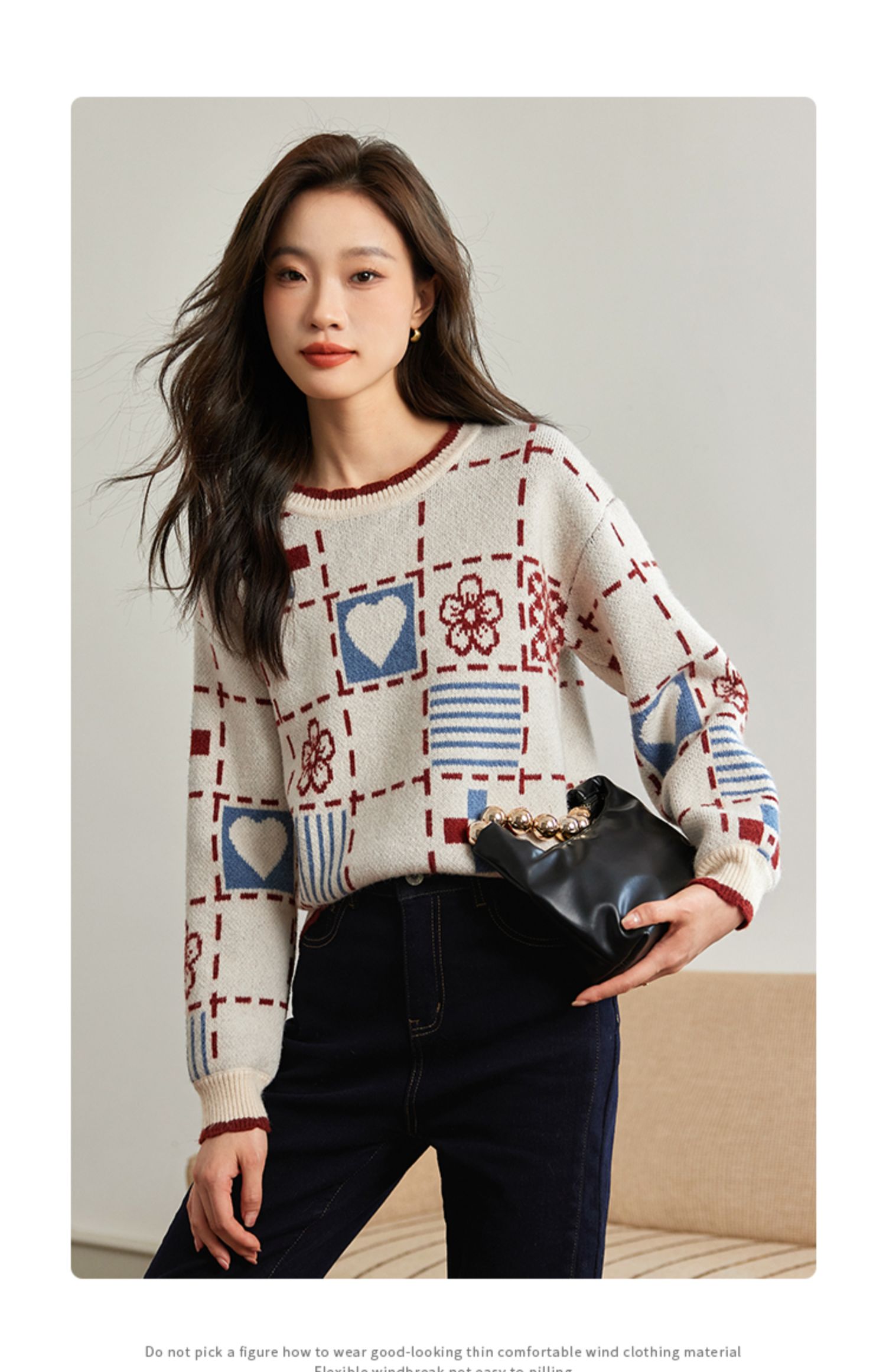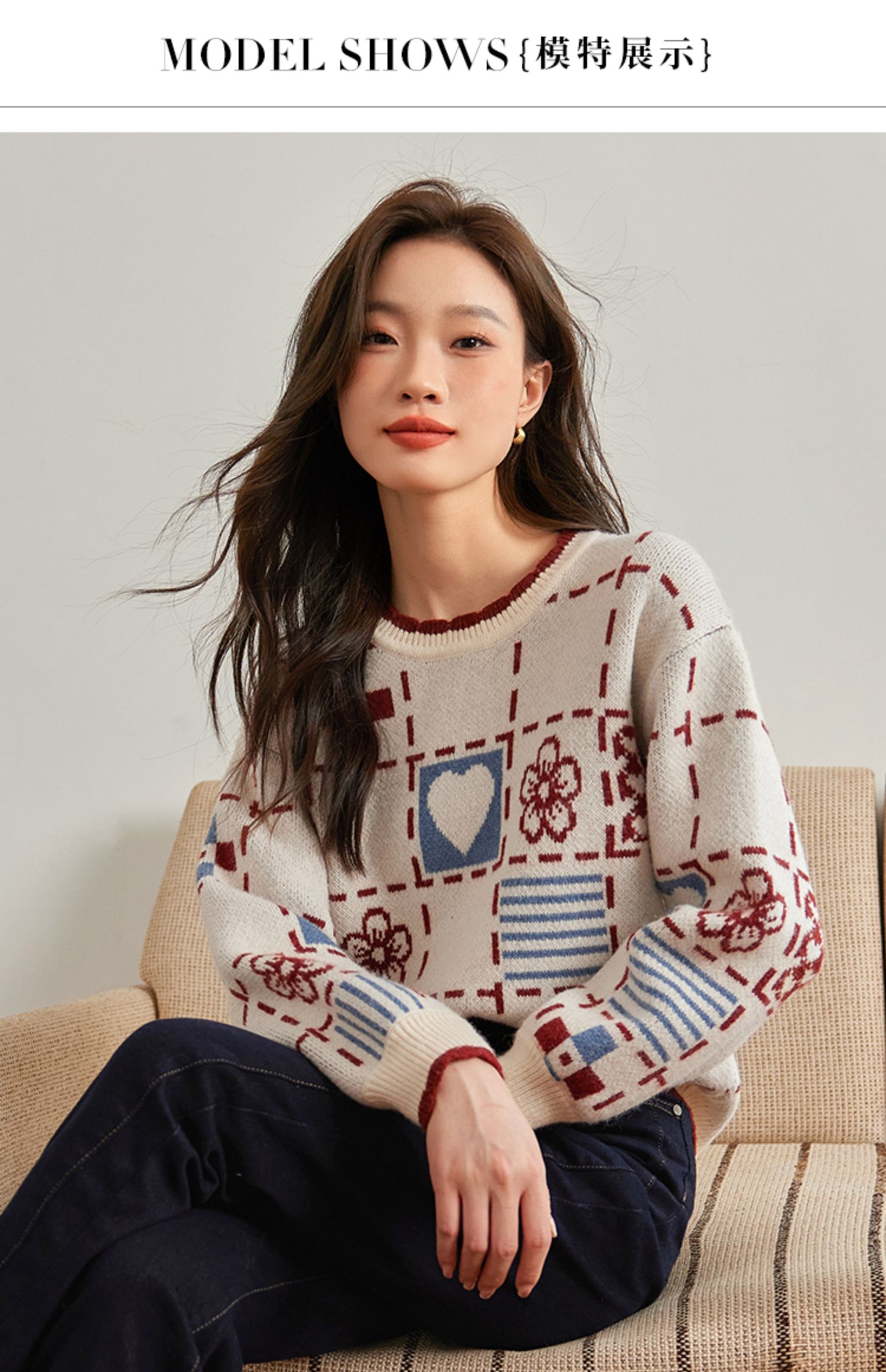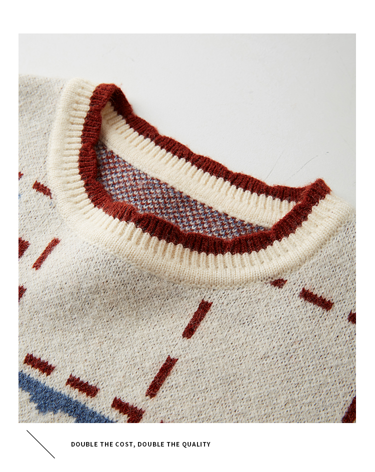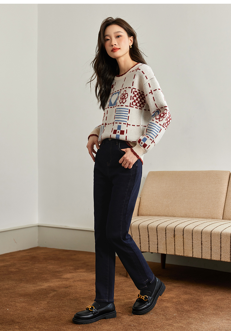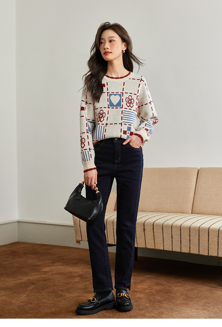 【年货节】熙世界艺术感提花奶系穿搭软糯毛衣秋冬宽松慵懒圆领打底针织衫