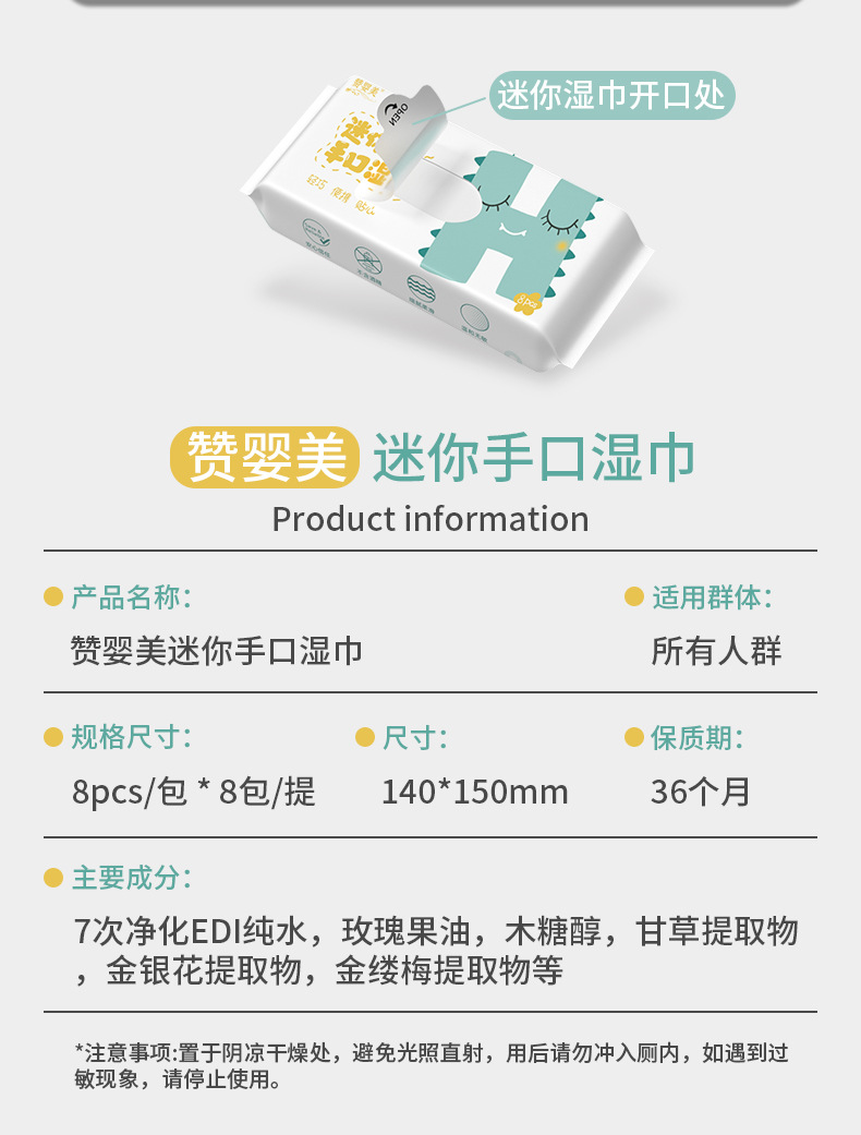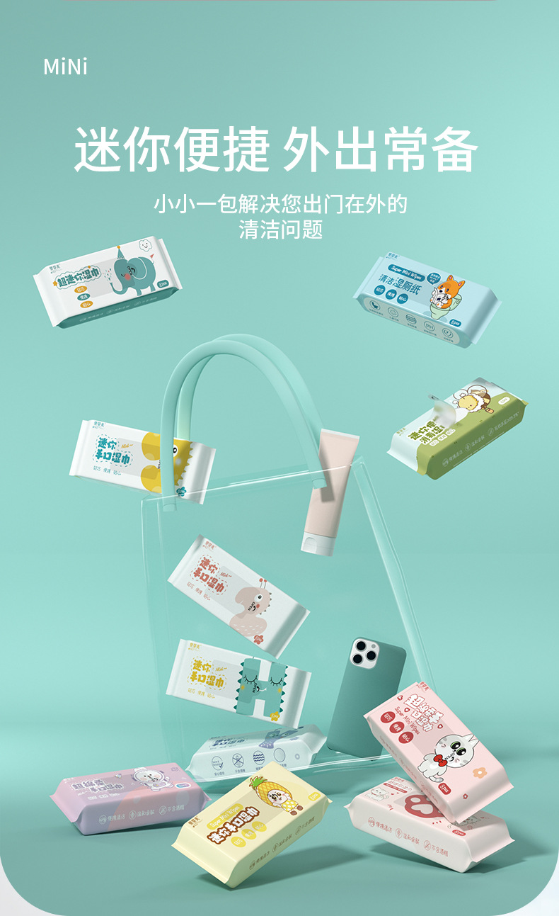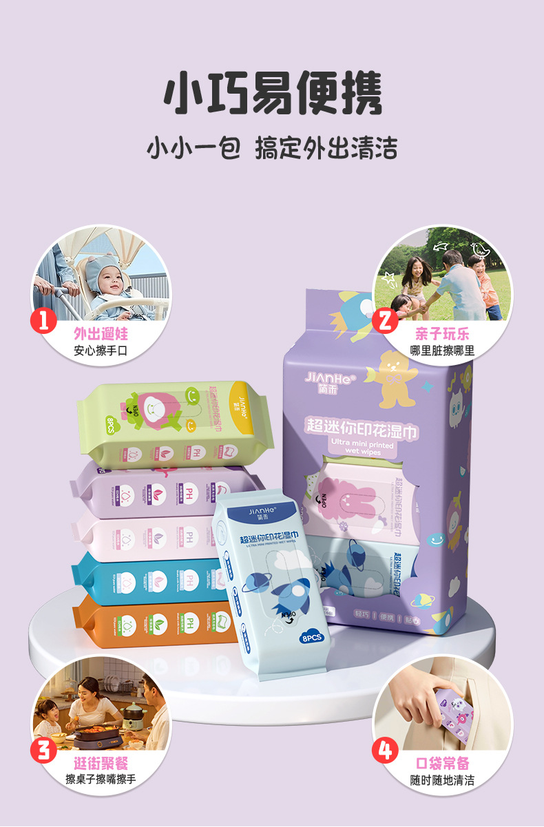 「1提8包!数款可选」迷你湿巾宝宝手口婴幼儿便携温和湿巾婴儿家庭装湿纸巾母婴用