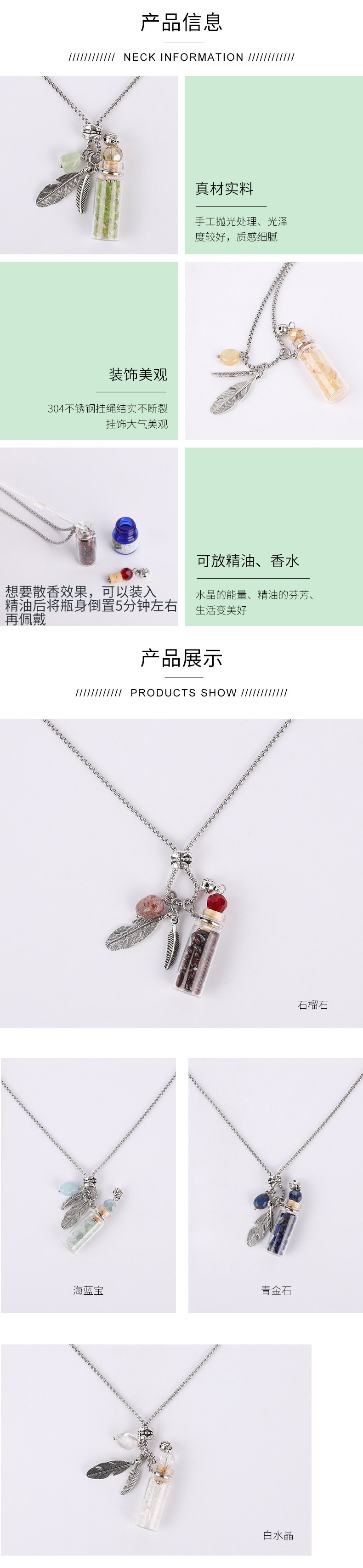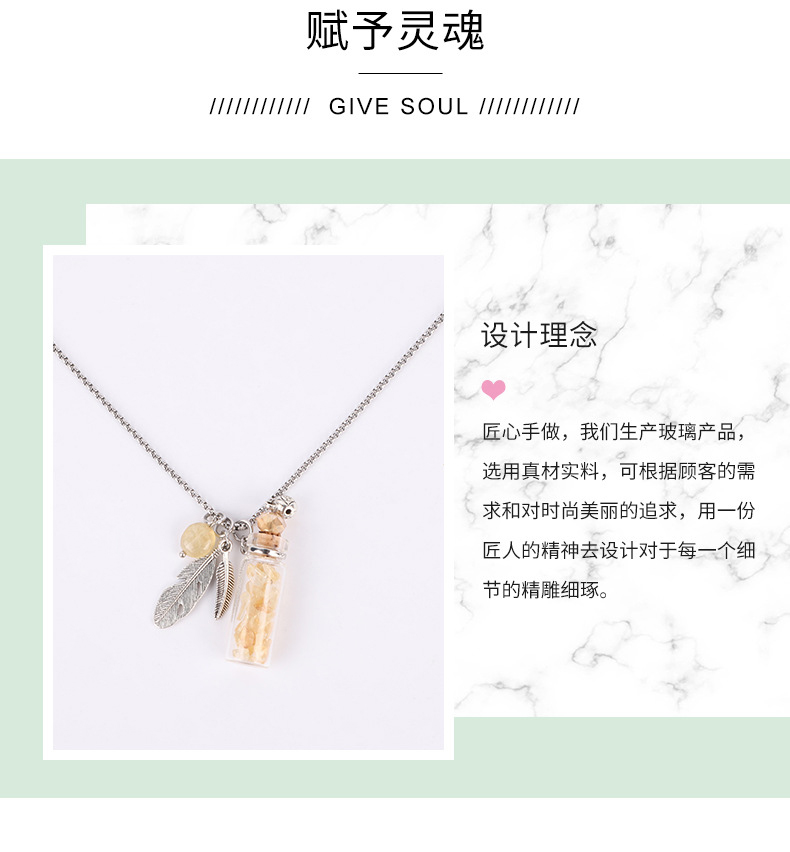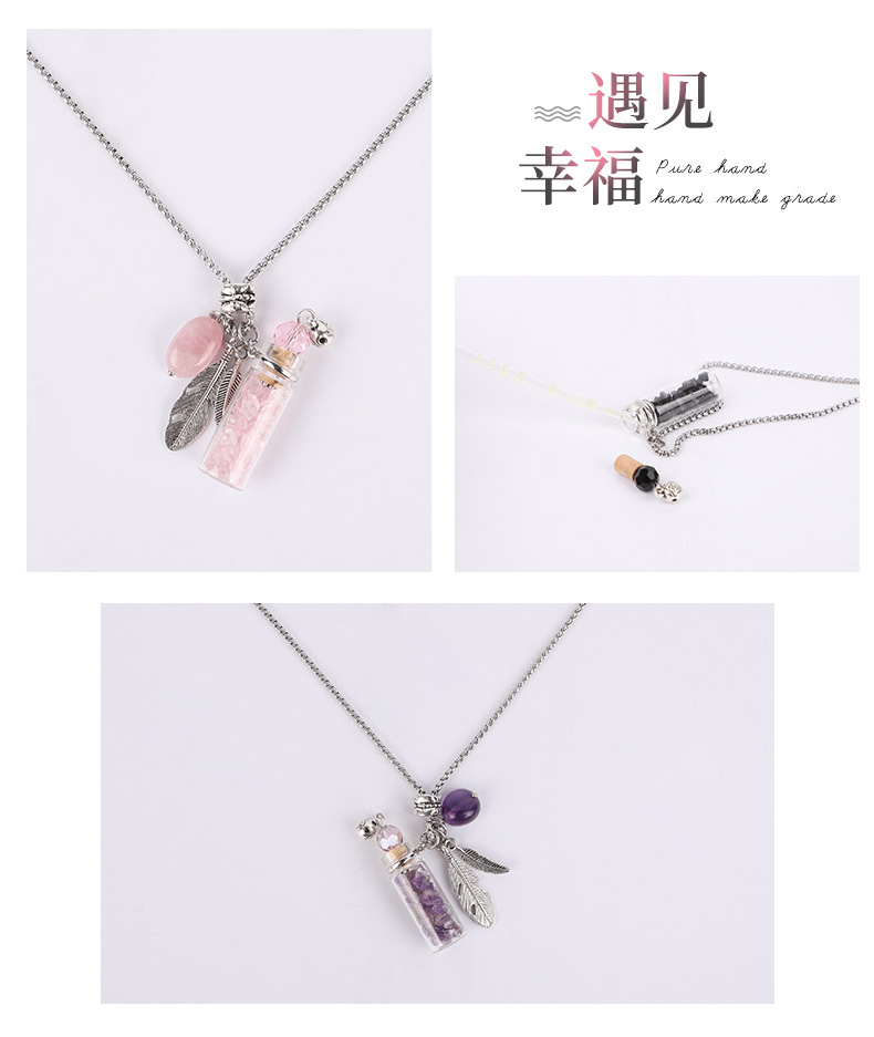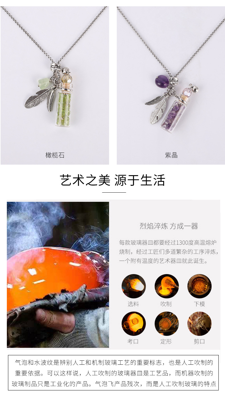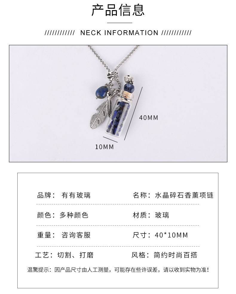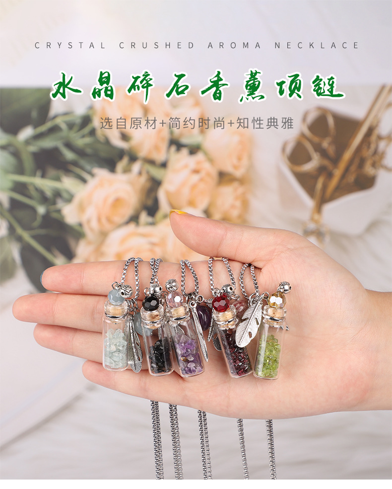 香薰精油瓶吊坠 水晶玉石许愿毛衣链彩色精油瓶