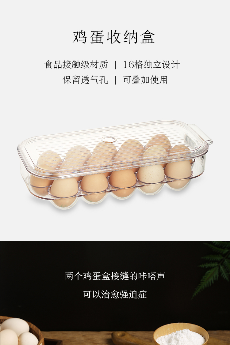 京东京造 鸡蛋收纳盒 塑料冰箱保鲜盒家用底部防滑蛋托单层16格