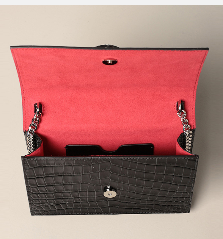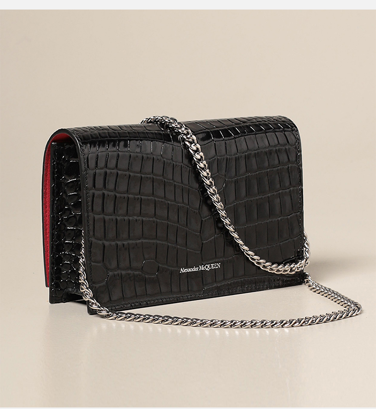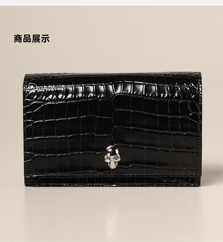 【二】ALEXANDER MCQUEEN 亚历山大.麦昆 女士小号鳄鱼纹皮革斜挎单肩骷髅包 黑色 613088 1HB0I 1001