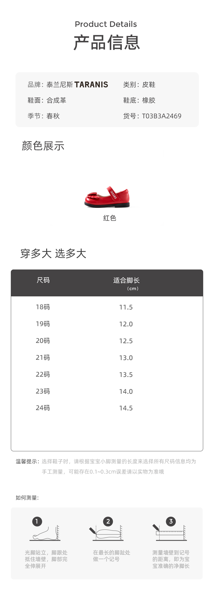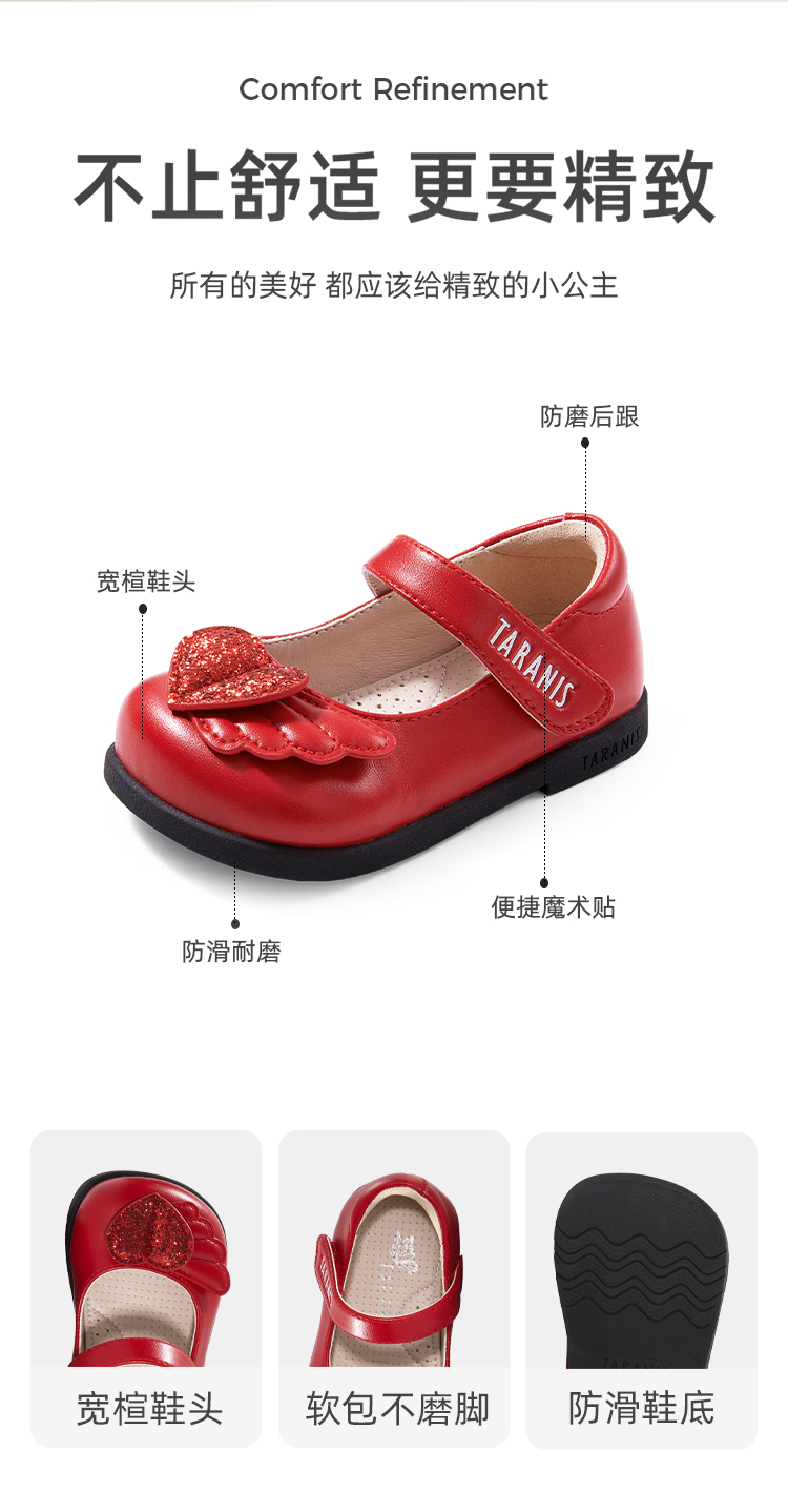 泰兰尼斯春款婴童段可爱桃心小皮鞋T03B3A2469