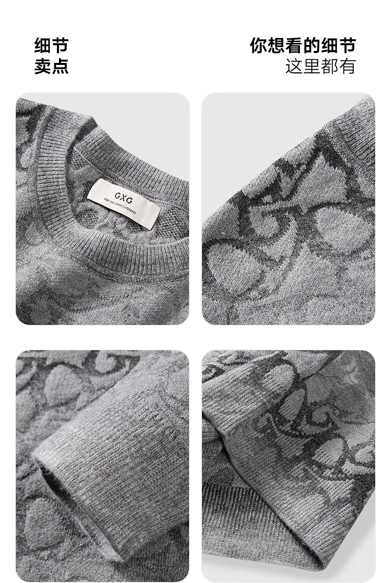 GXG男装 圆领基础保暖毛衫满印通勤内搭针织衫 2024冬季热卖