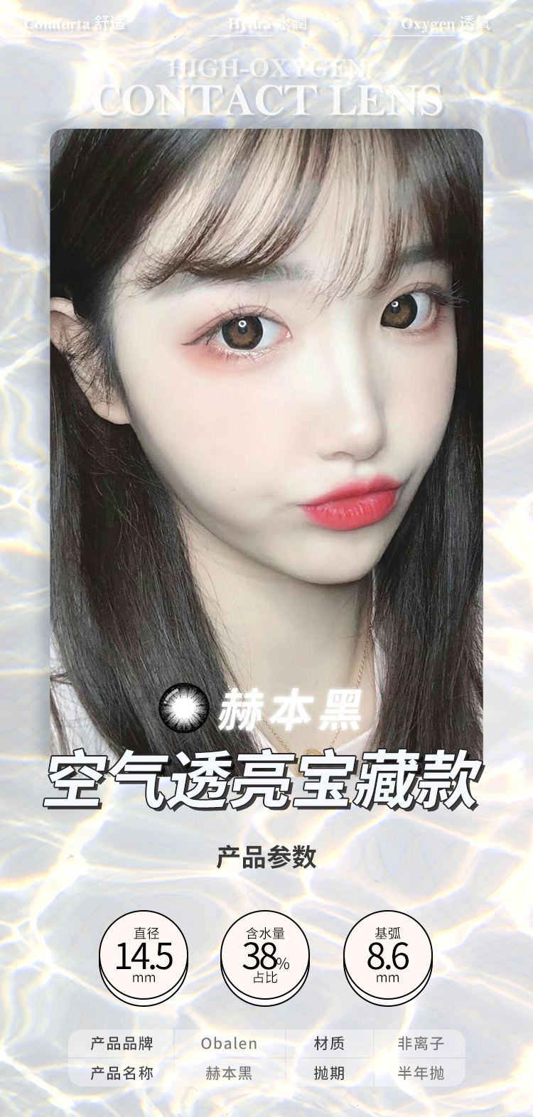 赫本黑14.5【买二送护理液】欧巴兰美瞳半年抛2片装 商品图1