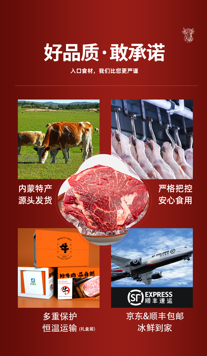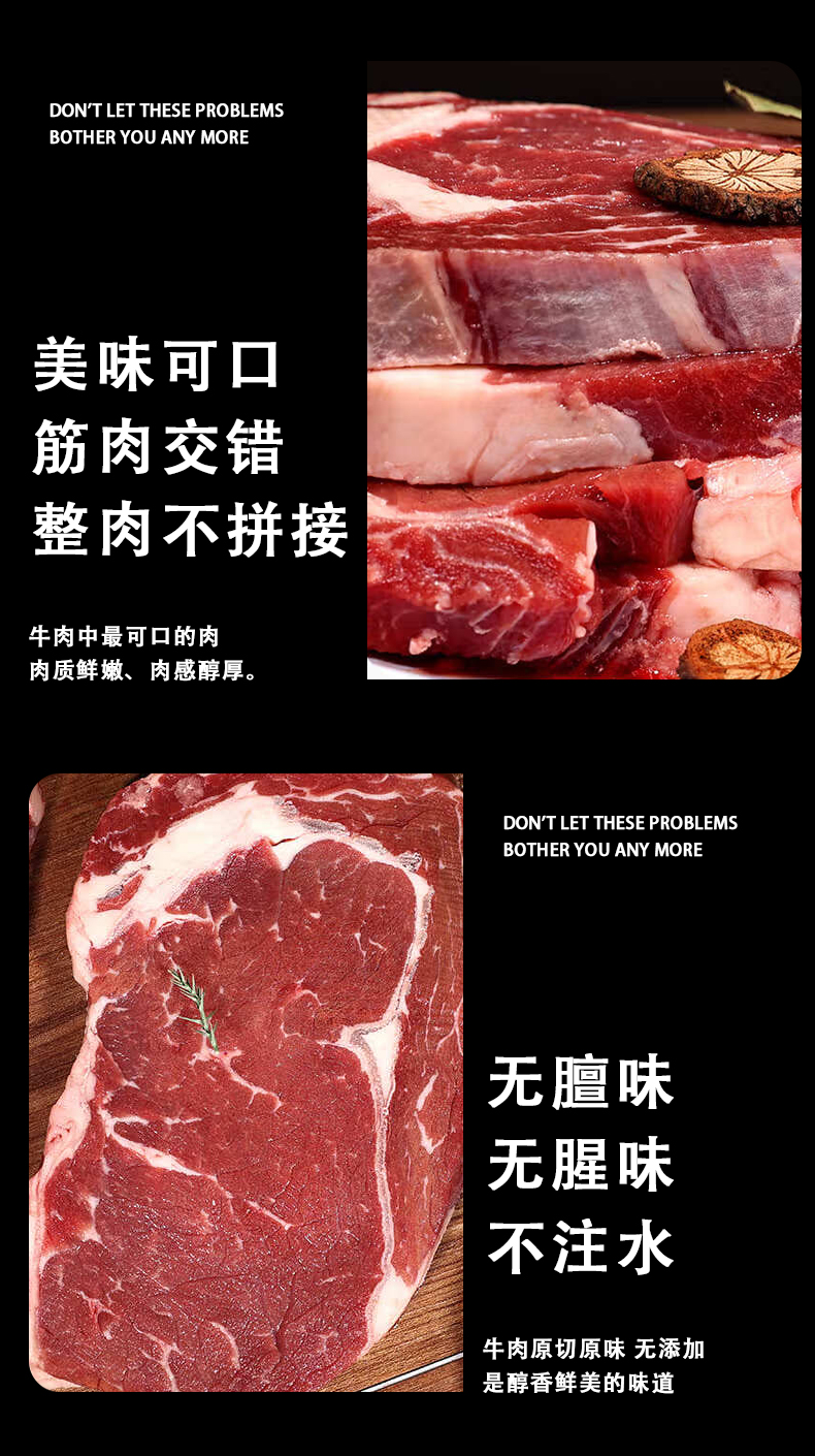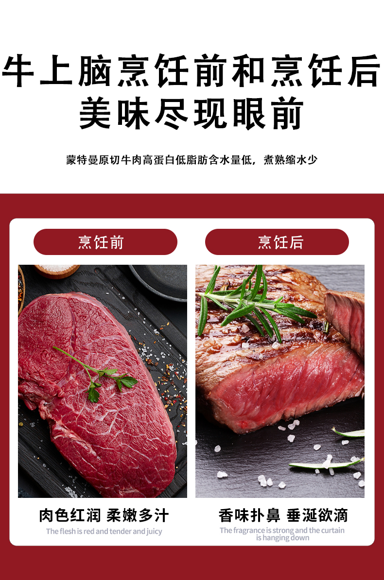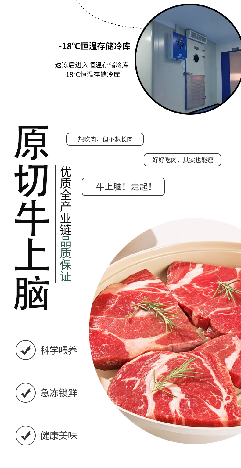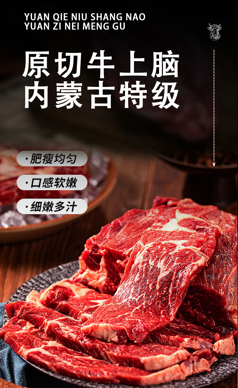 犇农牧业 蒙特曼原切牛上脑 1500g/件( 500g*3件 )谷饲喂养 肉嫩醇香 老少皆宜 48小时发货