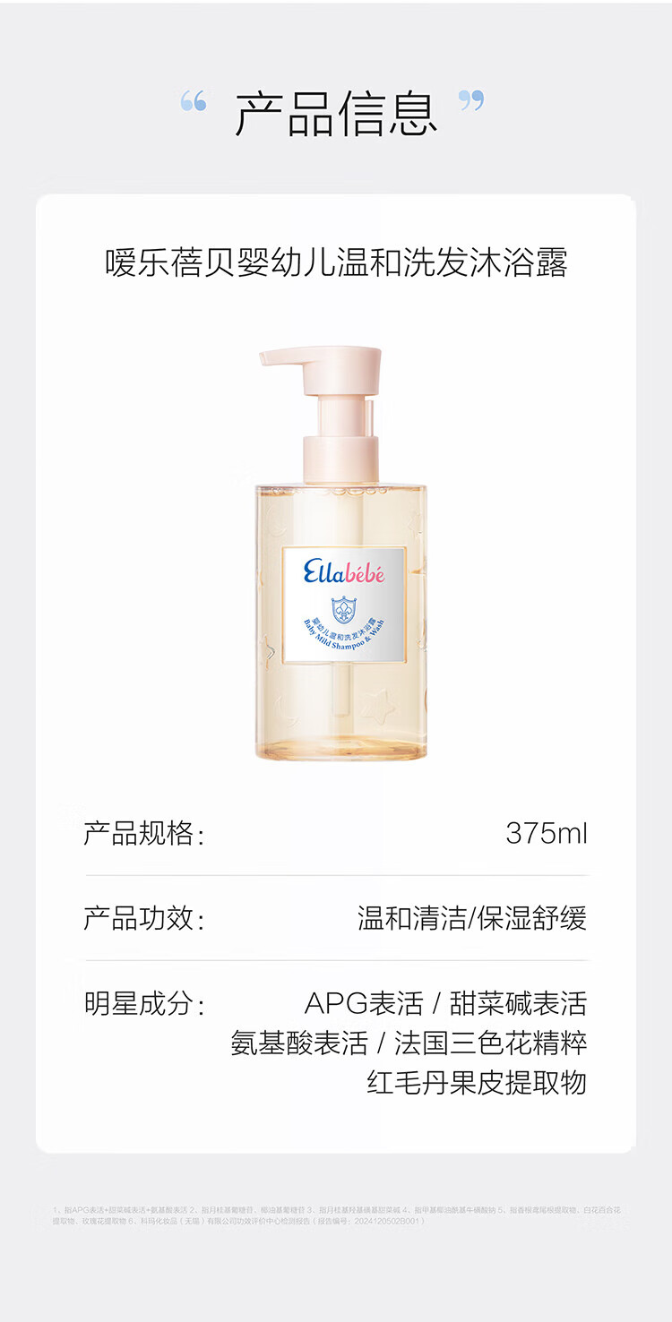 嗳乐蓓贝 婴幼儿温和洗发沐浴露375ml