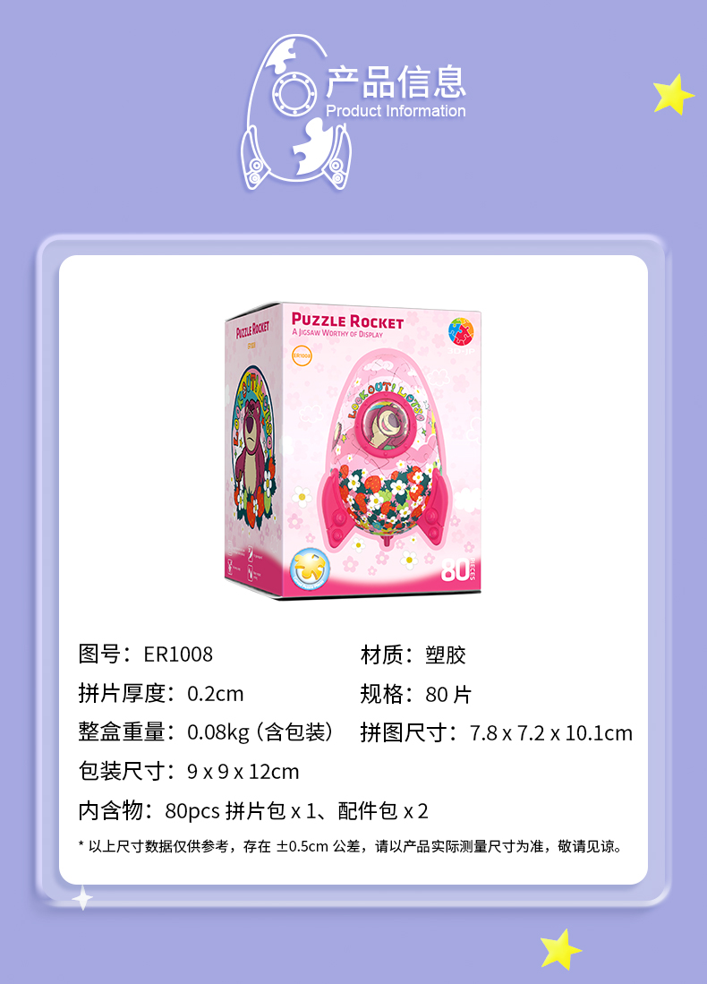 80片 火箭塑料拼图 ER1008 玩具总动员系列-花之草莓星球