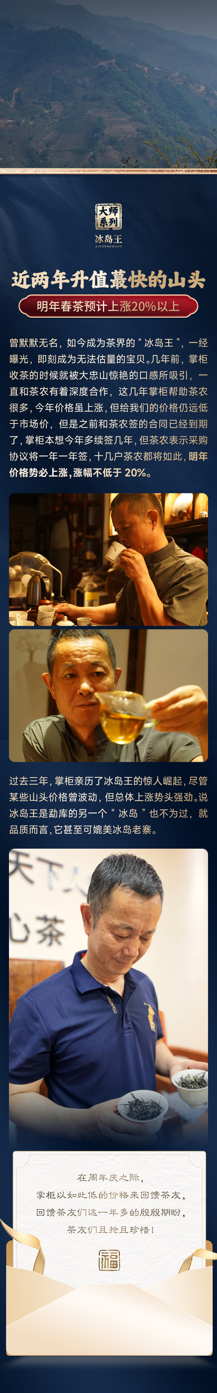 【大师系列】【冰岛王】近两年升值蕞快的山头 2023年头春普洱茶临沧大忠山800-900古树茶普洱生茶357g饼茶